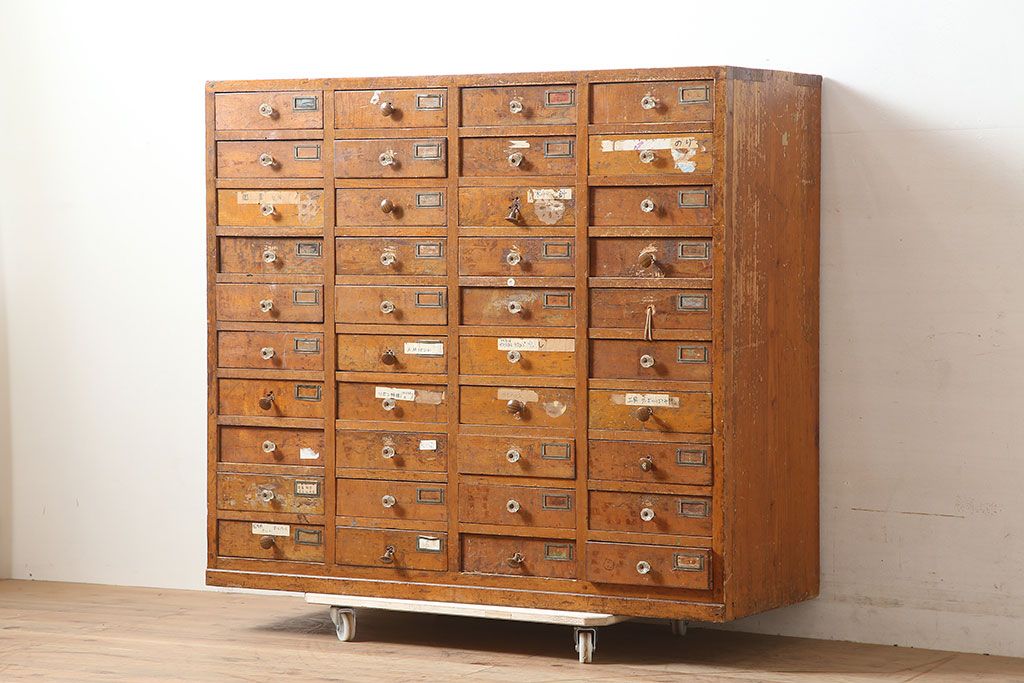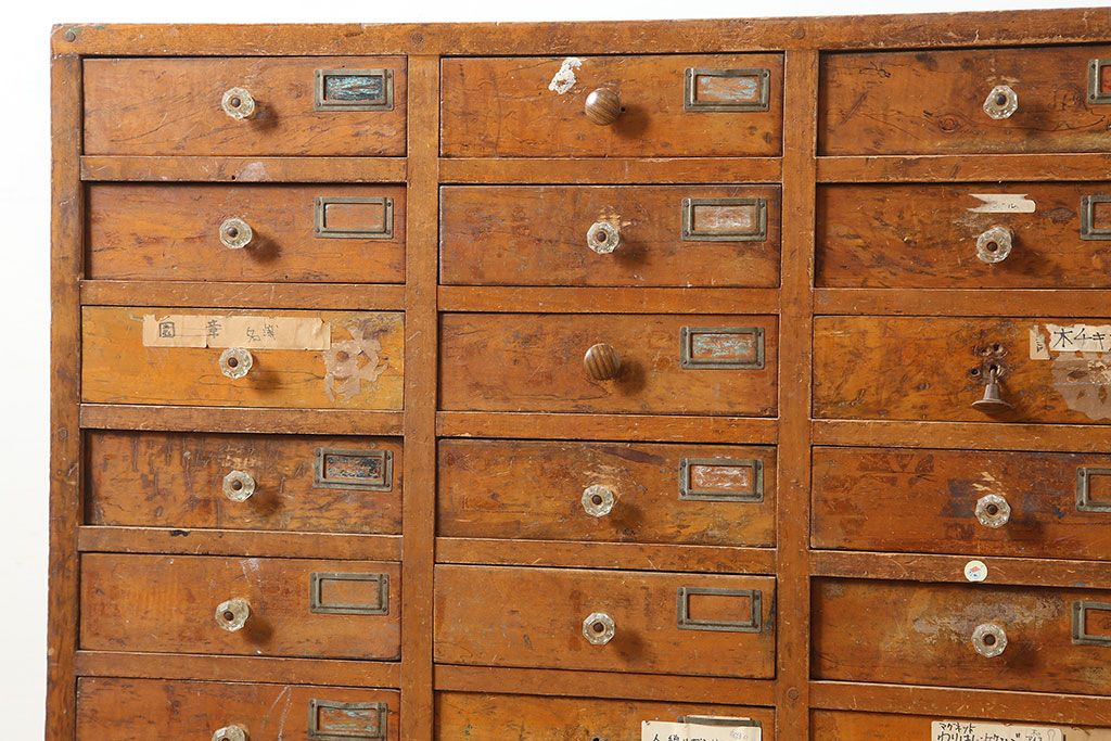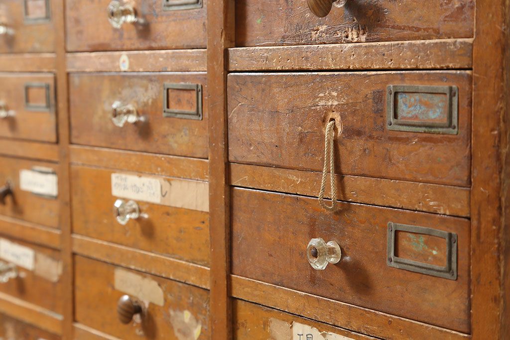 レトロ家具 昭和初期 和製アンティーク 引き出し40杯 使い込まれた風合いが素敵なチェスト(小物収納、引き出し)(R-036701)