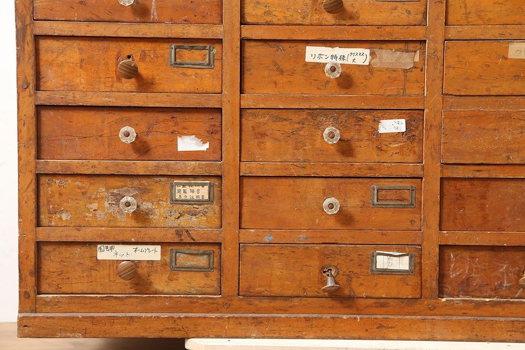 チェスト・引き出し > レトロ家具 昭和初期 和製アンティーク 引き出し40杯 使い込まれた風合いが素敵なチェスト(小物収納、引き出し)(R-036701)