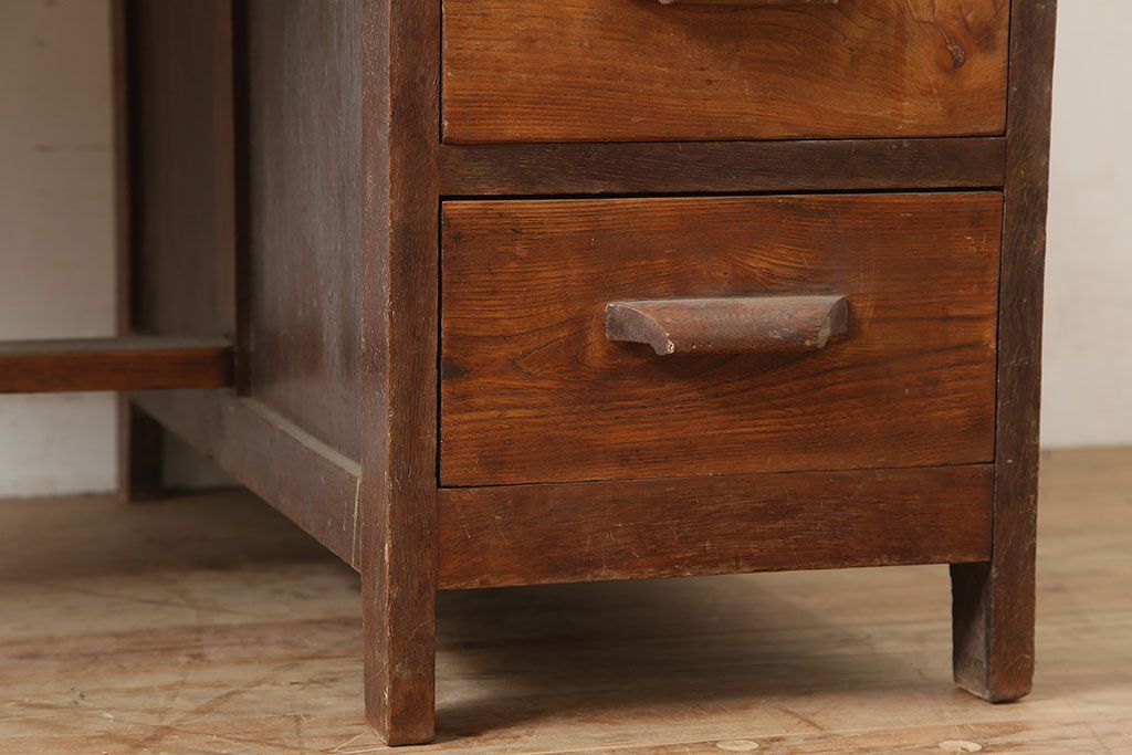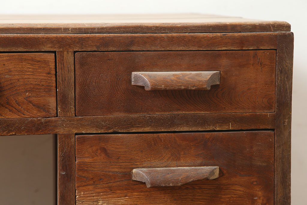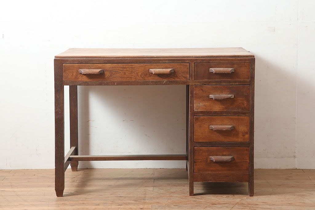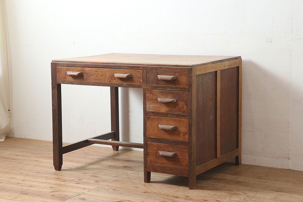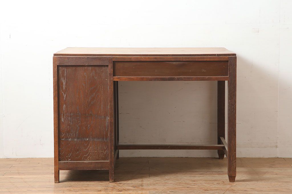 レトロ家具 木製 栓材 温もりたっぷりの大振りな片袖机(デスク)(R-036716)です。