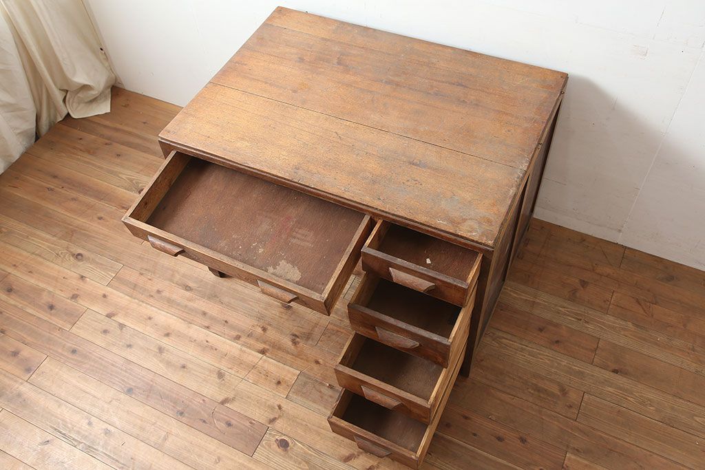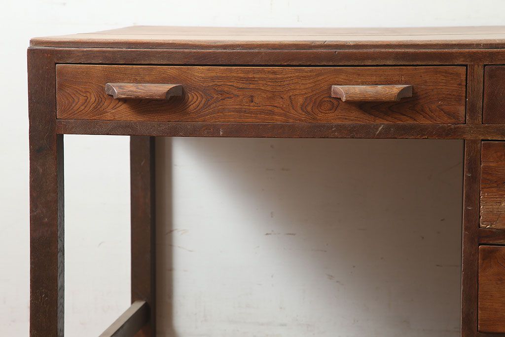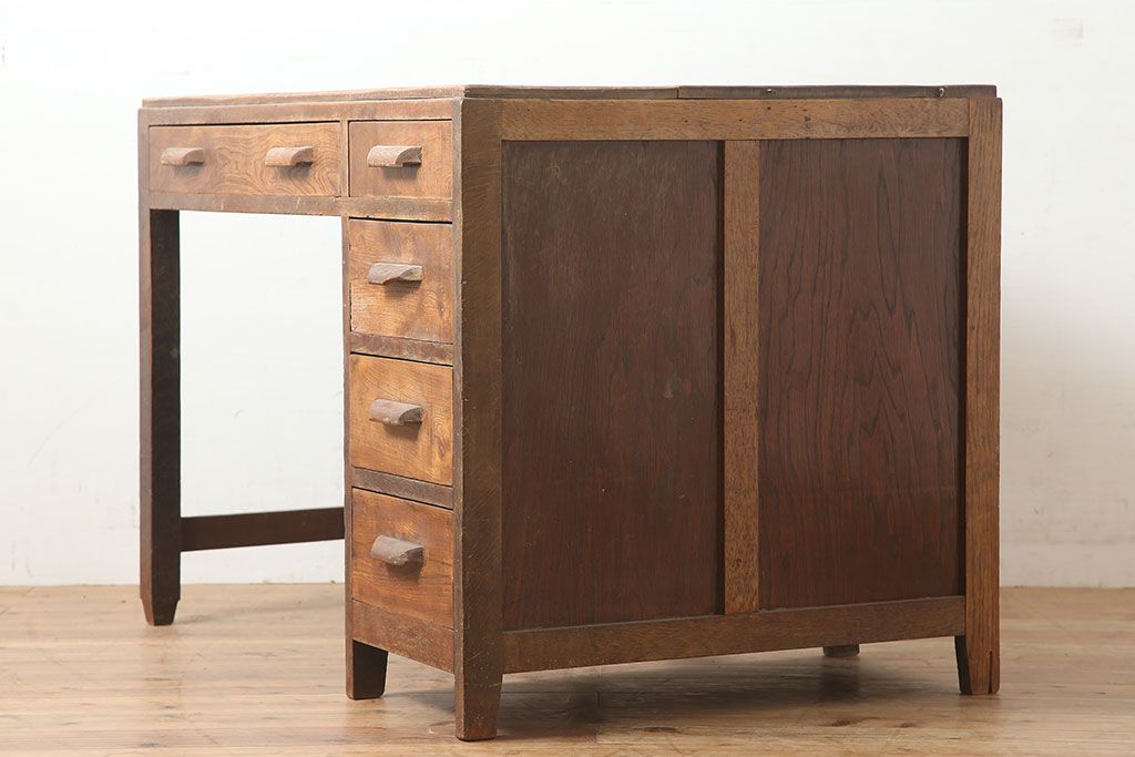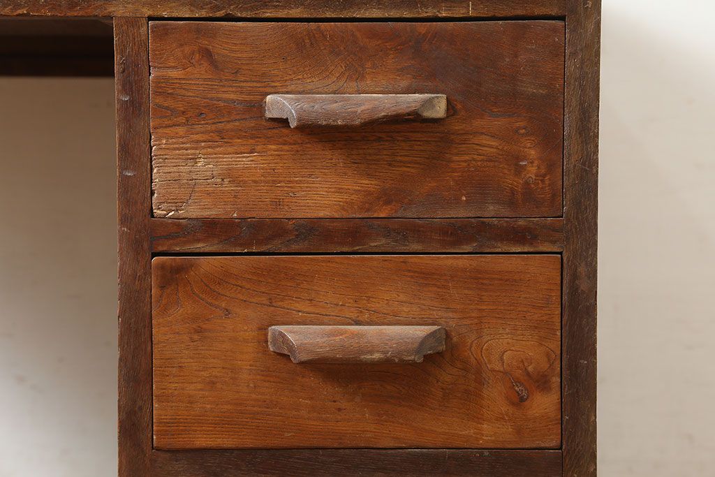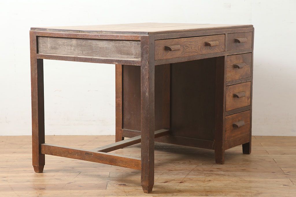 レトロ家具 木製 栓材 温もりたっぷりの大振りな片袖机(デスク)(R-036716)です。