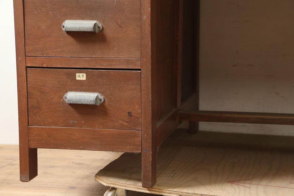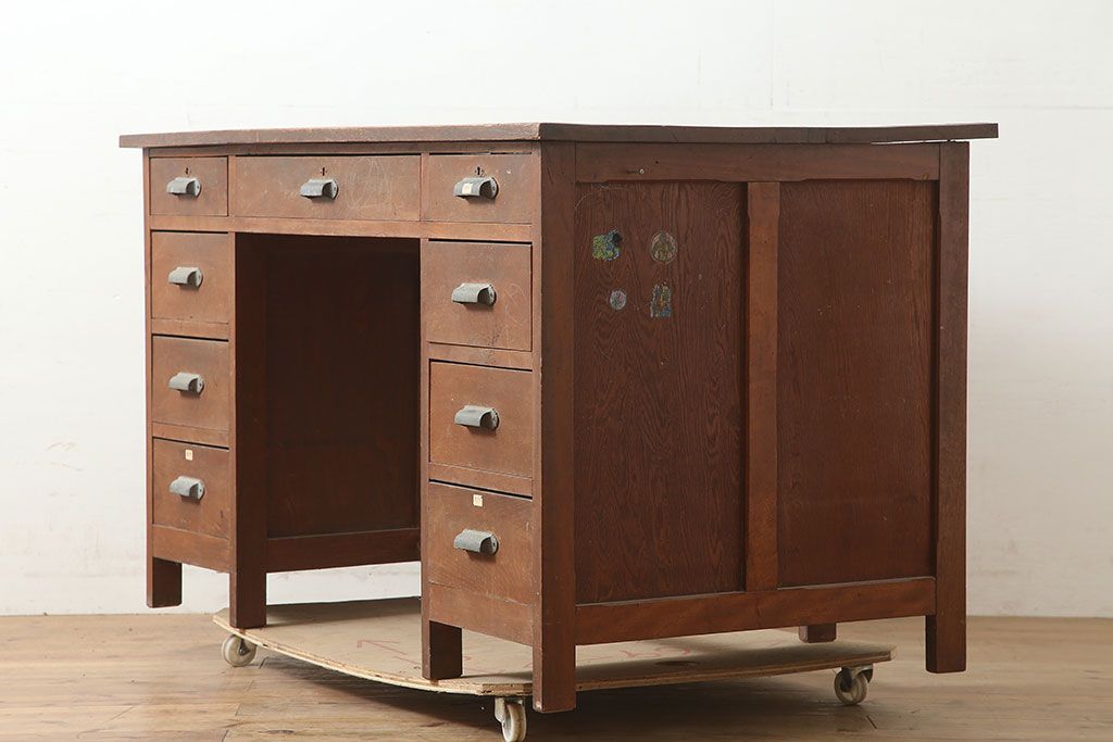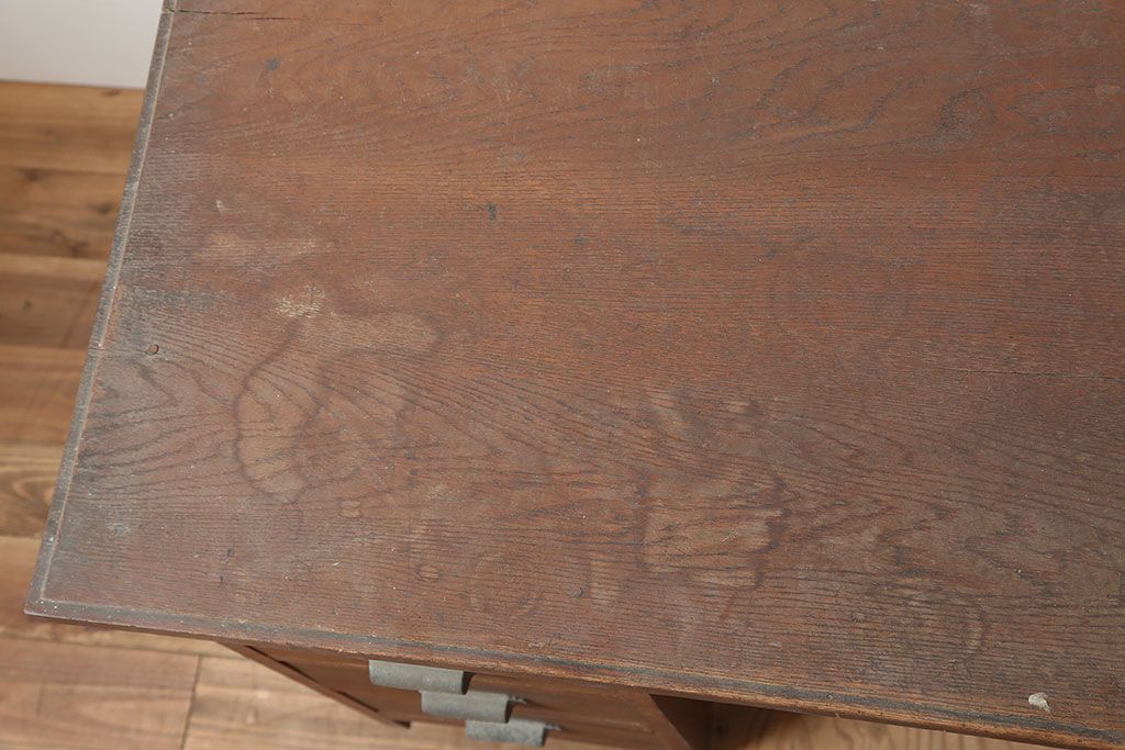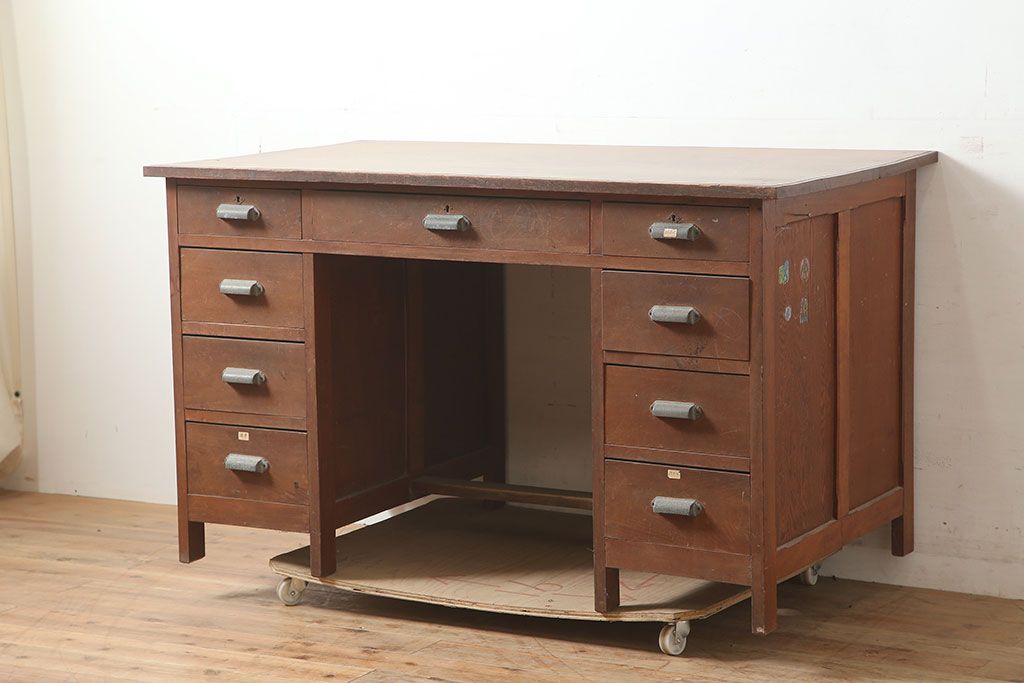 レトロ家具 ナラ材 昭和レトロの素朴な両袖デスク(机)(R-036718)です。