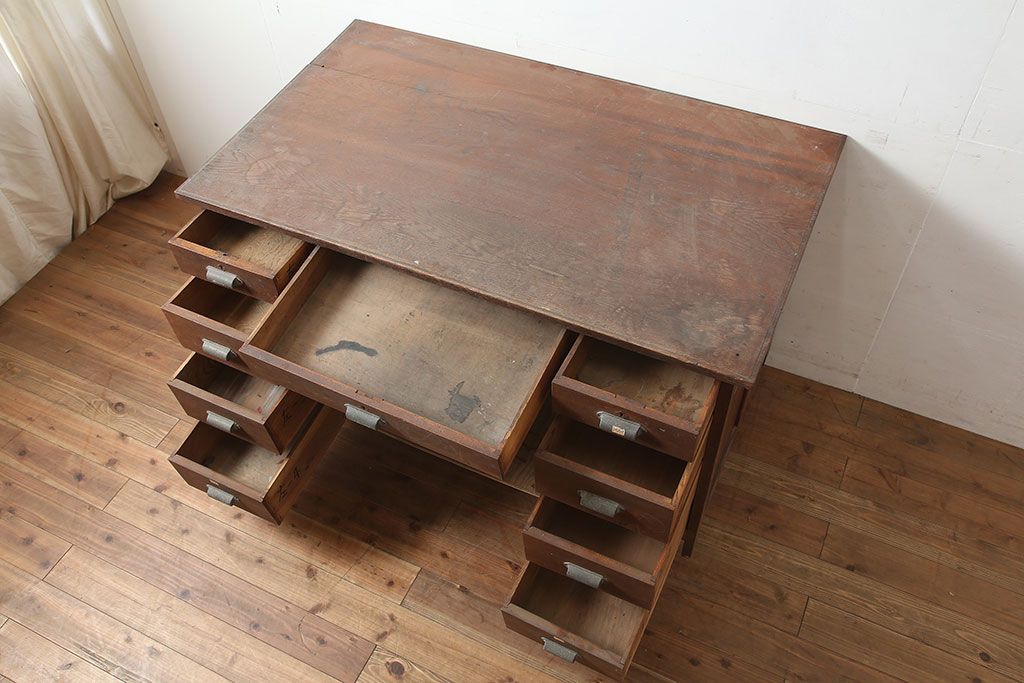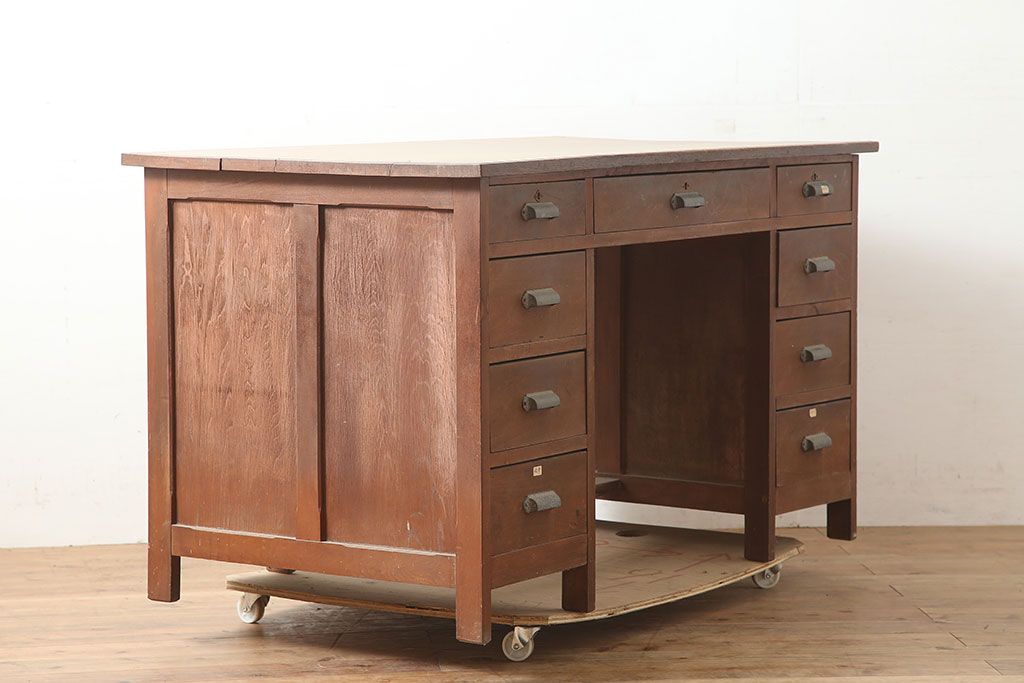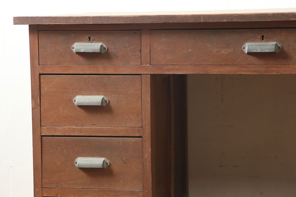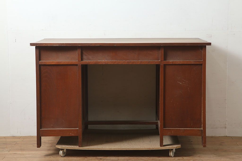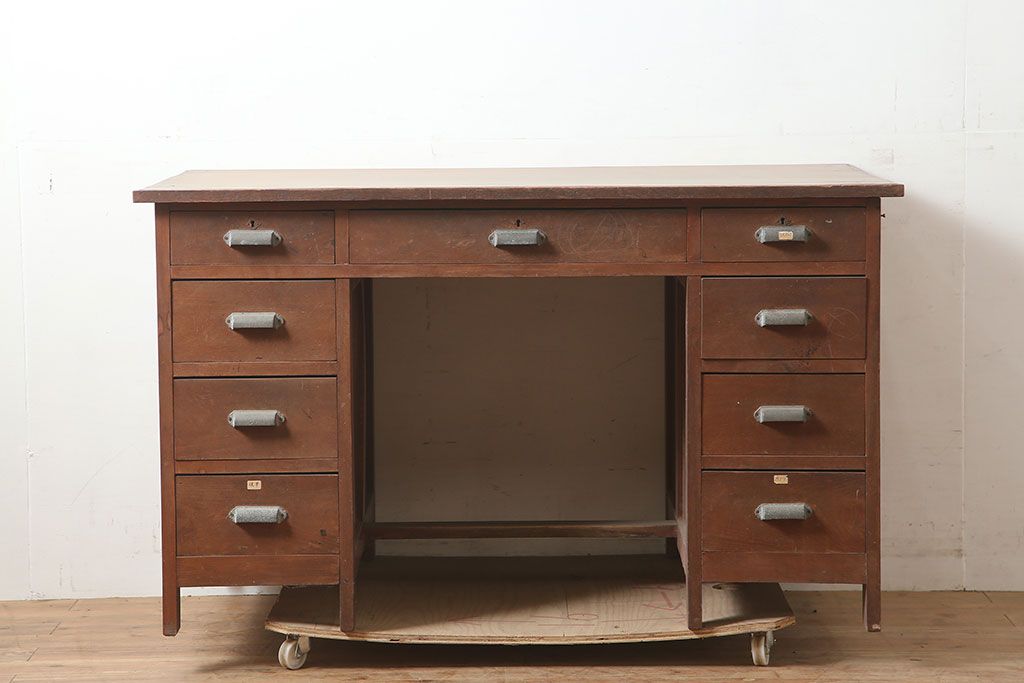 レトロ家具 ナラ材 昭和レトロの素朴な両袖デスク(机)(R-036718)です。