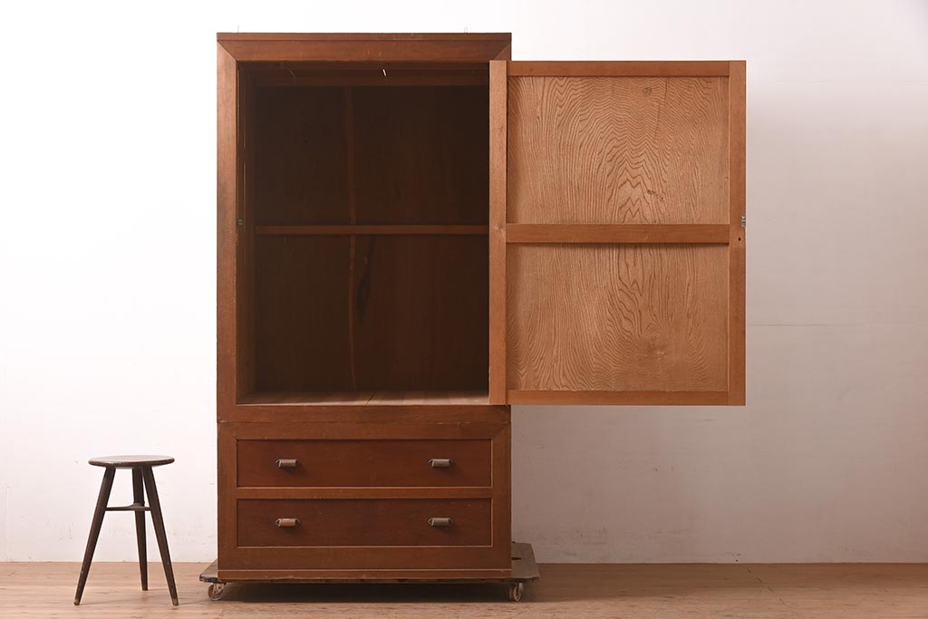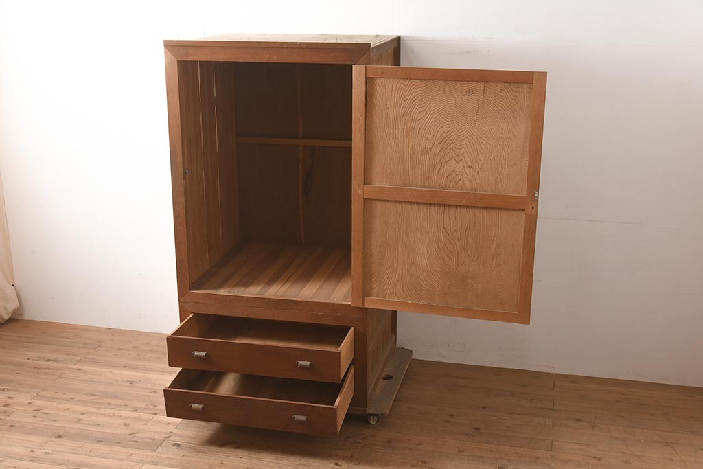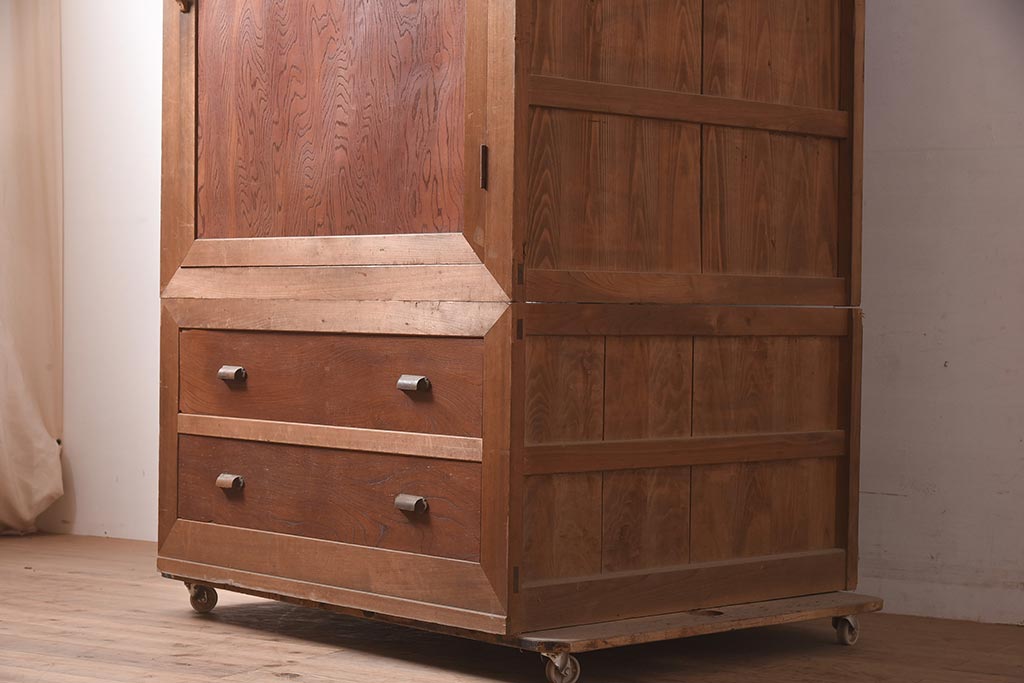 ワードローブ・ロッカー> ワードローブ > アンティーク家具 明治大正期 ヒノキ材 木の温もり感じるワードローブ(収納箪笥、キャビネット、夜具箪笥、布団箪笥)(R-036709)