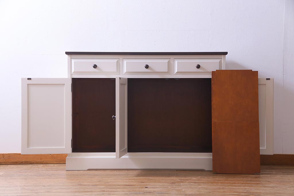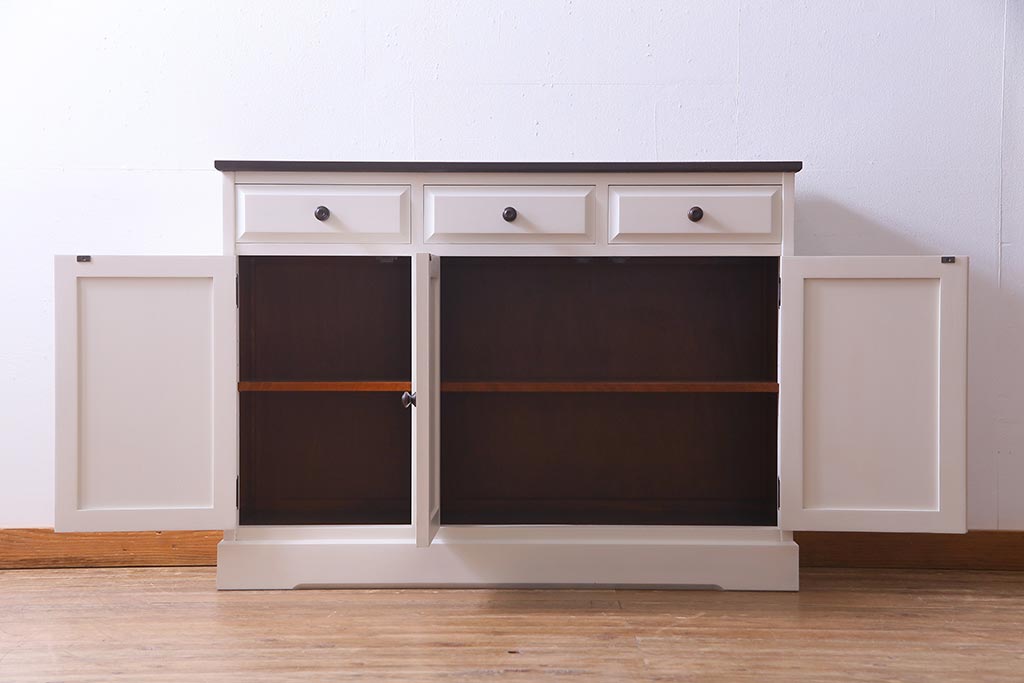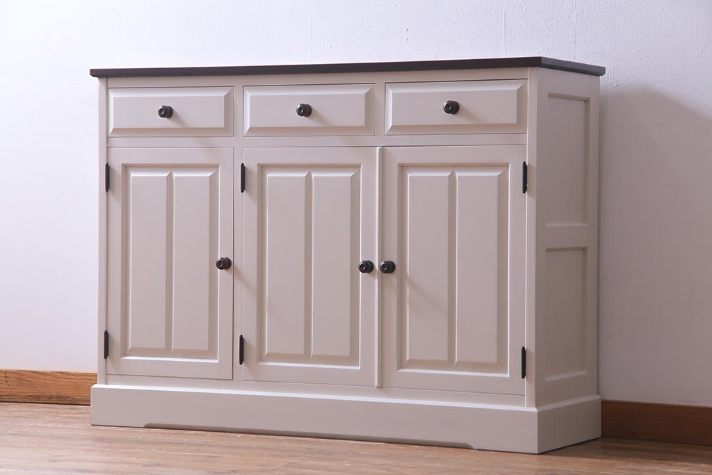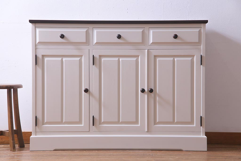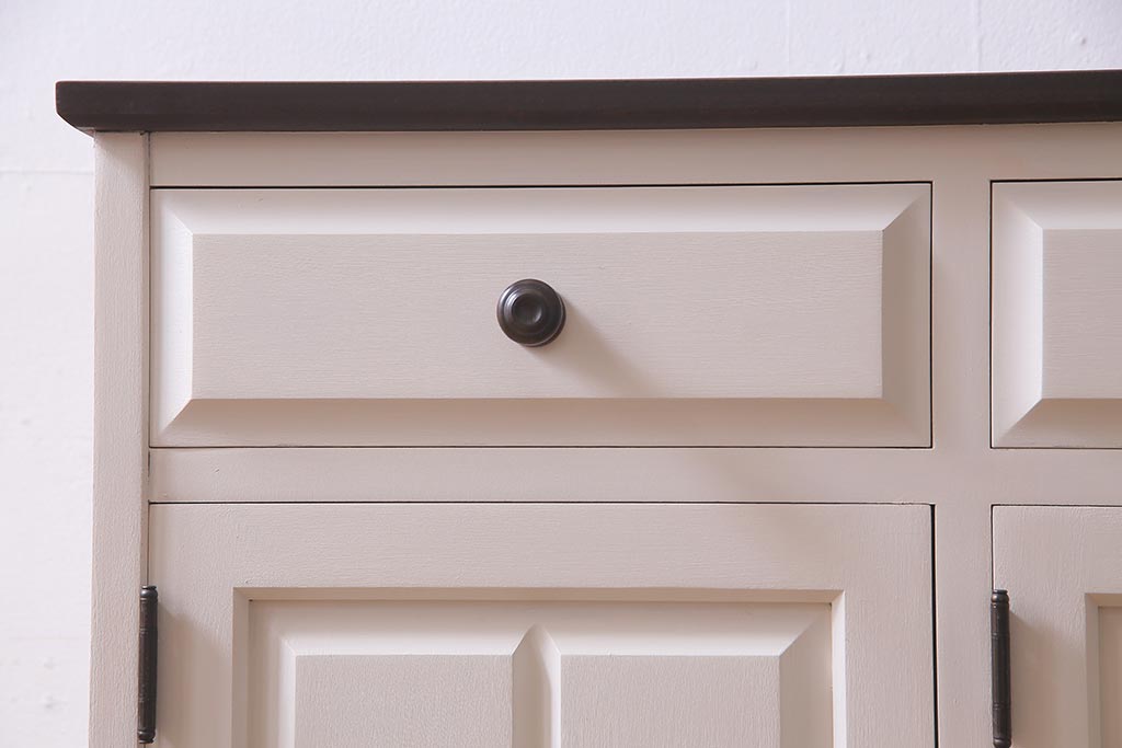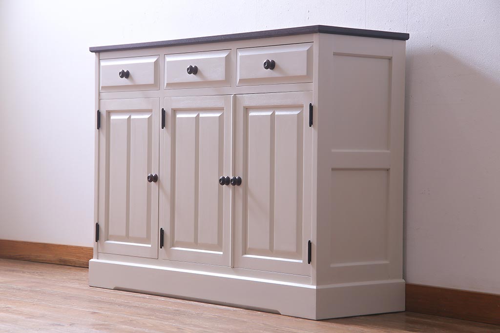 ラフジュ工房> キャビネット・戸棚> サイドボード > 中古 リメイク 北海道民芸家具 上品さが感じられるレトロシックなペイントサイドボード(収納棚、戸棚)(R-037732)