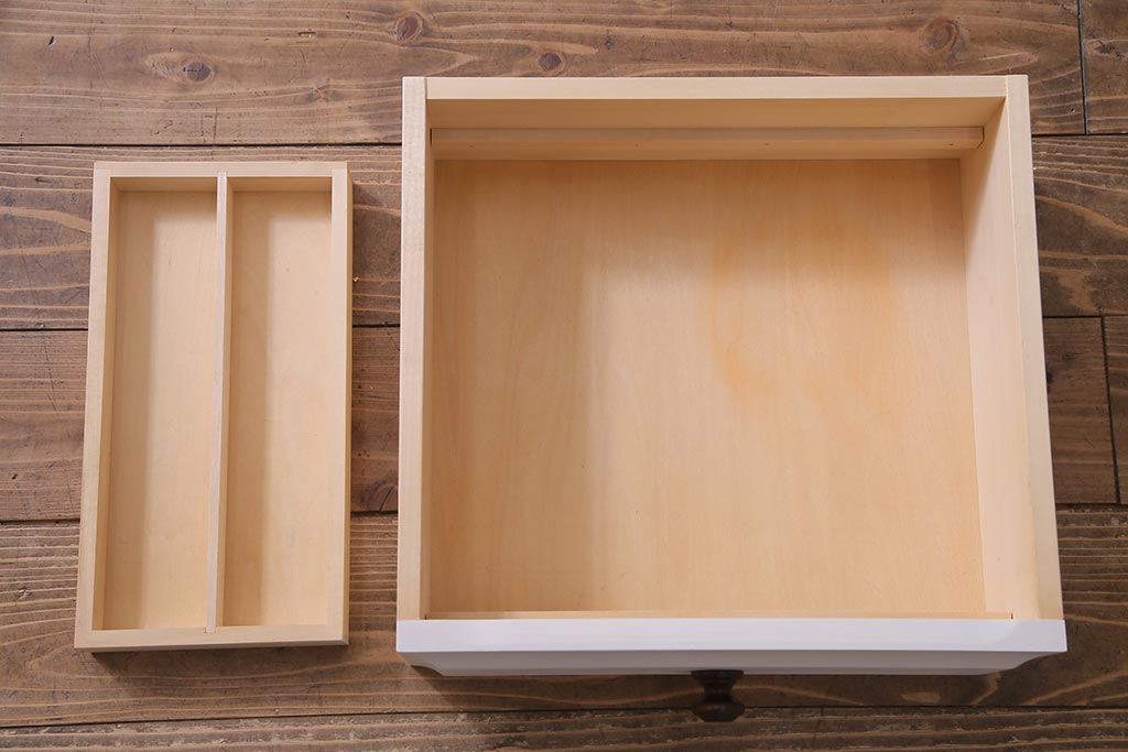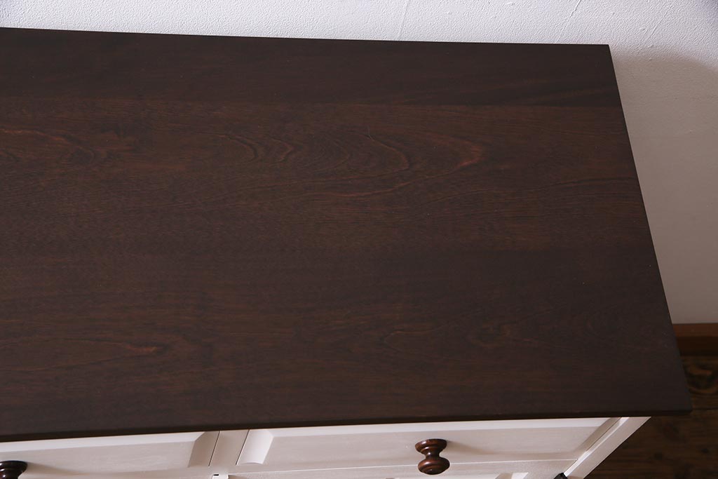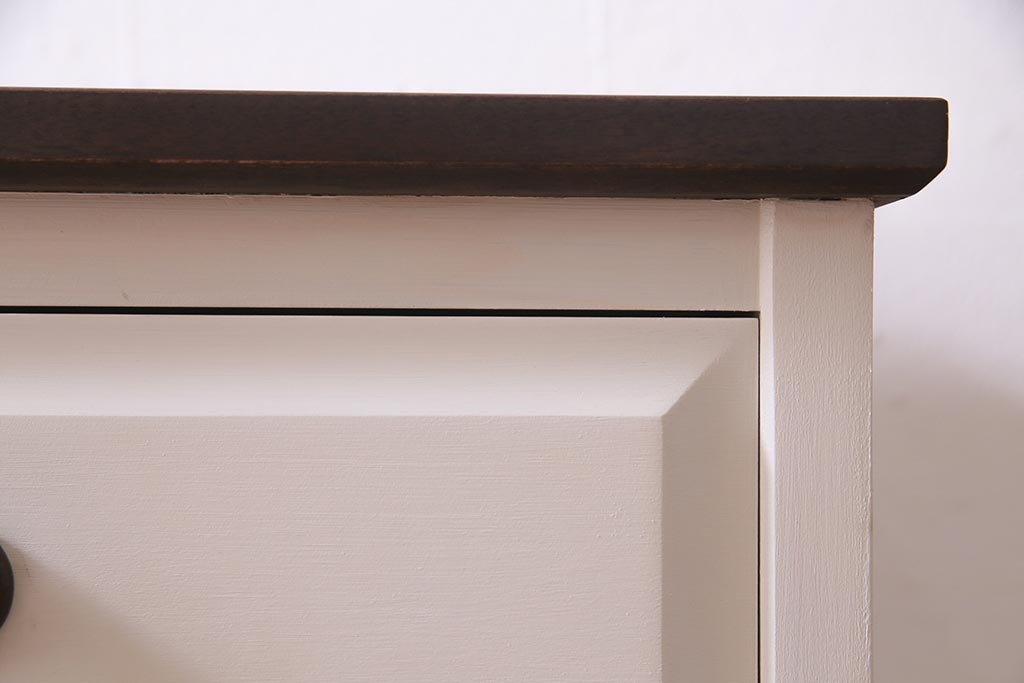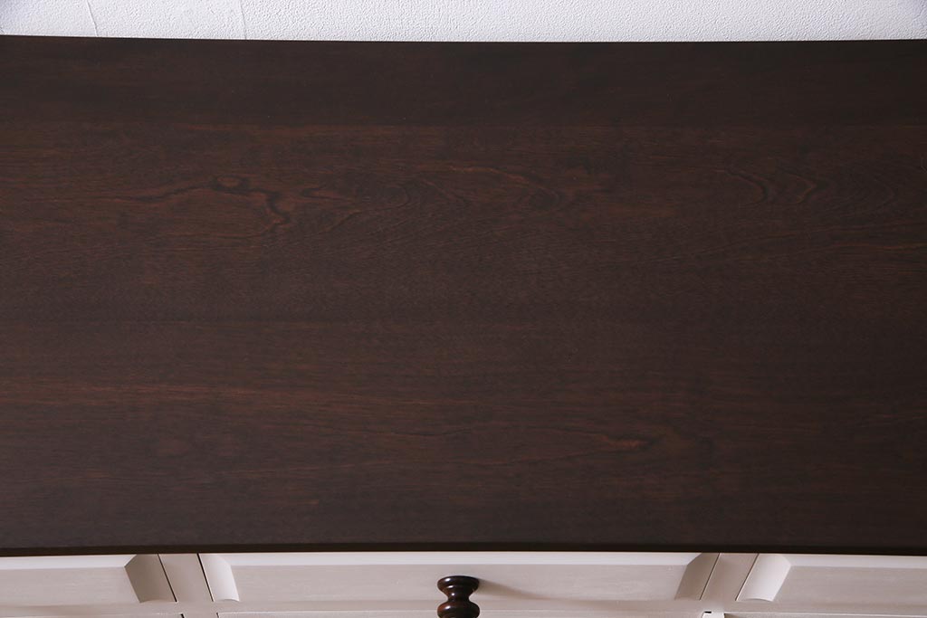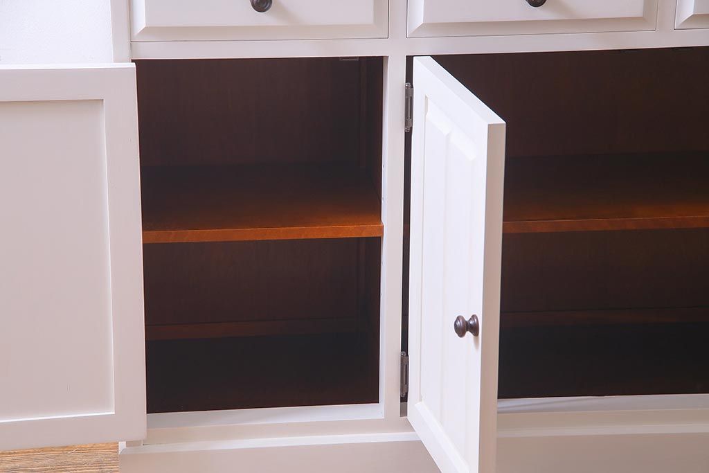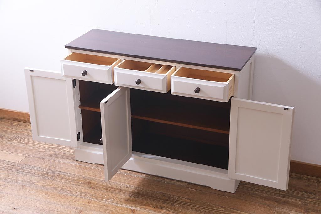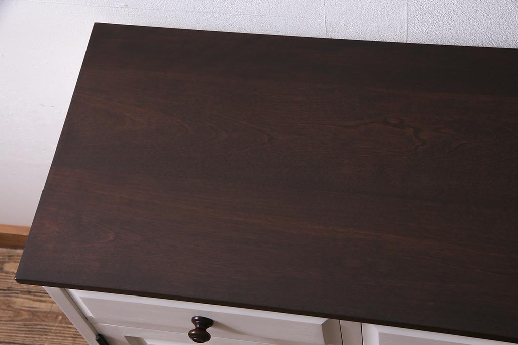 ラフジュ工房> キャビネット・戸棚> サイドボード > 中古 リメイク 北海道民芸家具 上品さが感じられるレトロシックなペイントサイドボード(収納棚、戸棚)(R-037732)