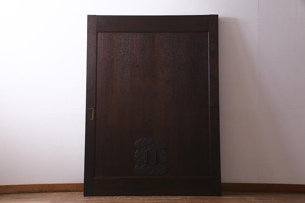 アンティーク建具 明治大正期 総栗材 濃い色合いと味わいが魅力的な蔵戸(建具、引き戸、玄関戸)(R-037768)