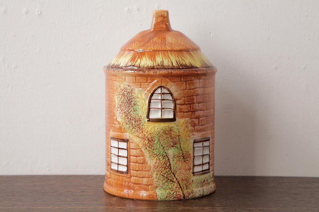 ヴィンテージ雑貨 イギリス Price & Kensington(プライス&ケンジントン) Cottage Ware ビスケットポット(ジャー、小物入れ、ビンテージ)(R-037789)