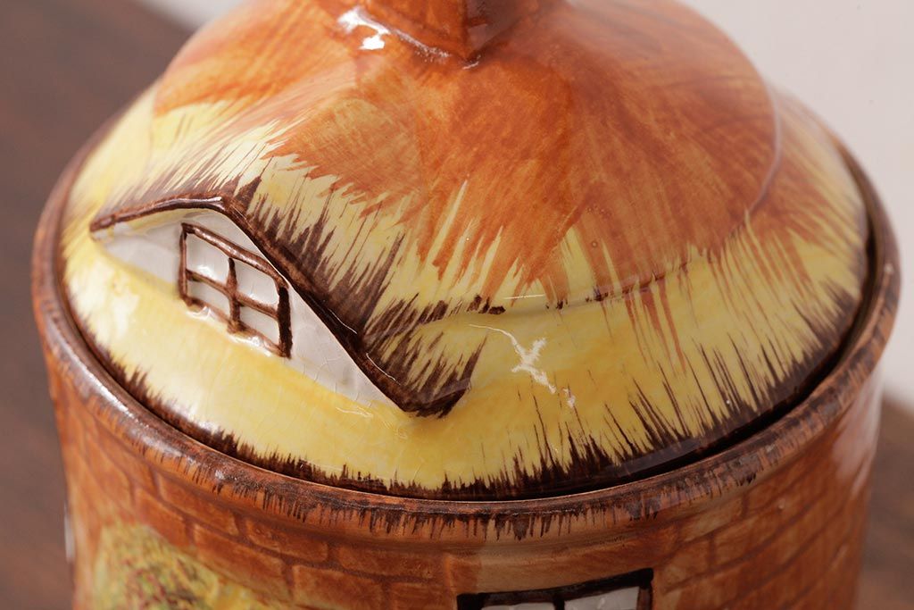 ラフジュ工房> 洋食器・キッチン用品> キャニスター > ヴィンテージ雑貨 イギリス Price & Kensington(プライス&ケンジントン) Cottage Ware ビスケットポット(ジャー、小物入れ、ビンテージ)(R-037789)