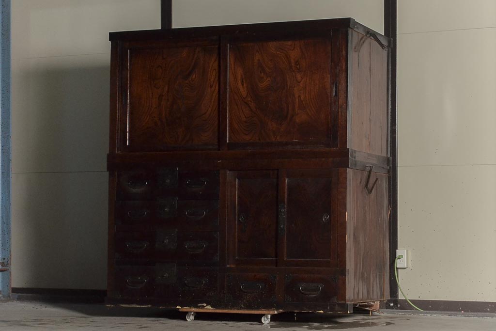 和箪笥 > アンティーク家具 前面ケヤキ材・桜材 重ね収納箪笥(水屋箪笥)(R-036884)