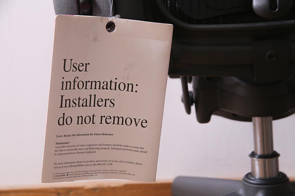 椅子・ベンチ> 回転椅子 > 中古 Hermanmiller(ハーマンミラー社) アーロンチェア(オフィスチェア、椅子、イス)(定価約19万円)(R-037782)