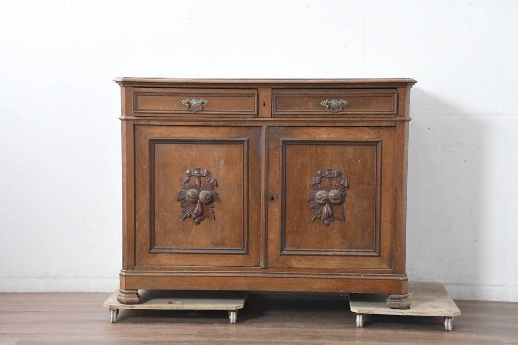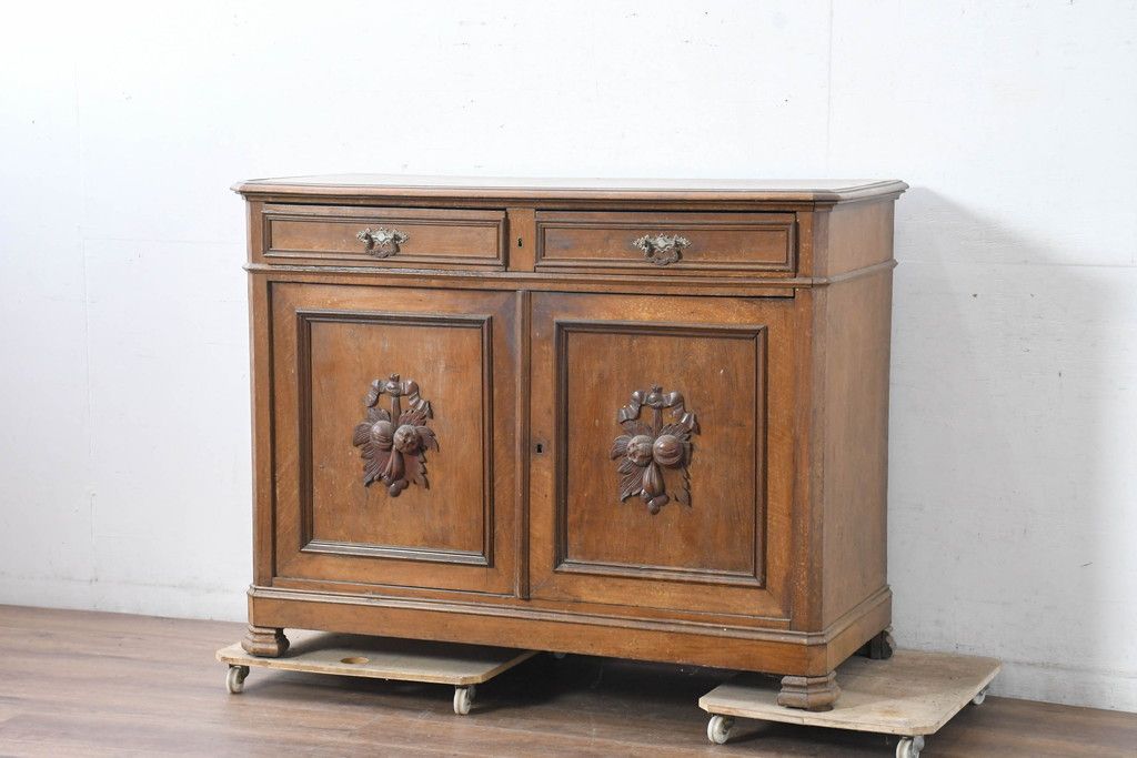 フランスアンティーク クラシカルなレリーフが目を引くサイドボード(収納棚、飾り棚、戸棚、サイドキャビネット)(R-036994)です。
