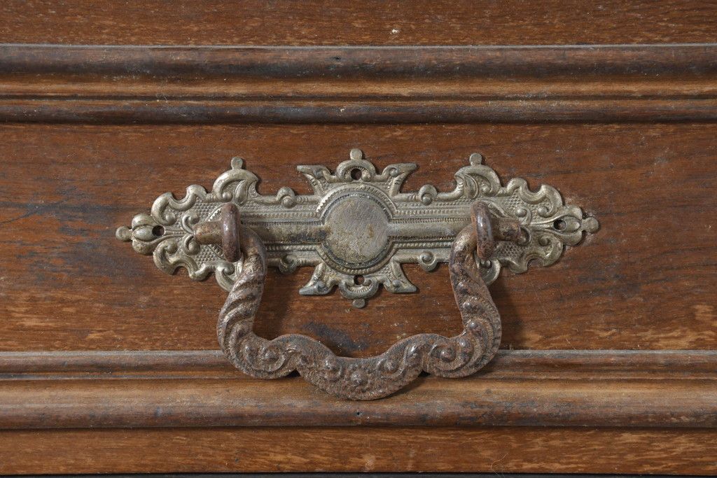 アンティーク商品では稀に引き出しや扉、つまみ等を動かすと鍵がかかる仕組みの商品があります。鍵閉じ込め防止のため、鍵は当該商品の引き出し、扉内ではなく別に保管してくださいますようお願い致します。
