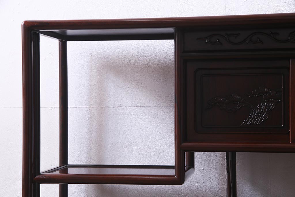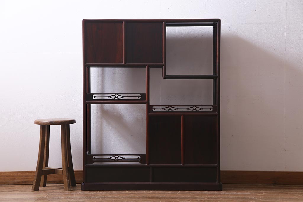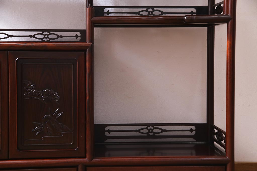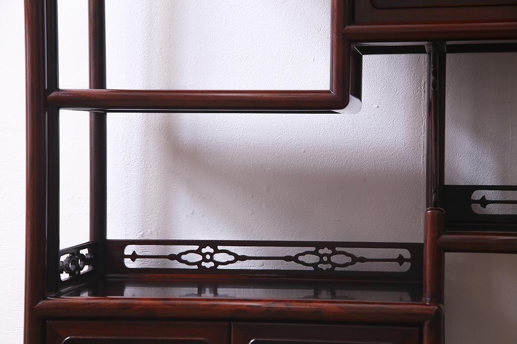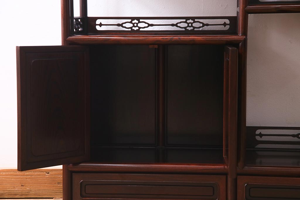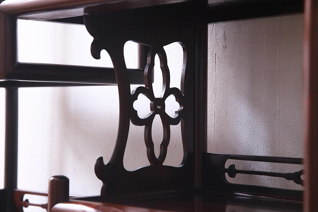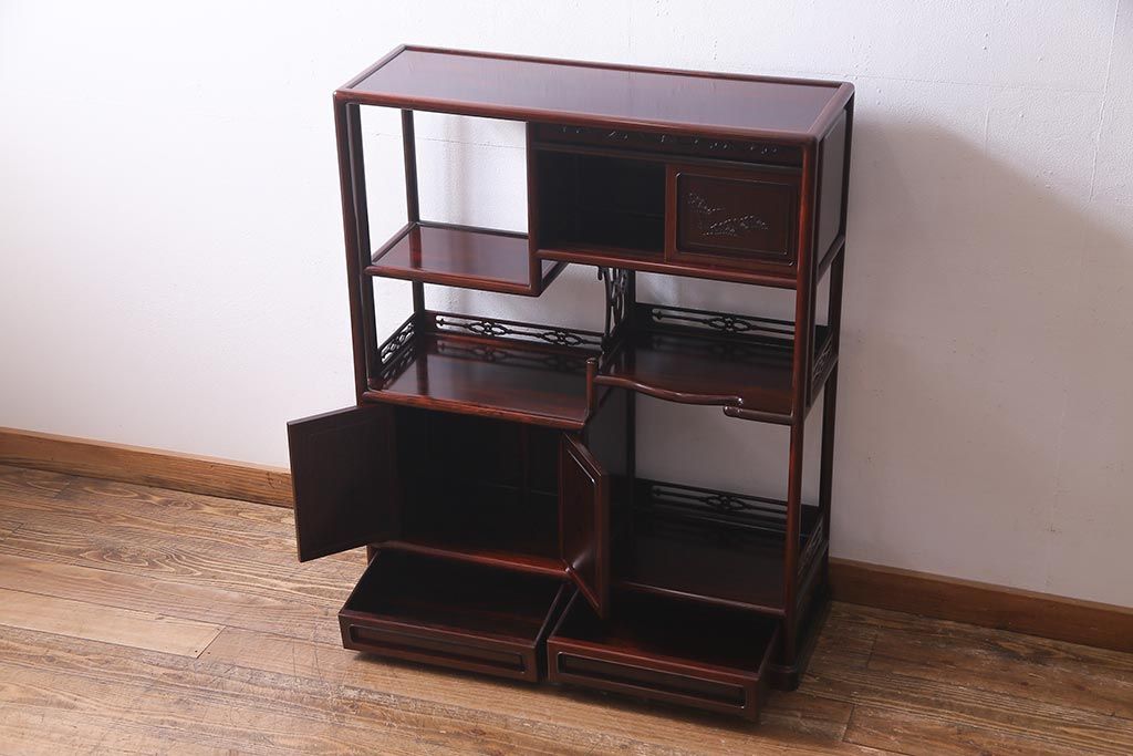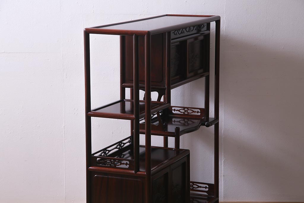 ビンテージ家具 指物家具 紫檀と漆が上品さ醸し出す茶棚(収納棚、飾り棚)(R-037809)