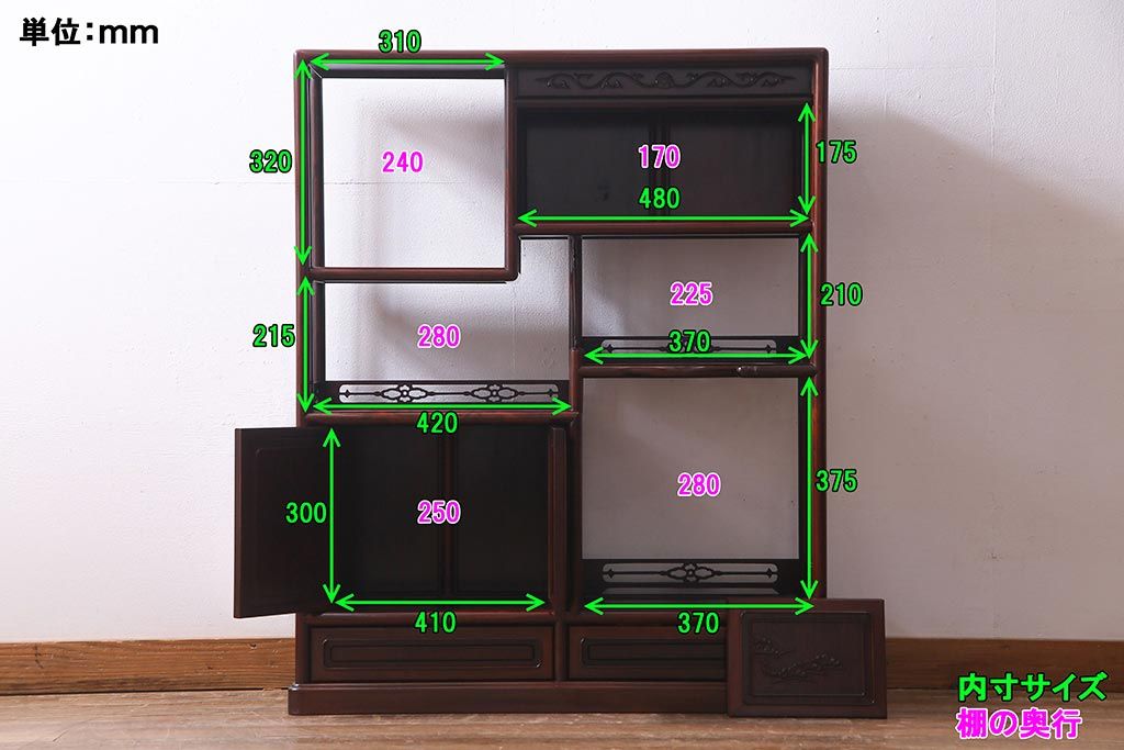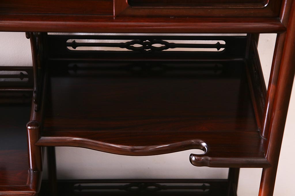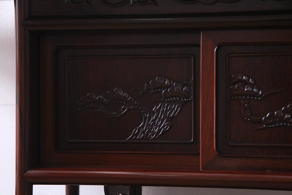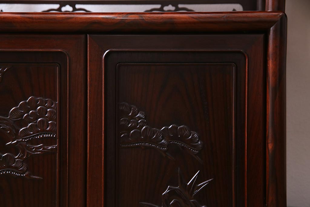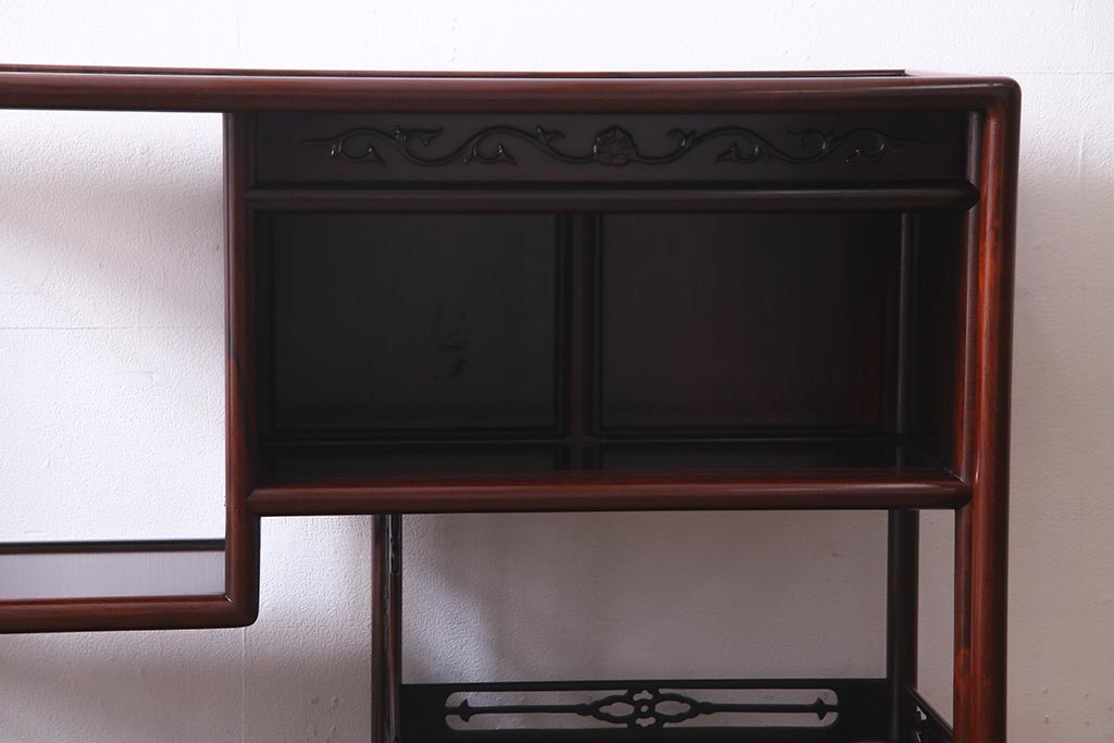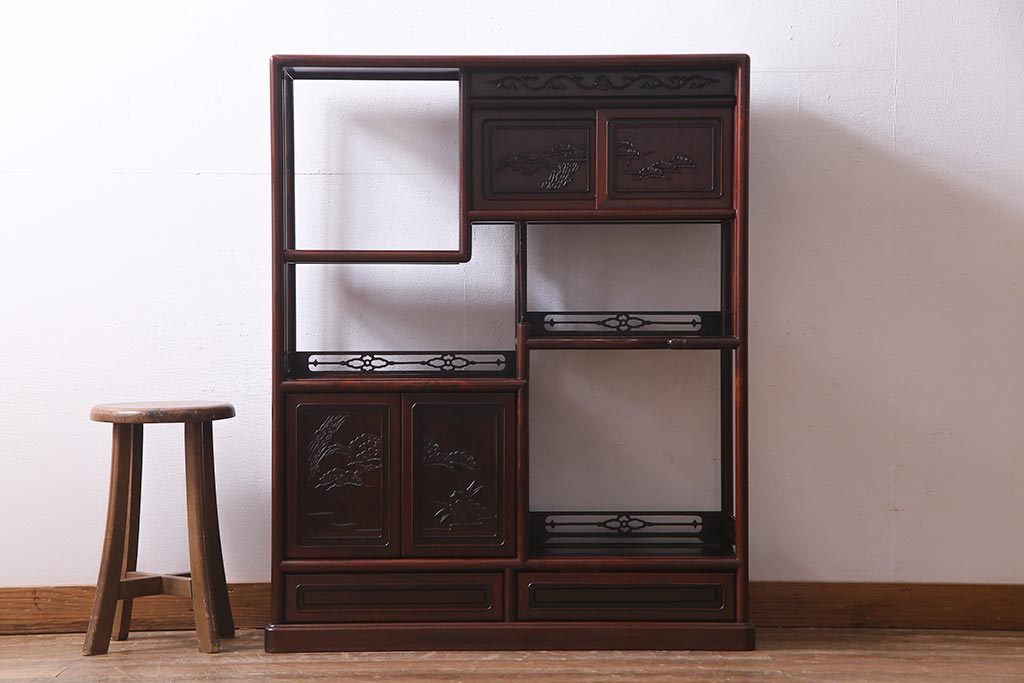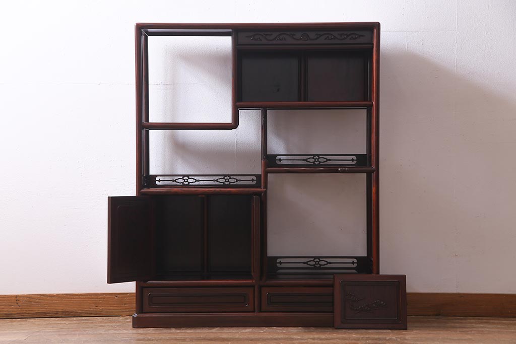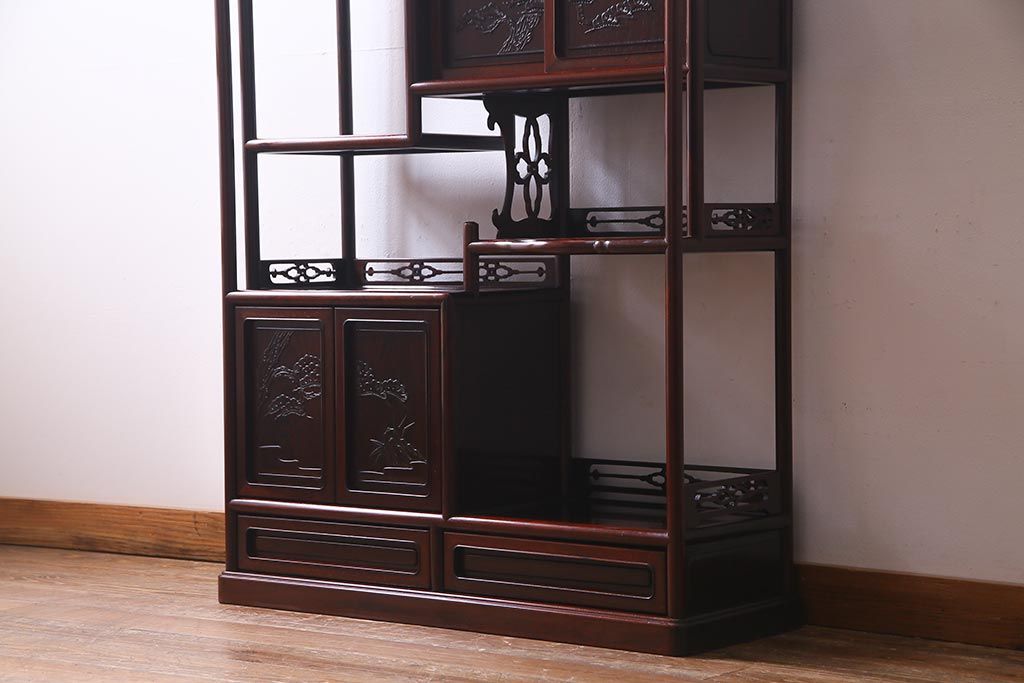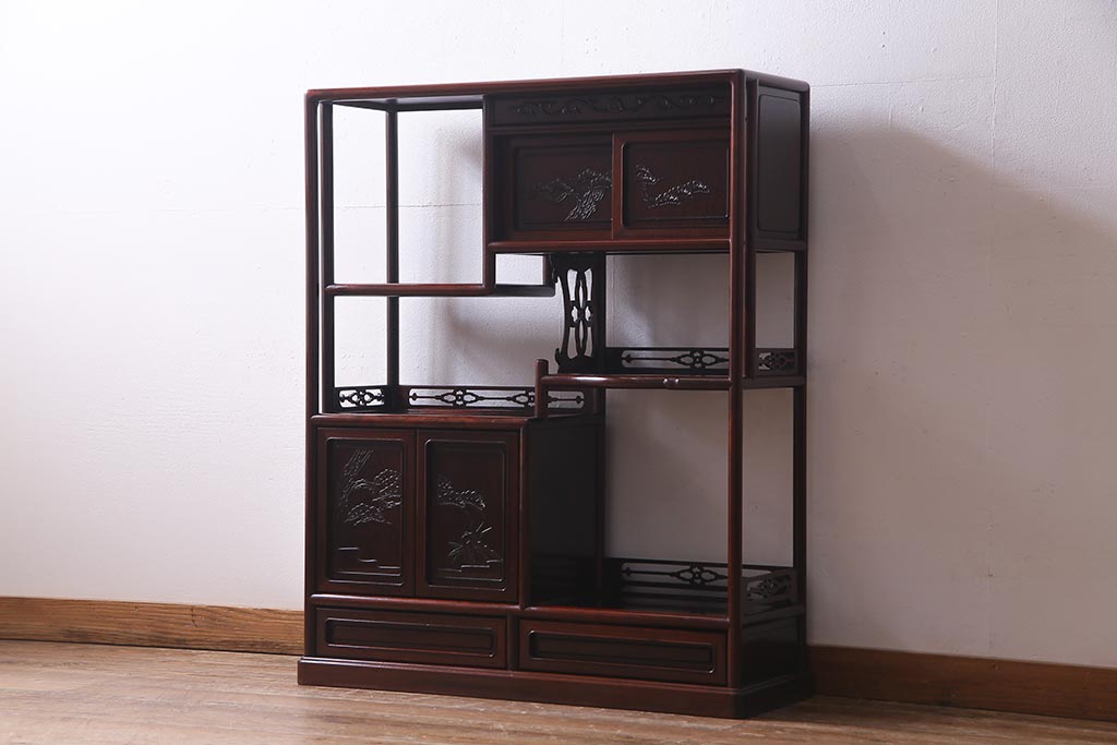 ビンテージ家具 指物家具 紫檀と漆が上品さ醸し出す茶棚(収納棚、飾り棚)(R-037809)