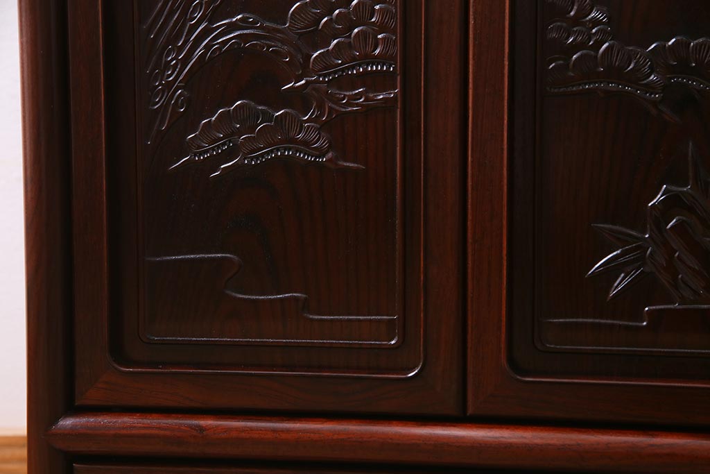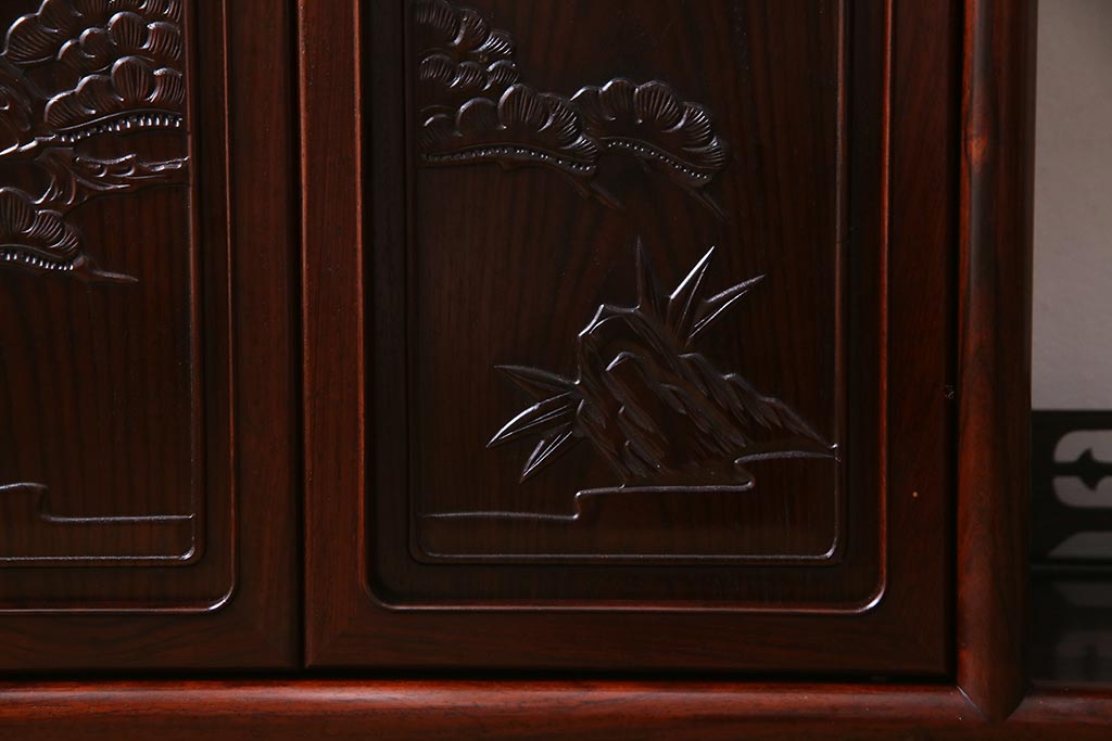 前面には松の浮彫り、違い棚には透かしも施されており、