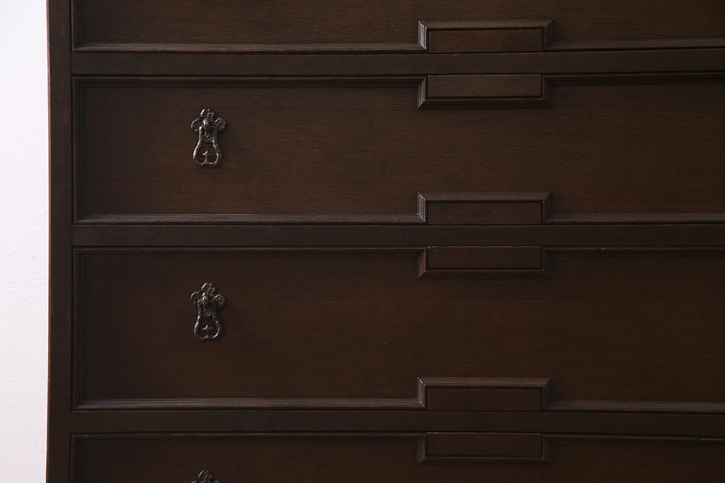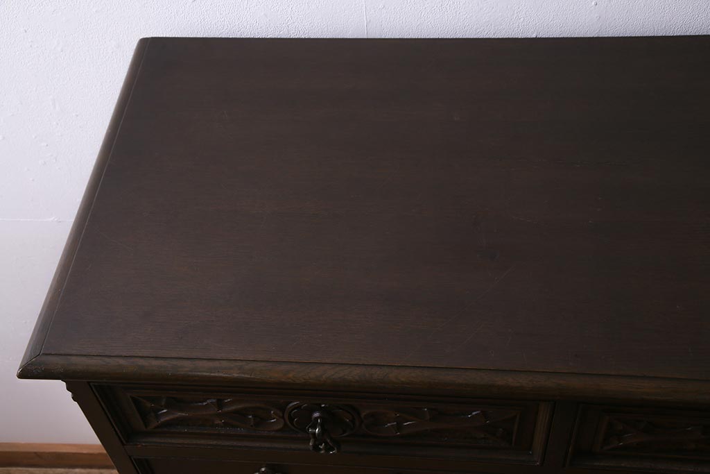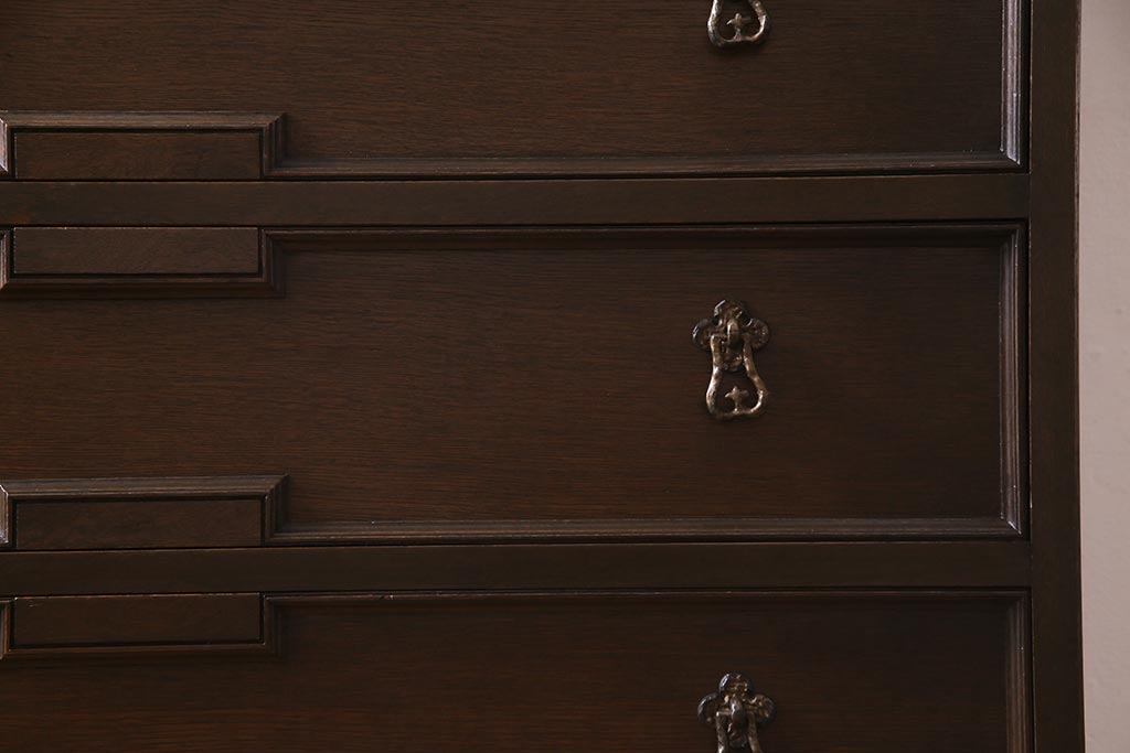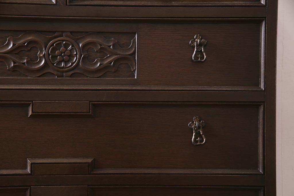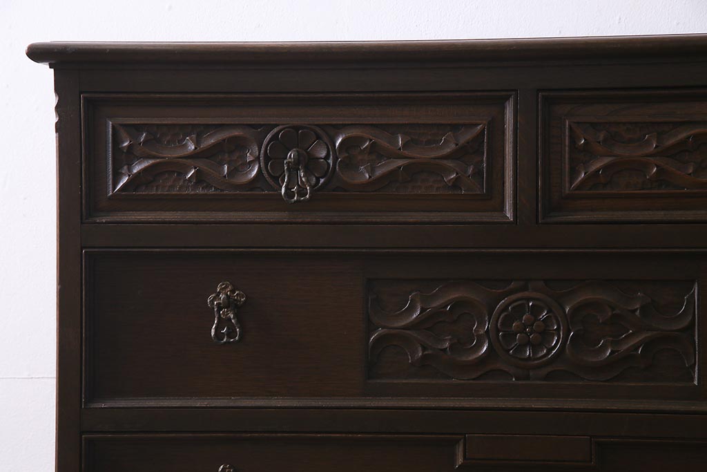 ビンテージ家具 神戸洋家具老舗たかねや製 オーク材 クラシカルな意匠がおしゃれなチェスト(引き出し、永田良介、ヴィンテージ)(R-037815)