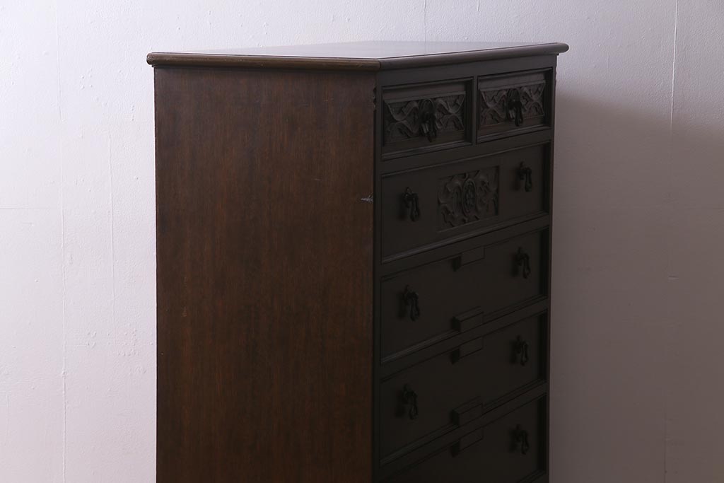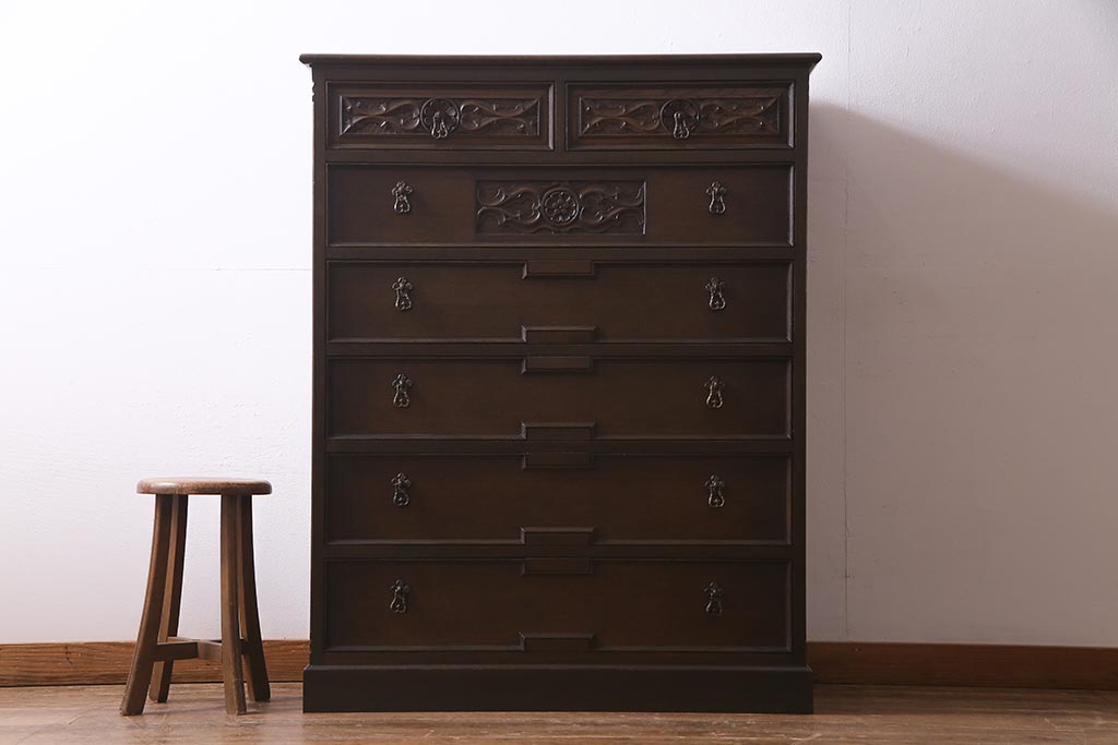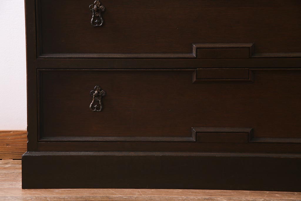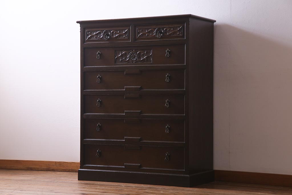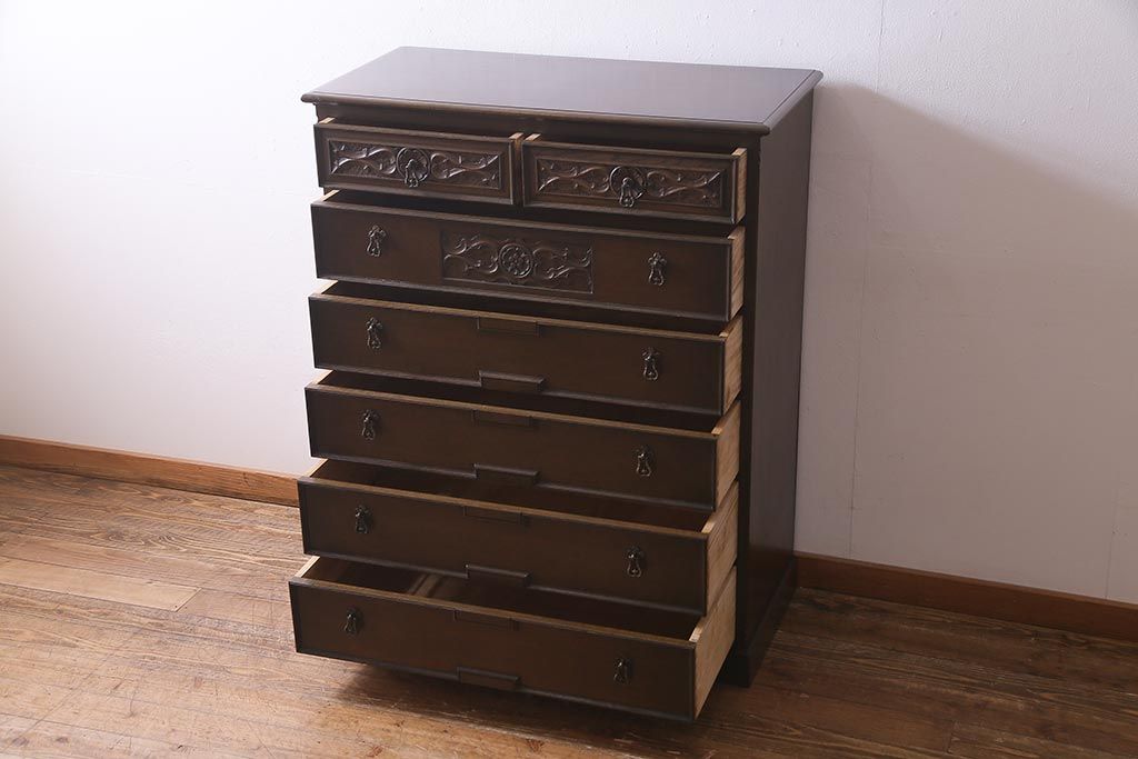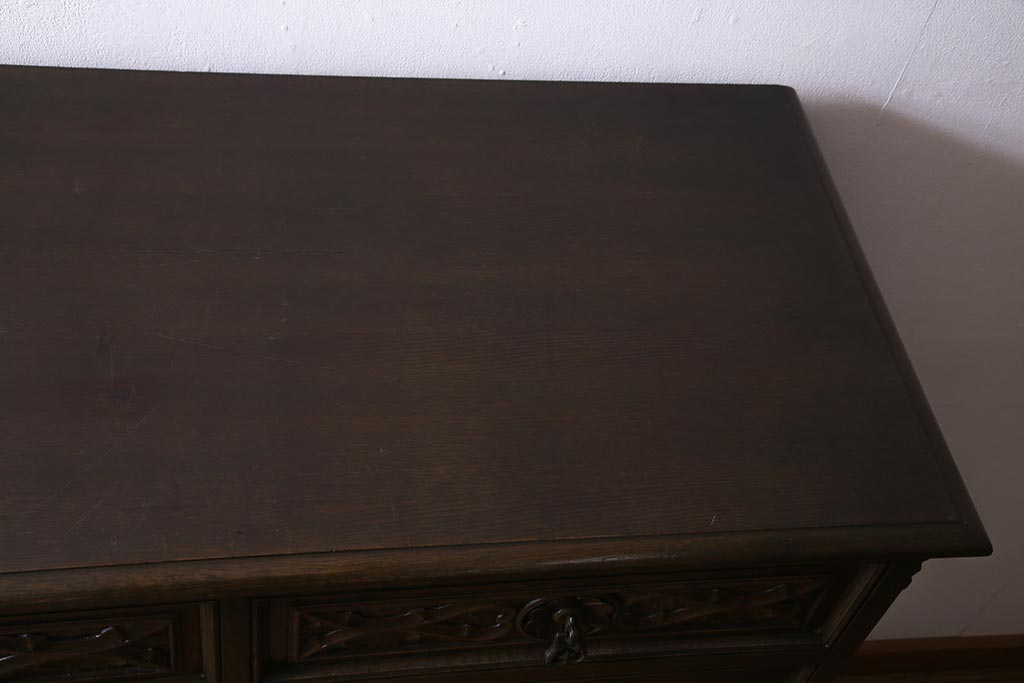 ビンテージ家具 神戸洋家具老舗たかねや製 オーク材 クラシカルな意匠がおしゃれなチェスト(引き出し、永田良介、ヴィンテージ)(R-037815)