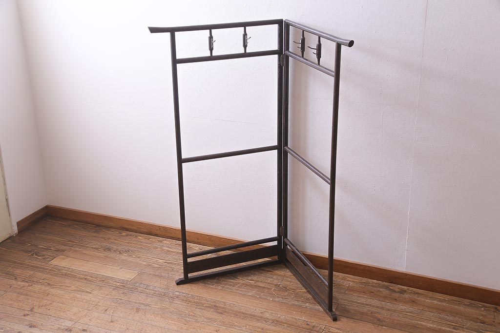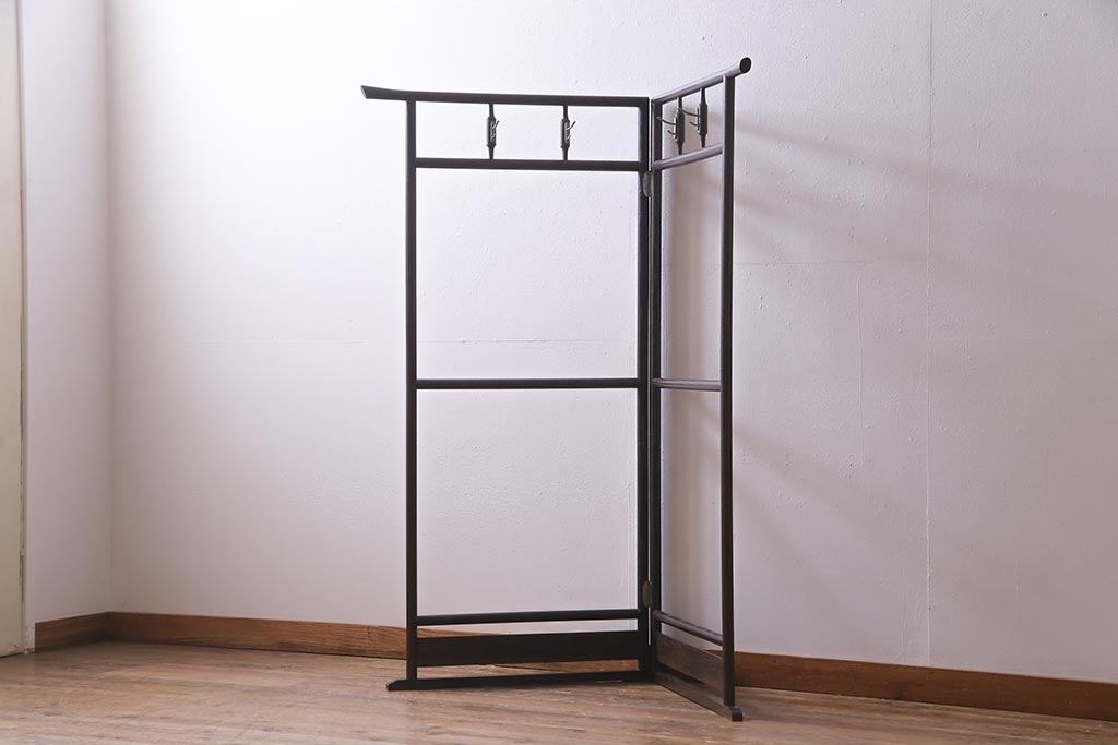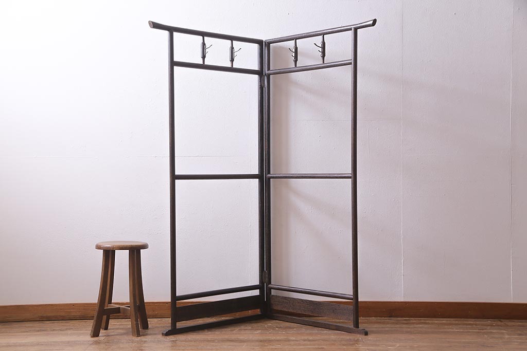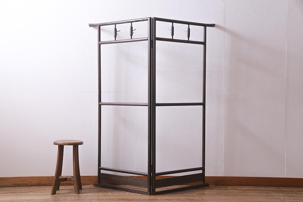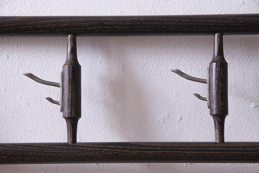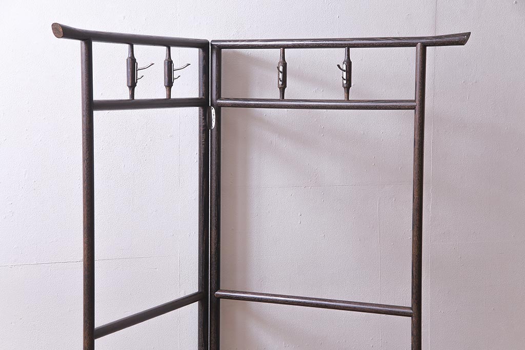 アンティーク家具 桑材 和風インテリアにおすすめなフック付きの便利な衣桁(着物掛け、ハンガーラック)です。