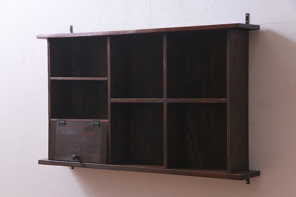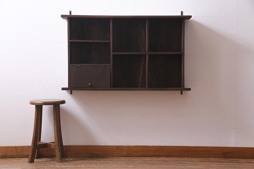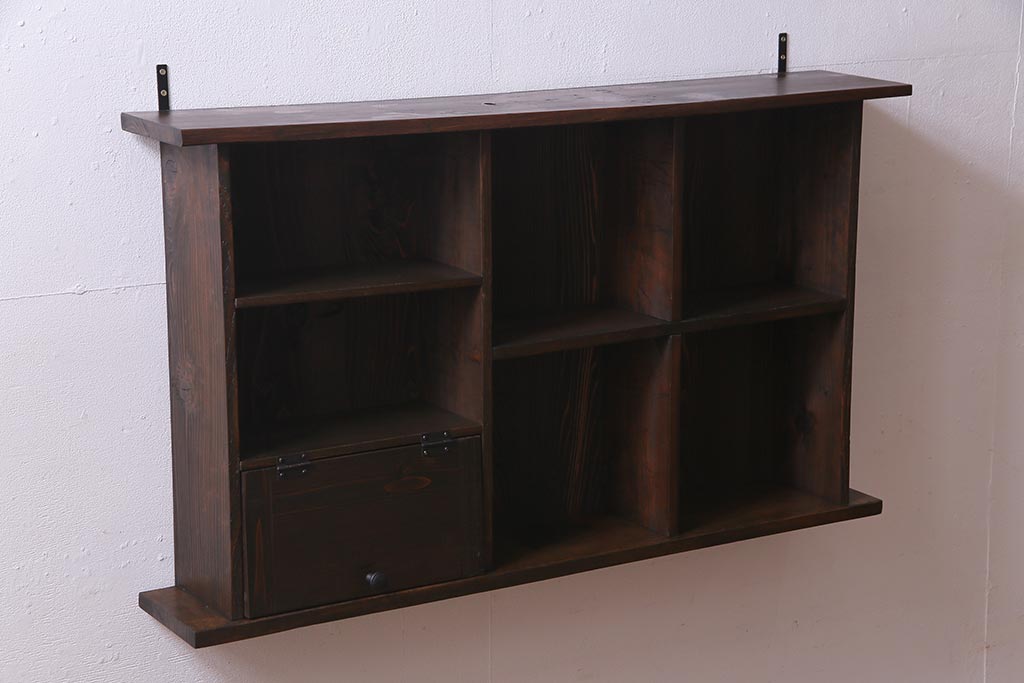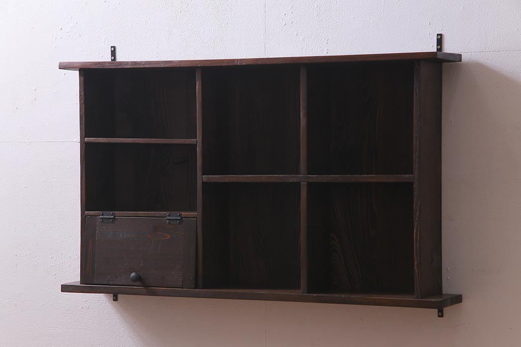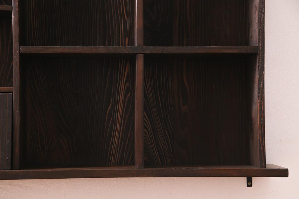 ラフジュ工房オリジナル アンティーク材リメイク パタパタ扉付き 古材の味わいが魅力的なウォールシェルフ(壁掛け収納棚、ウォールラック、マス目棚)(R-037766)