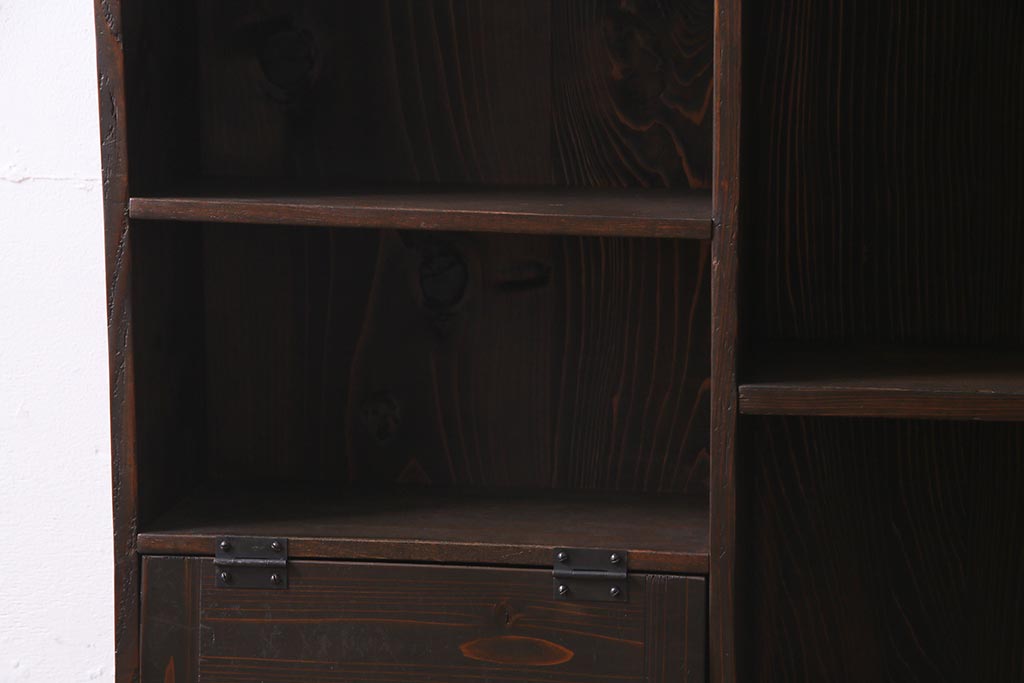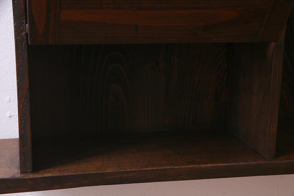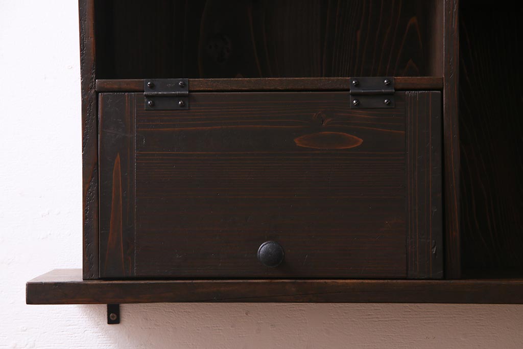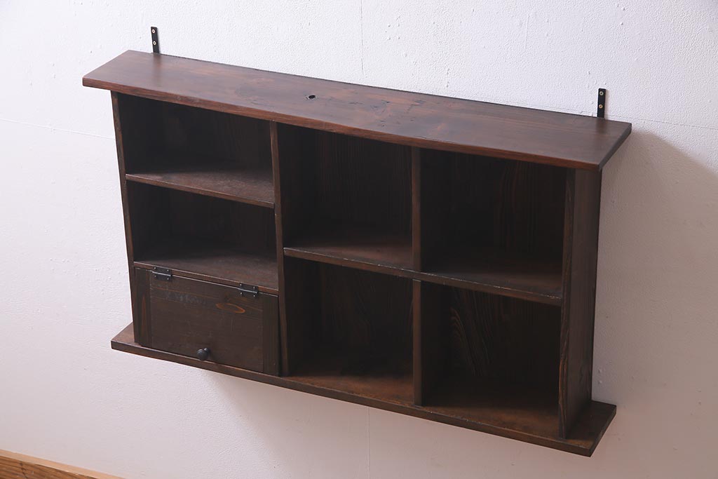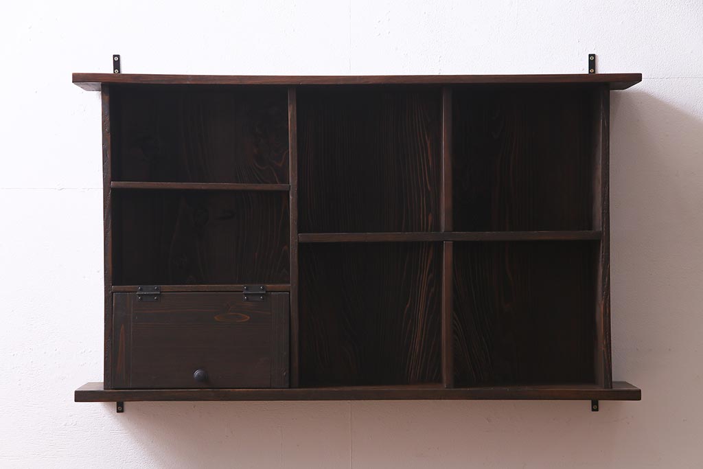 ラフジュ工房オリジナル アンティーク材リメイク パタパタ扉付き 古材の味わいが魅力的なウォールシェルフ(壁掛け収納棚、ウォールラック、マス目棚)(R-037766)