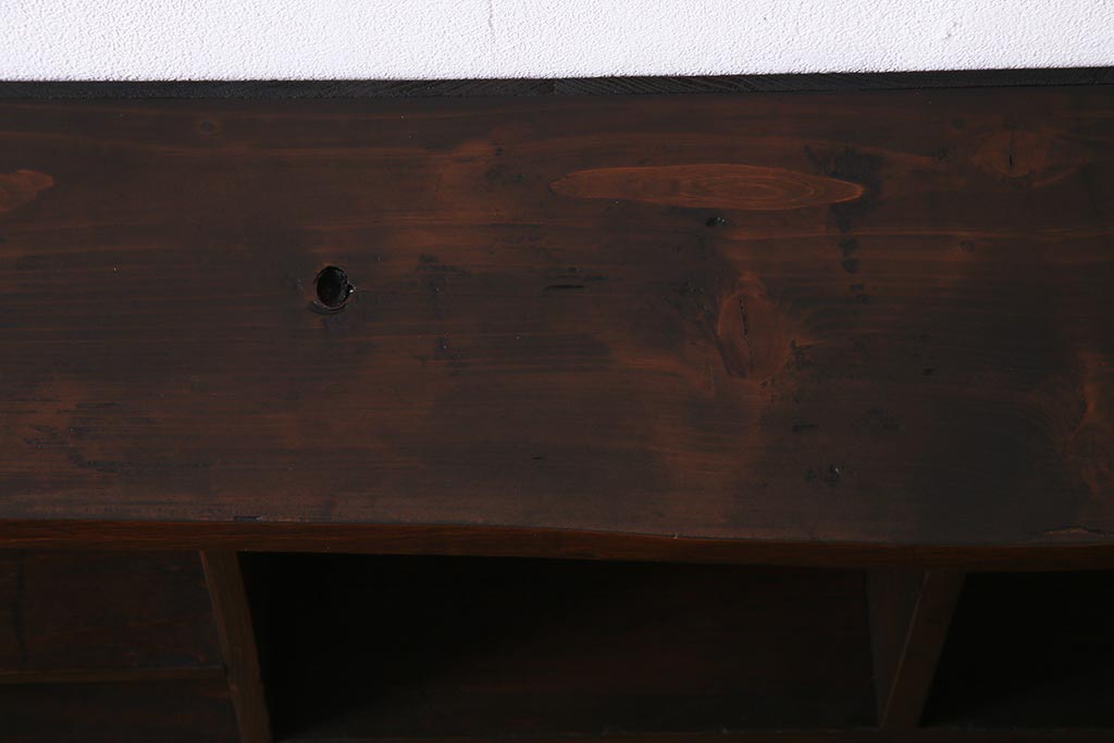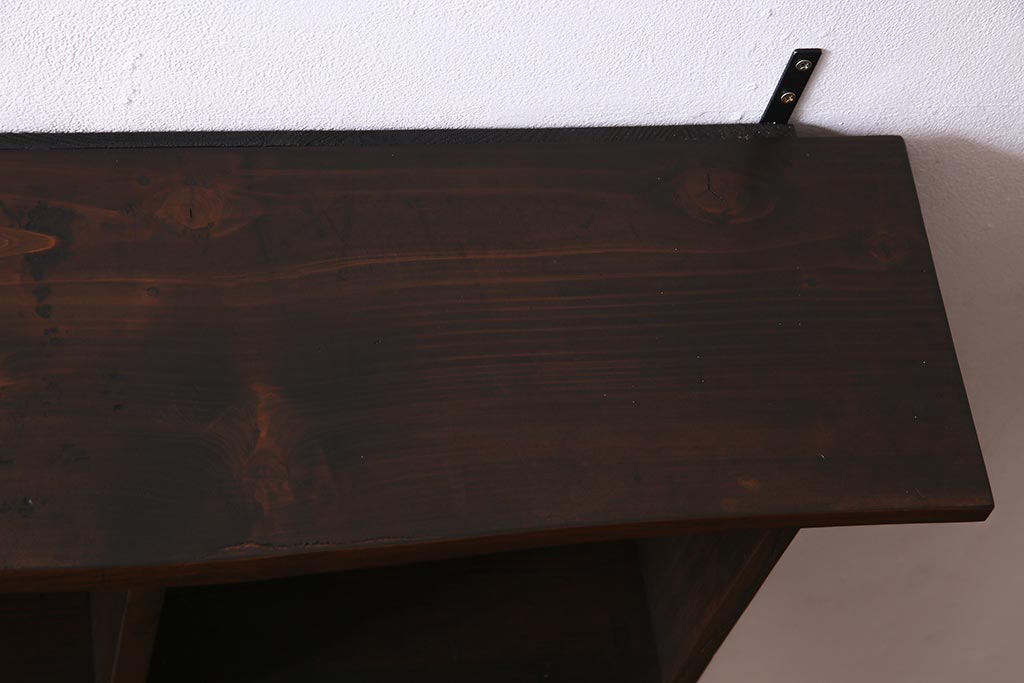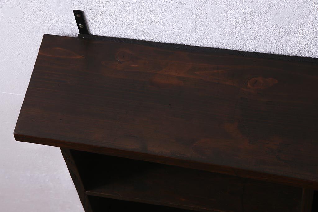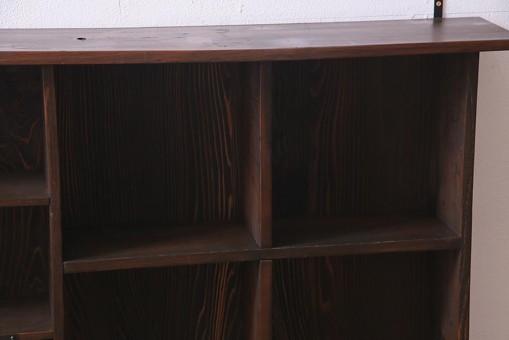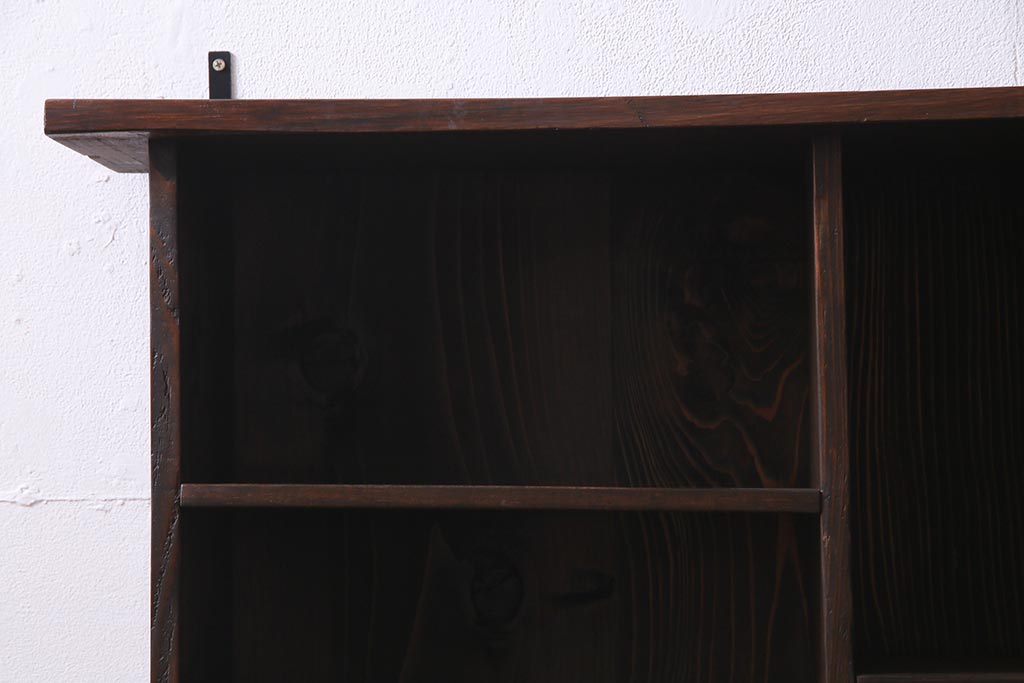 ラフジュ工房> オープンラック・シェルフ> ウォールシェルフ > ラフジュ工房オリジナル アンティーク材リメイク パタパタ扉付き 古材の味わいが魅力的なウォールシェルフ(壁掛け収納棚、ウォールラック、マス目棚)(R-037766)