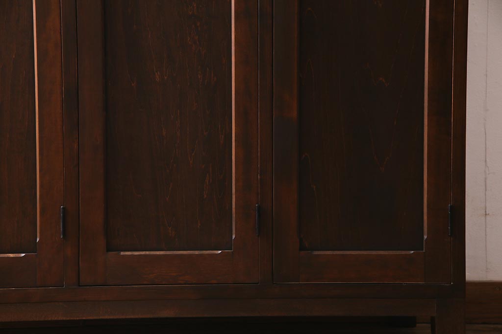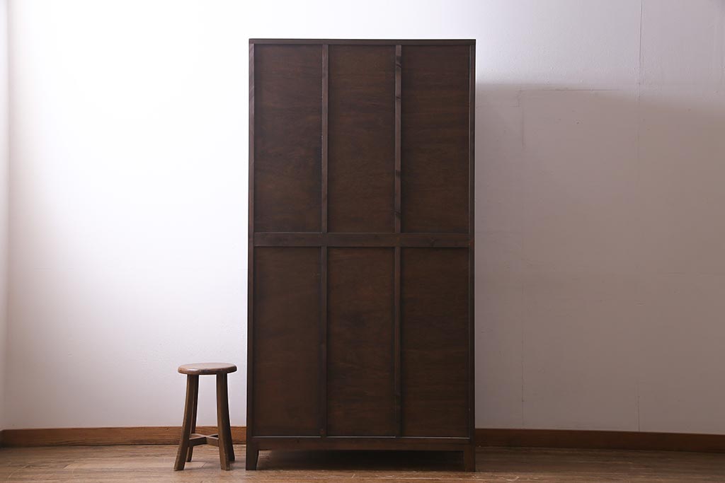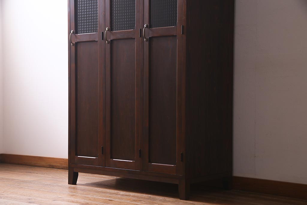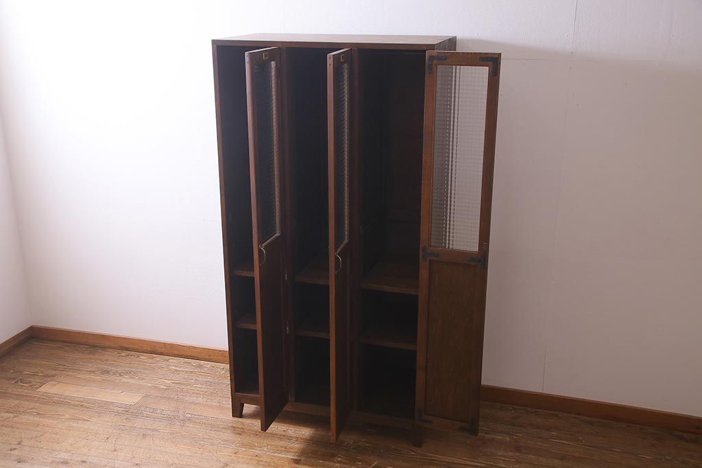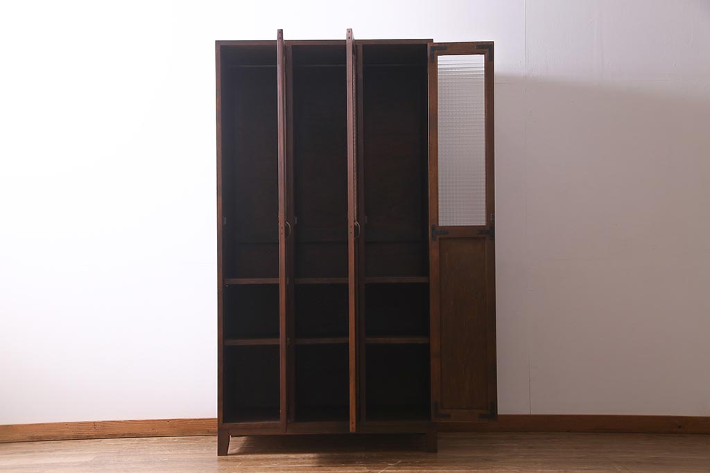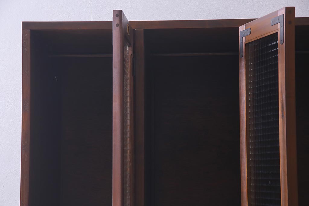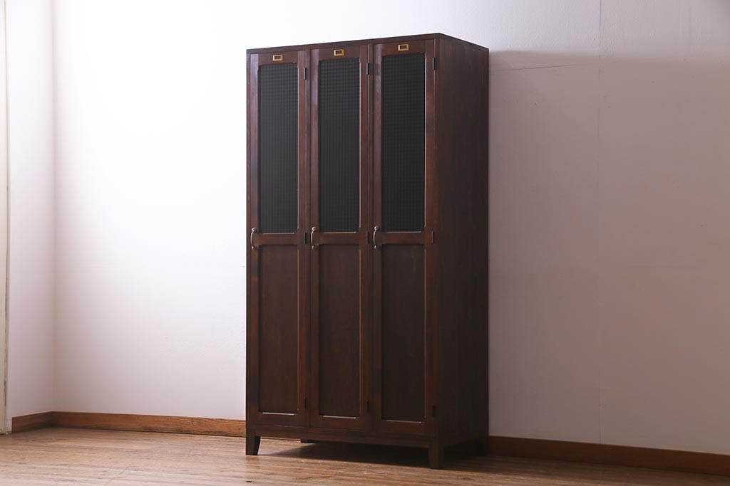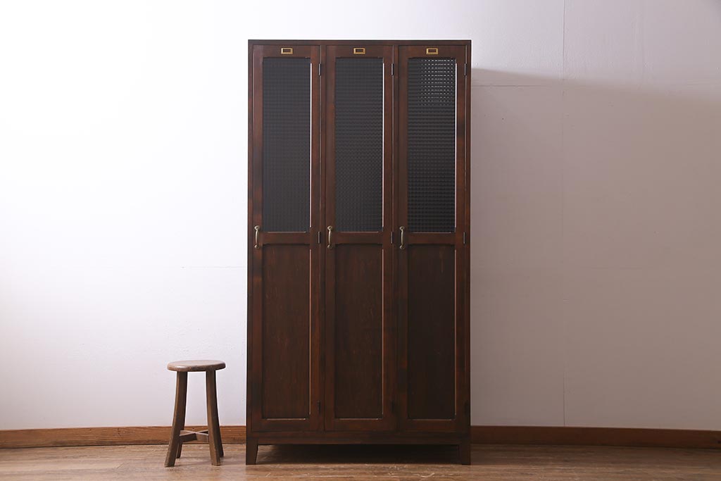 ラフジュ工房オリジナル ヒノキ無垢材・ヒバ材 チェッカーガラス入り ノスタルジックな雰囲気漂う3人用ロッカー(ワードローブ)(R-037783)