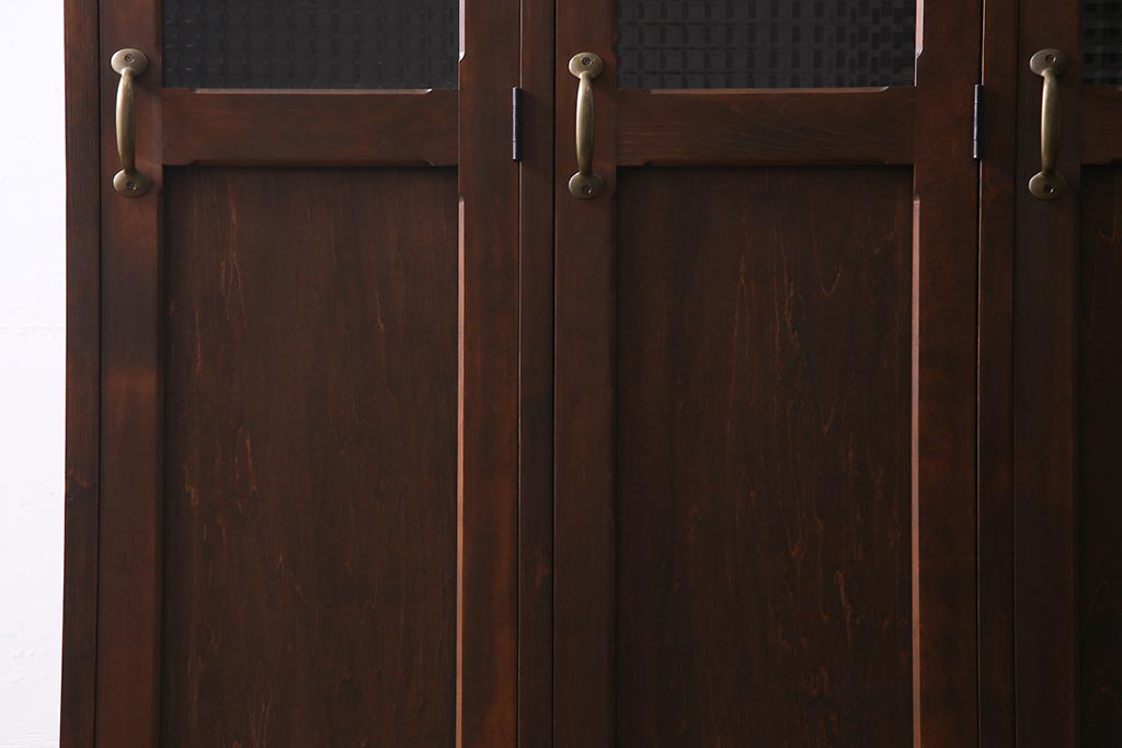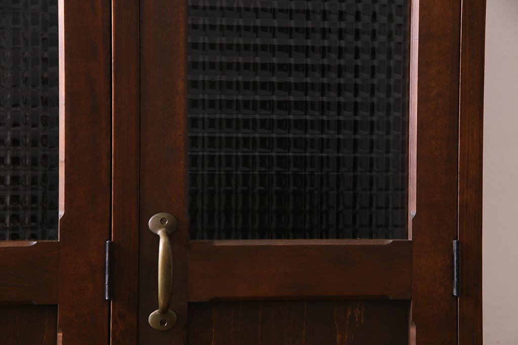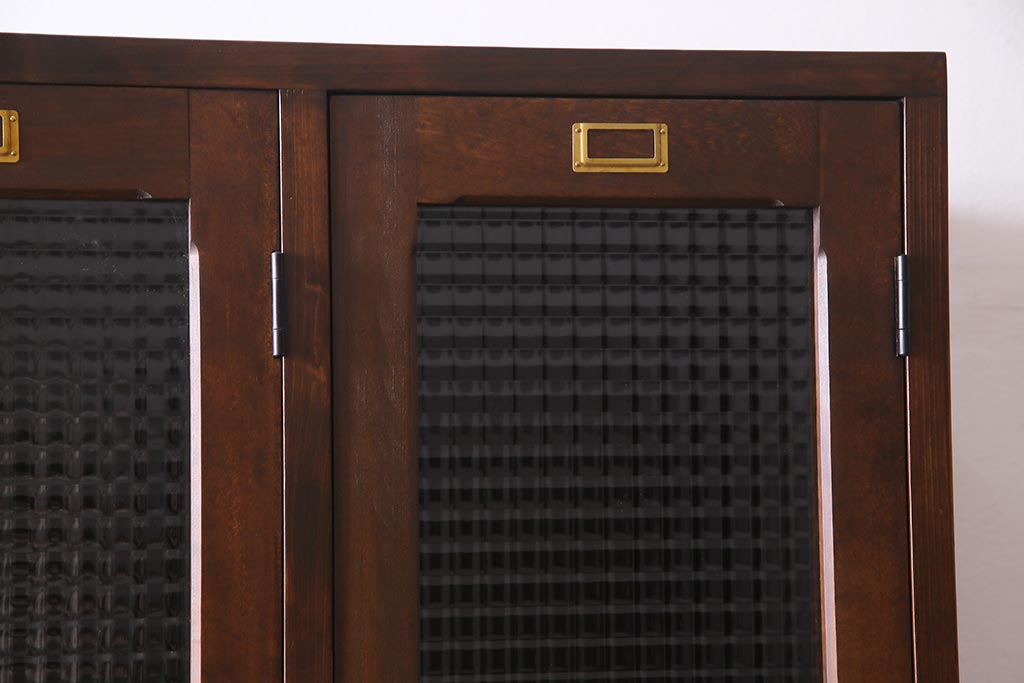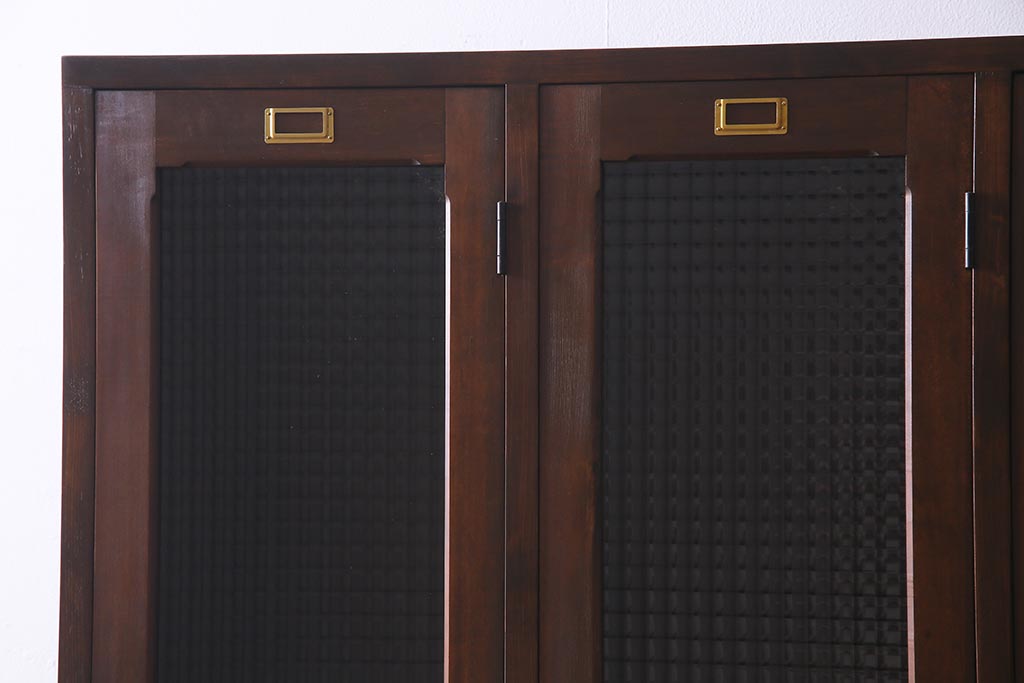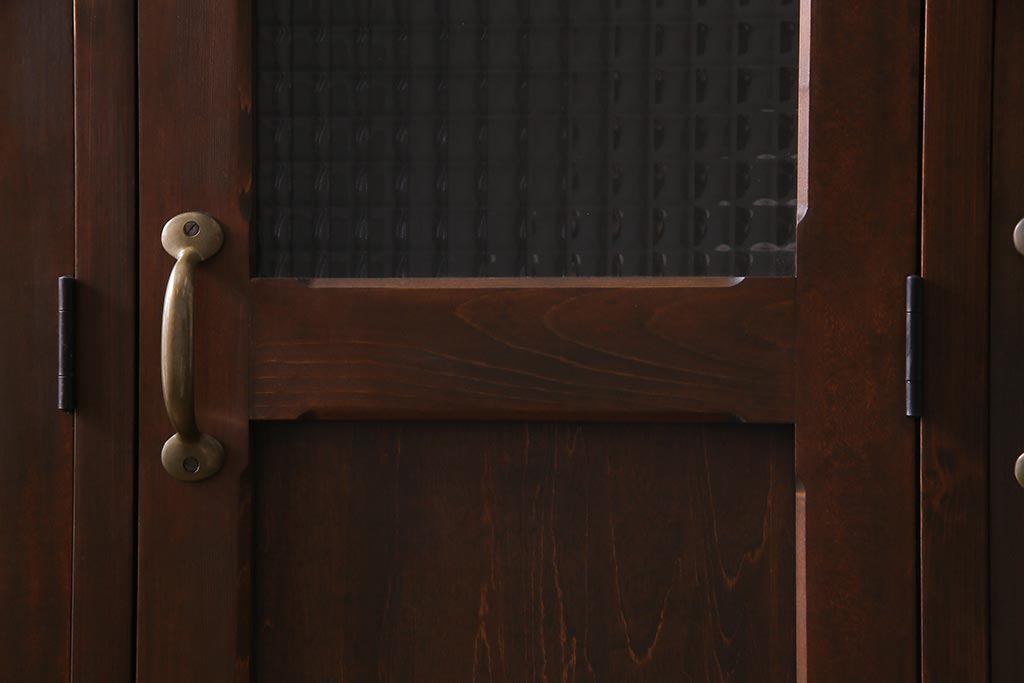 ラフジュ工房オリジナル ヒノキ無垢材・ヒバ材 チェッカーガラス入り ノスタルジックな雰囲気漂う3人用ロッカー(収納棚、戸棚)(R-037783)です。