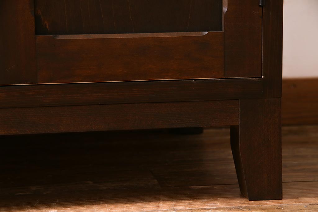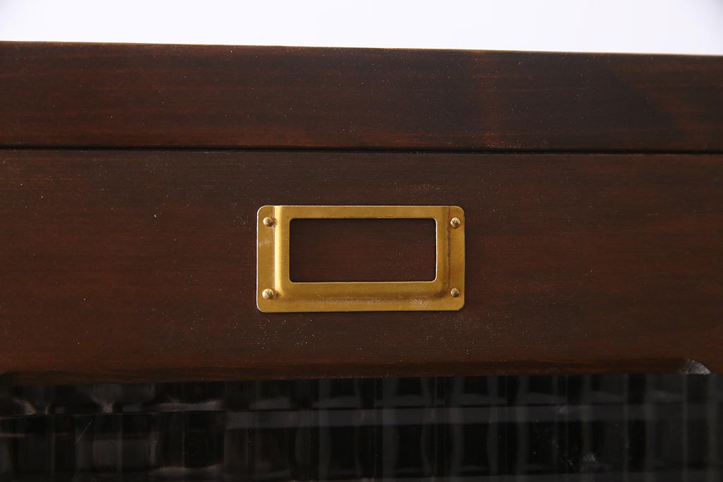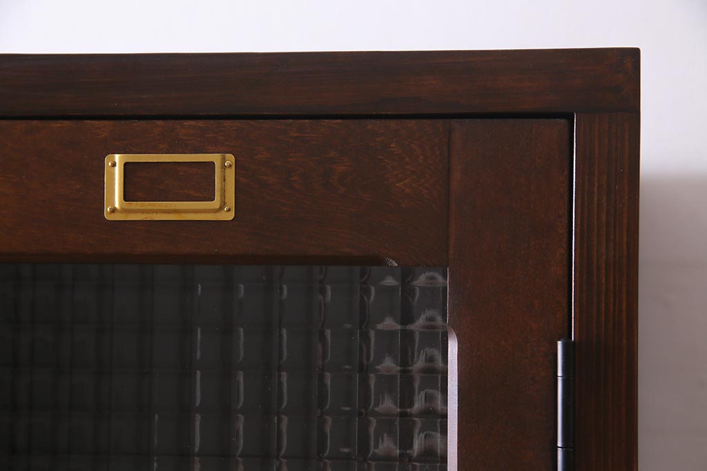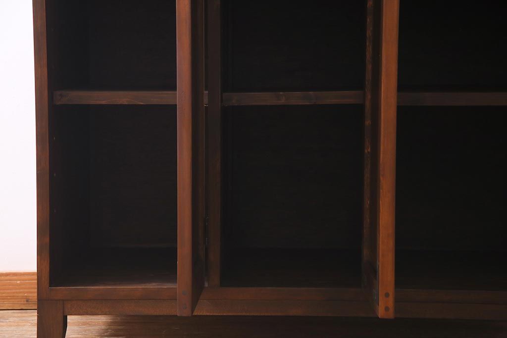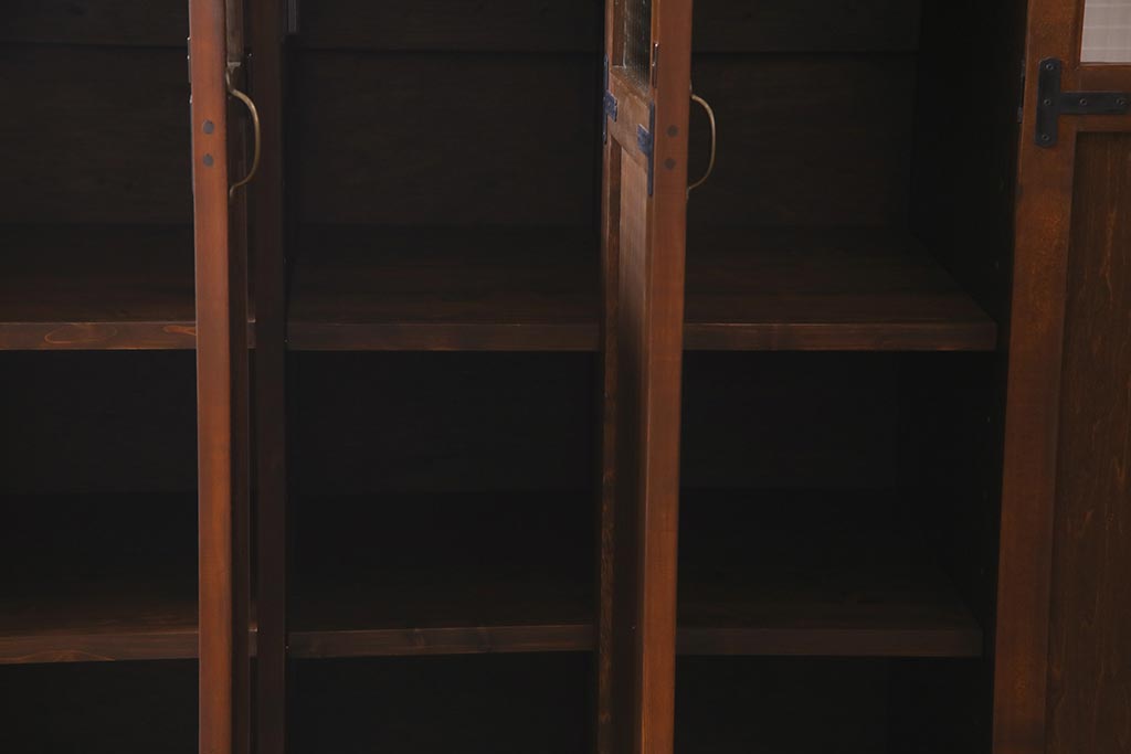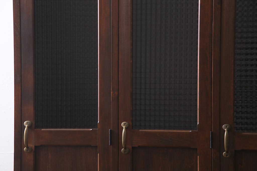 ラフジュ工房オリジナル ヒノキ無垢材・ヒバ材 チェッカーガラス入り ノスタルジックな雰囲気漂う3人用ロッカー(収納棚、戸棚)(R-037783)です。
