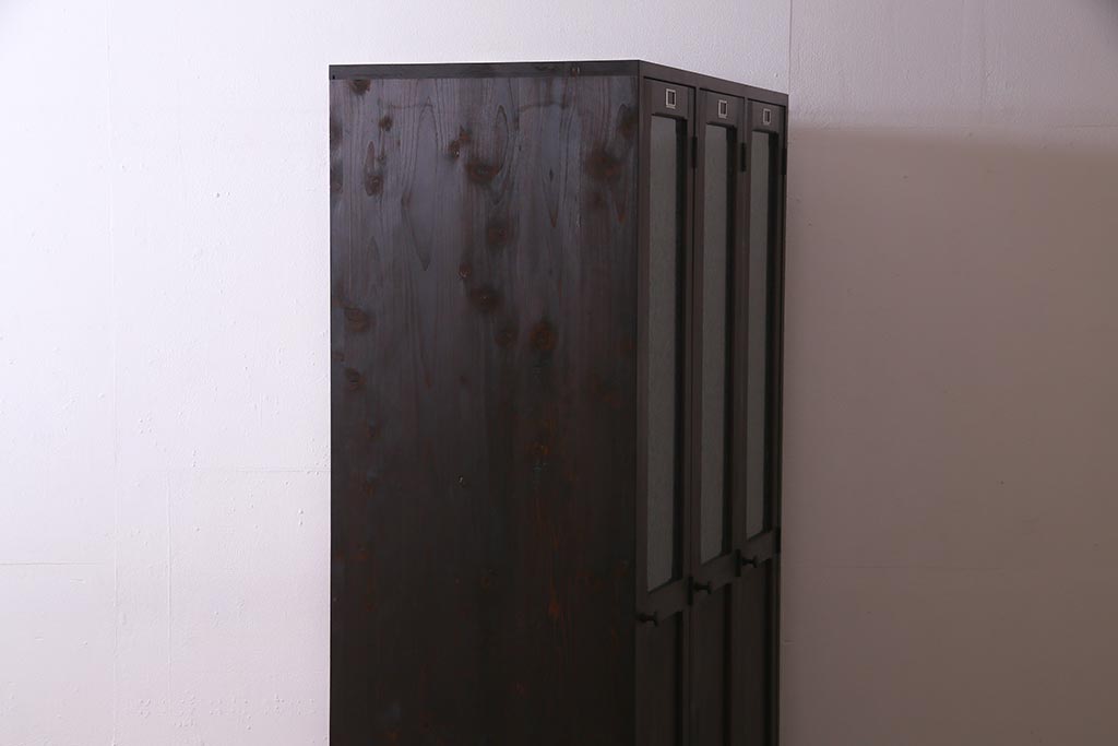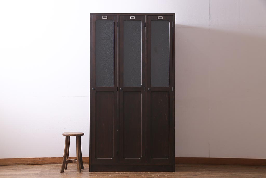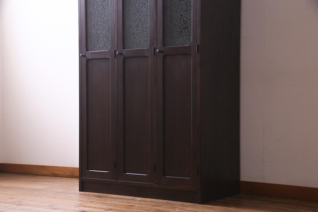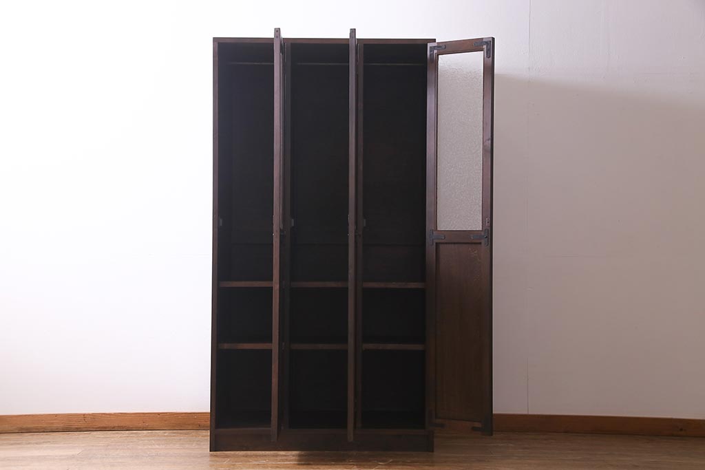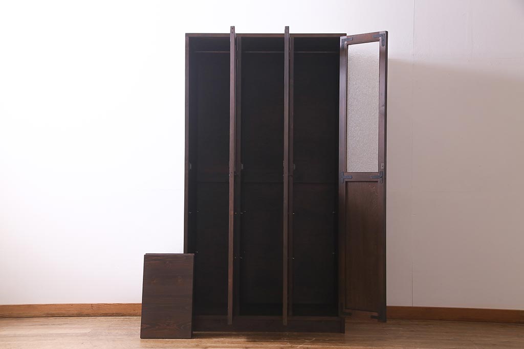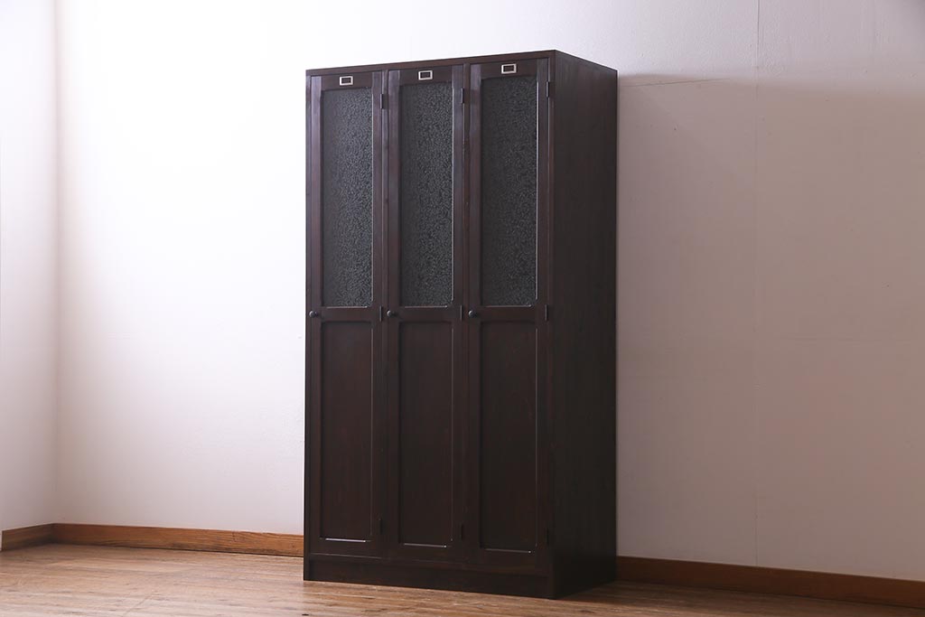 ラフジュ工房オリジナル ヒノキ無垢材・ヒバ材 結霜ガラス入り レトロな佇まいが魅力的な3人用ロッカー(ワードローブ)(R-037784)