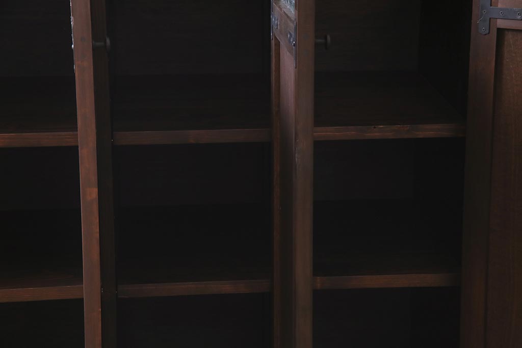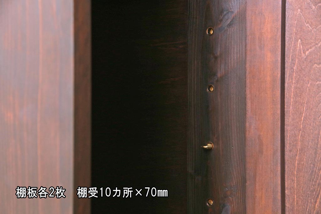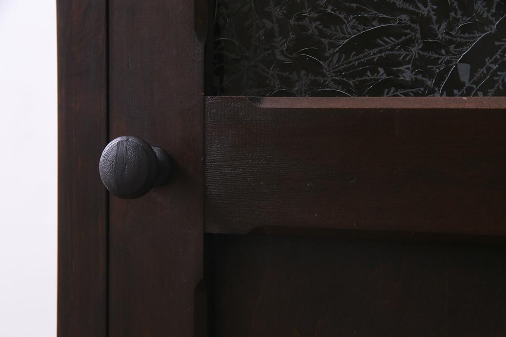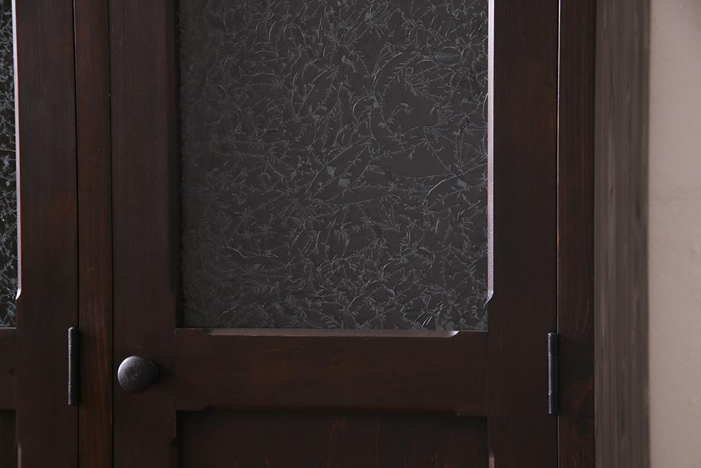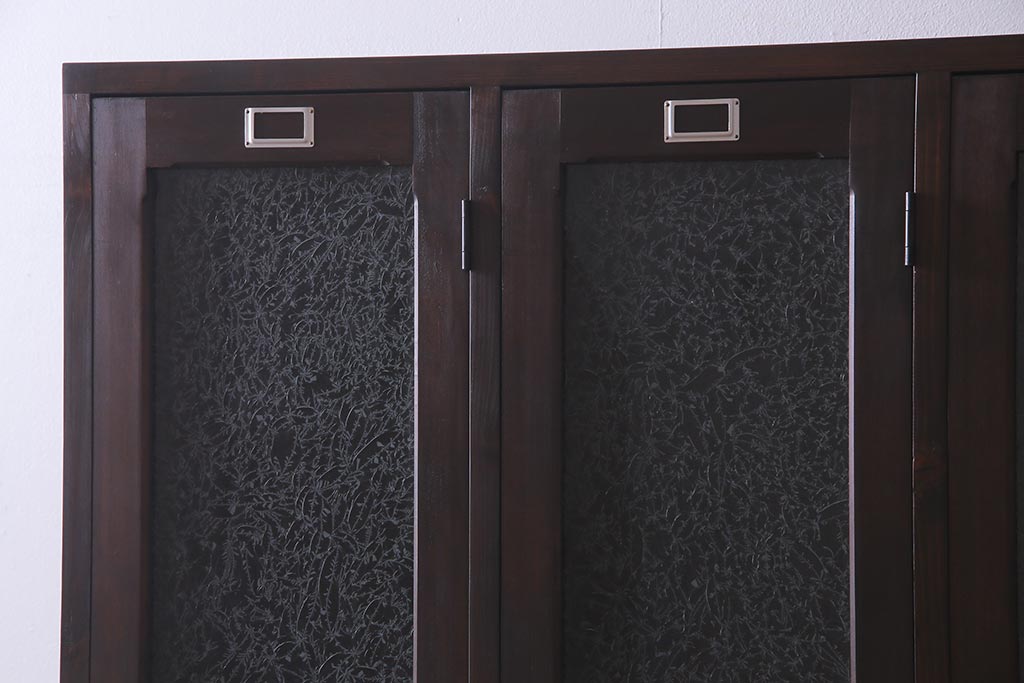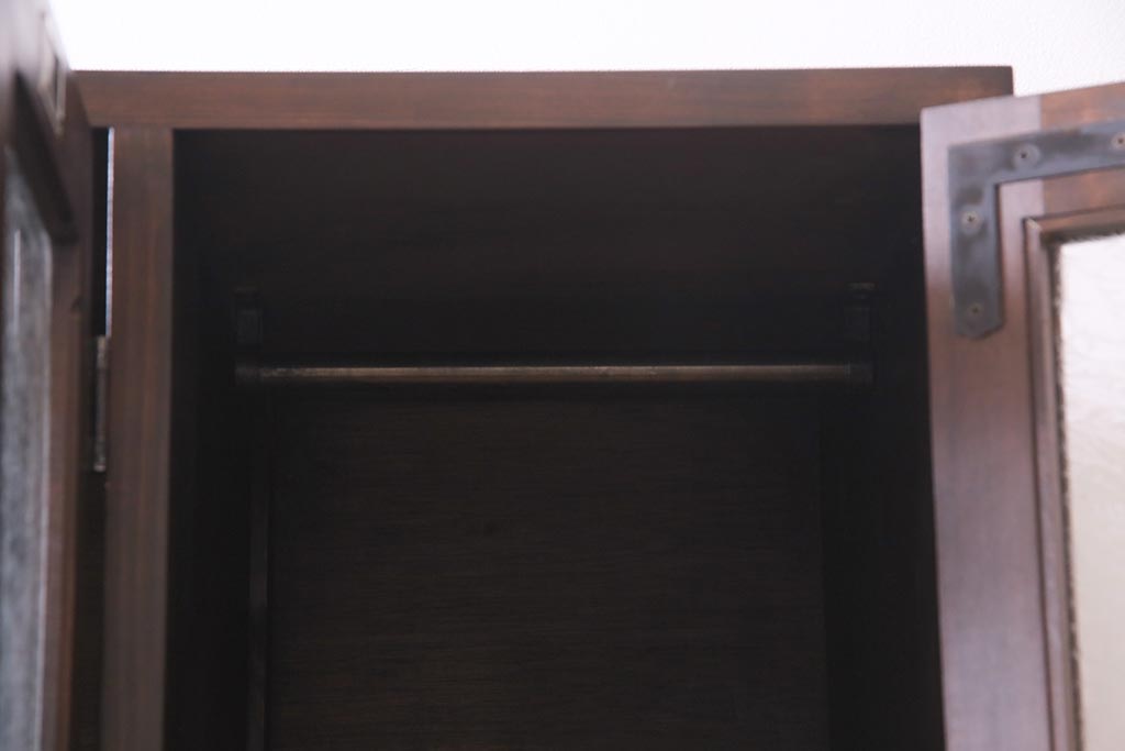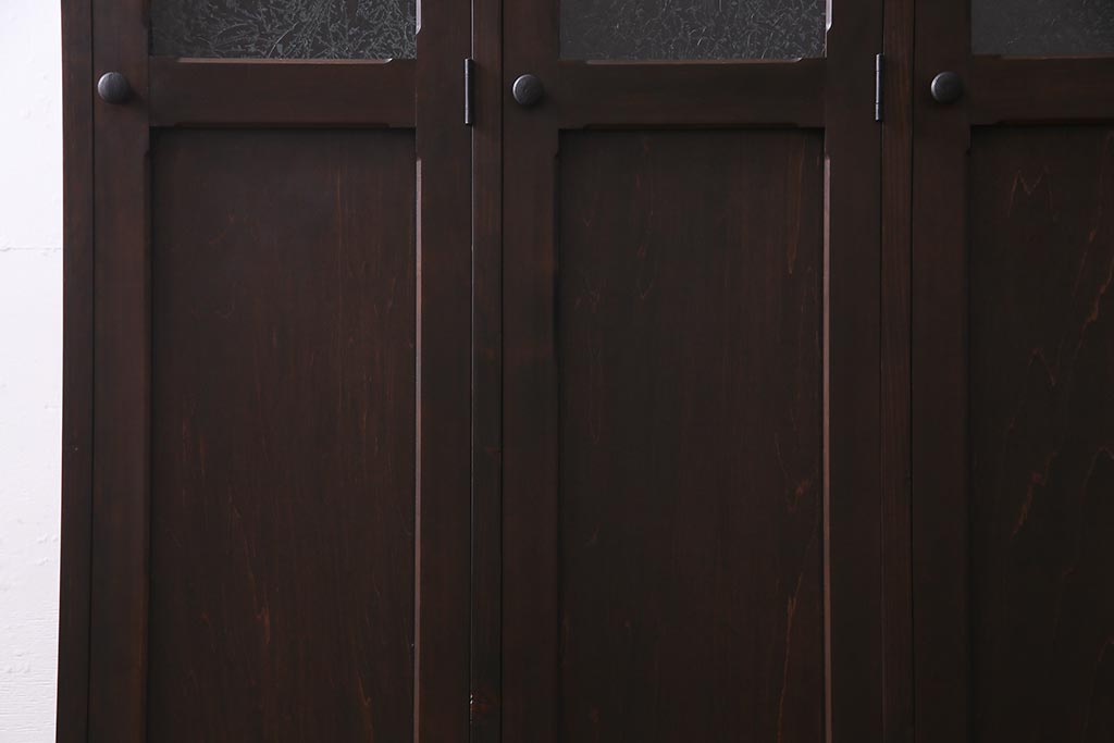 ラフジュ工房オリジナル ヒノキ無垢材・ヒバ材 結霜ガラス入り レトロな佇まいが魅力的な3人用ロッカー(ワードローブ)(R-037784)