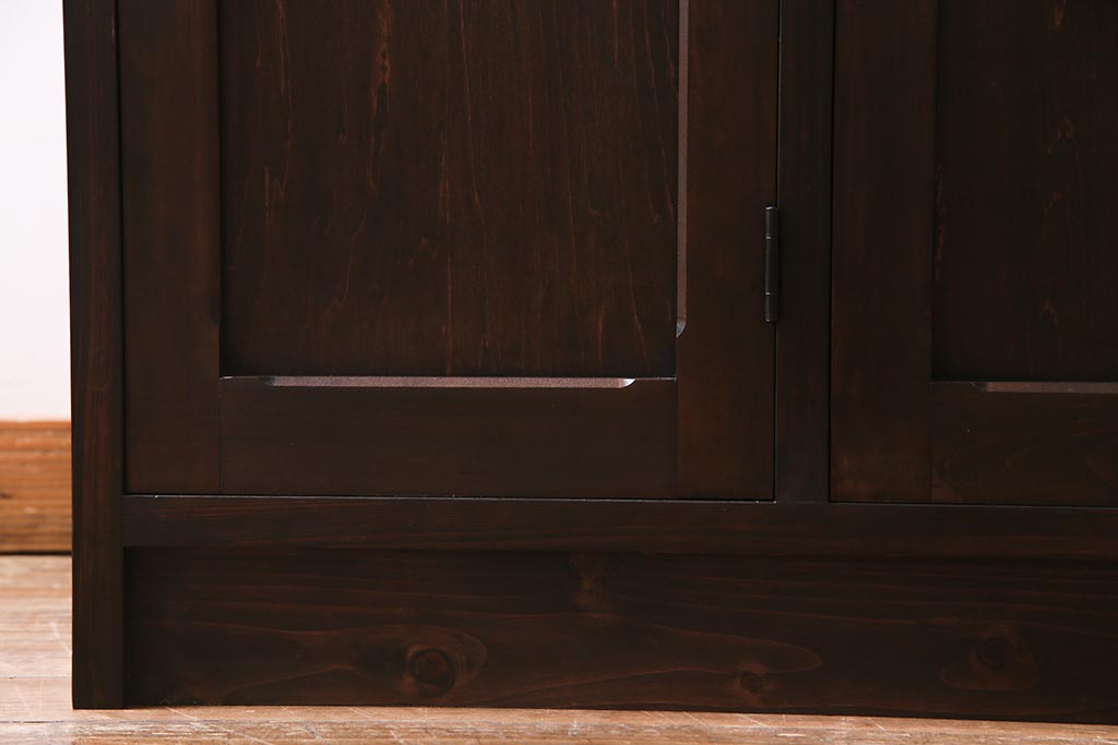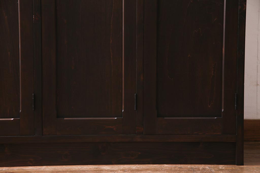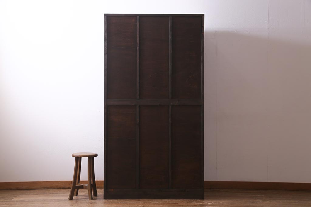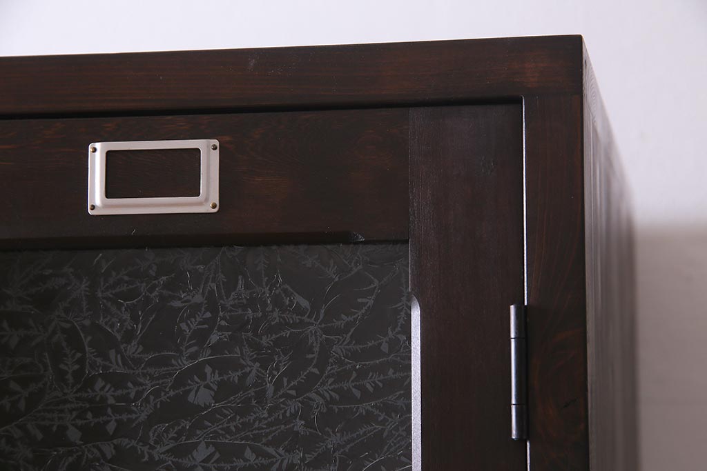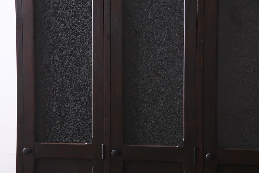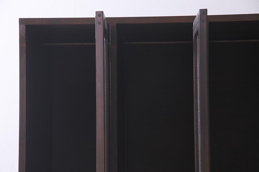 ラフジュ工房オリジナル ヒノキ無垢材・ヒバ材 結霜ガラス入り レトロな佇まいが魅力的な3人用ロッカー(ワードローブ)(R-037784)