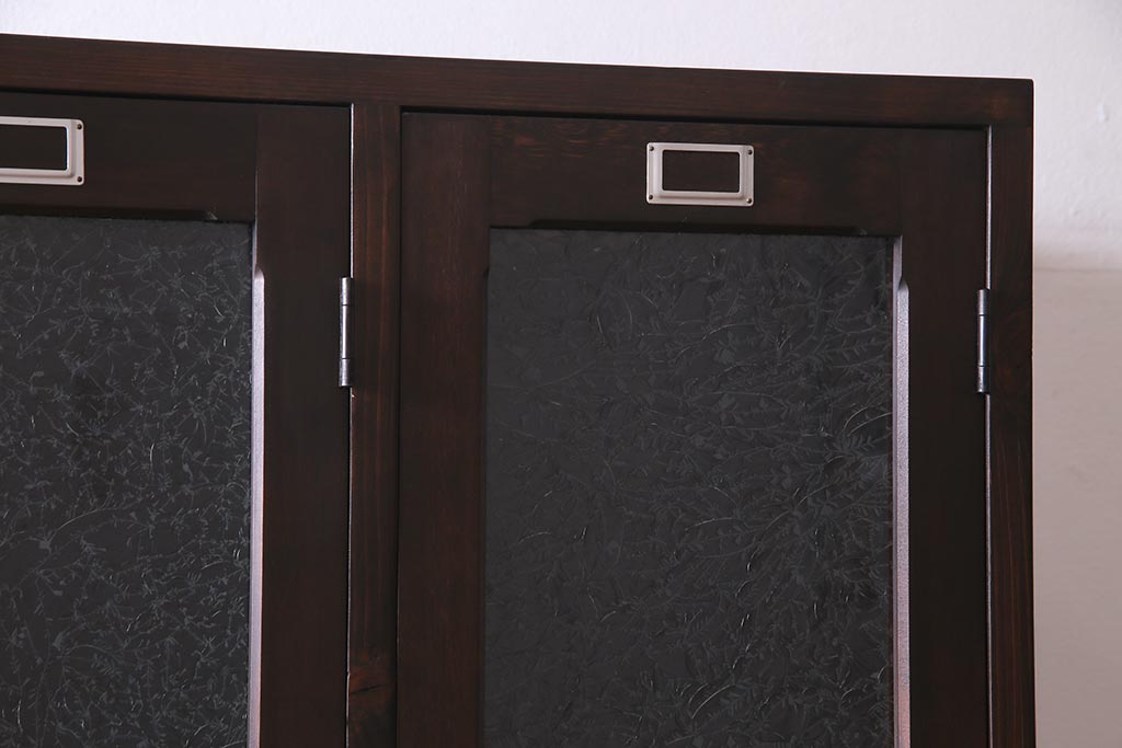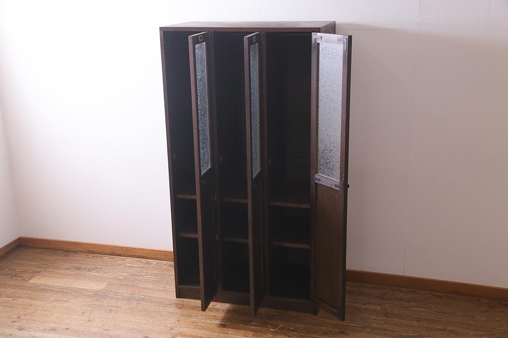 ラフジュ工房オリジナル ヒノキ無垢材・ヒバ材 結霜ガラス入り レトロな佇まいが魅力的な3人用ロッカー(収納棚、戸棚)(R-037784)です。