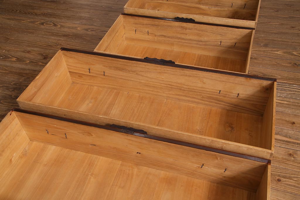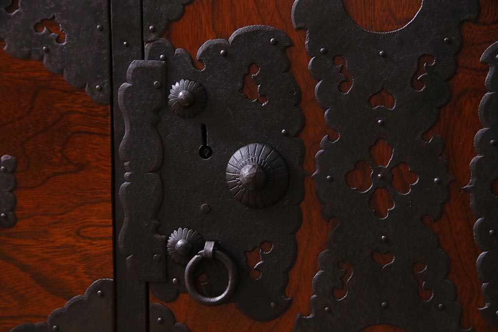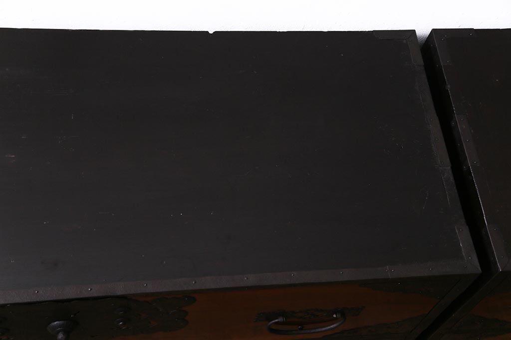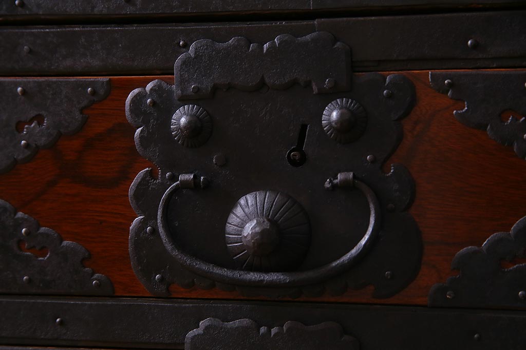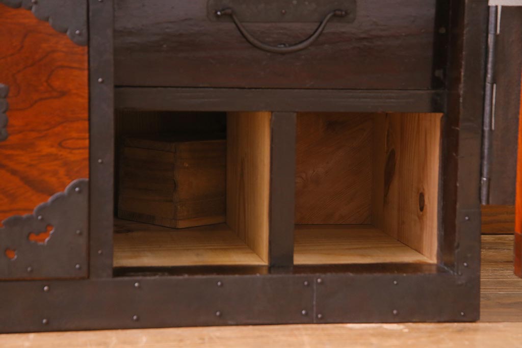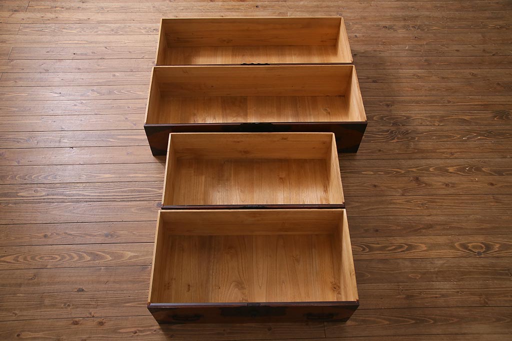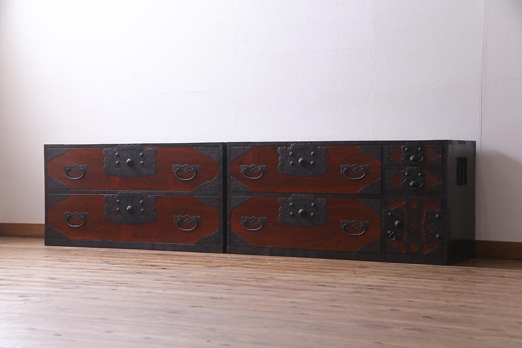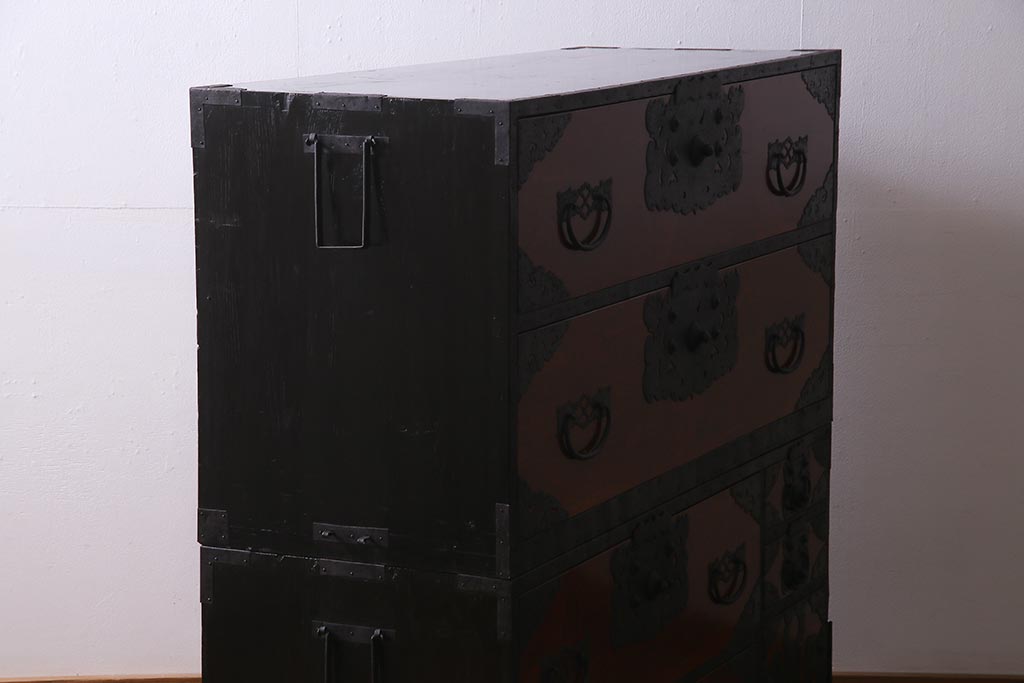 ラフジュ工房> 和箪笥 > アンティーク家具 美品! 前面ケヤキ材・中桐材 かくし付き 重ね佐渡小木箪笥(時代箪笥、衣装箪笥、和タンス、引き出し、桐箪笥、桐たんす)(R-037752)