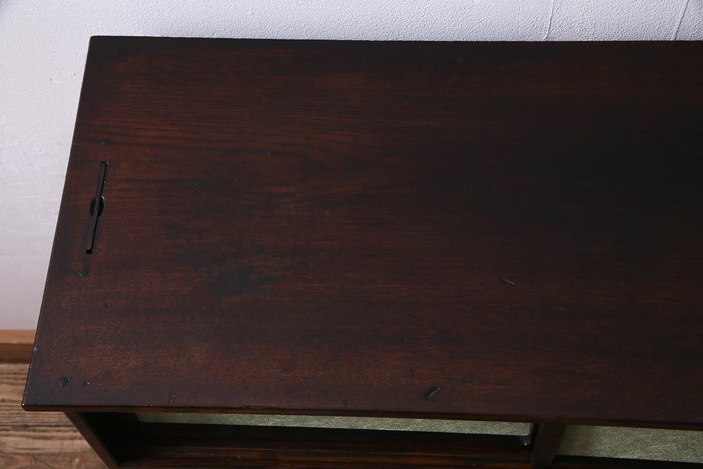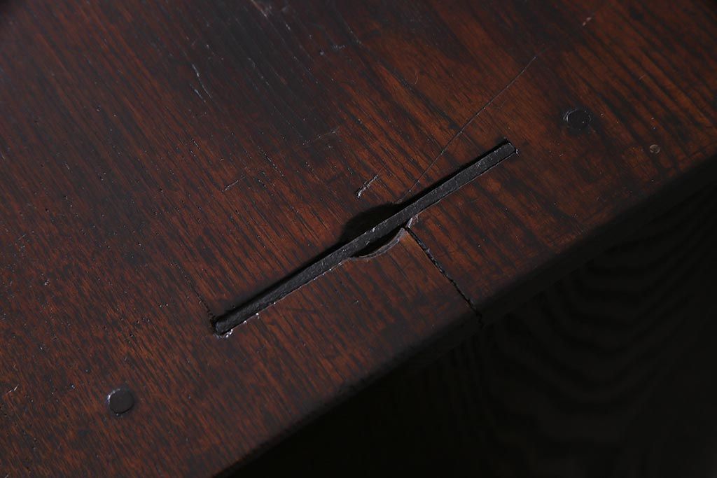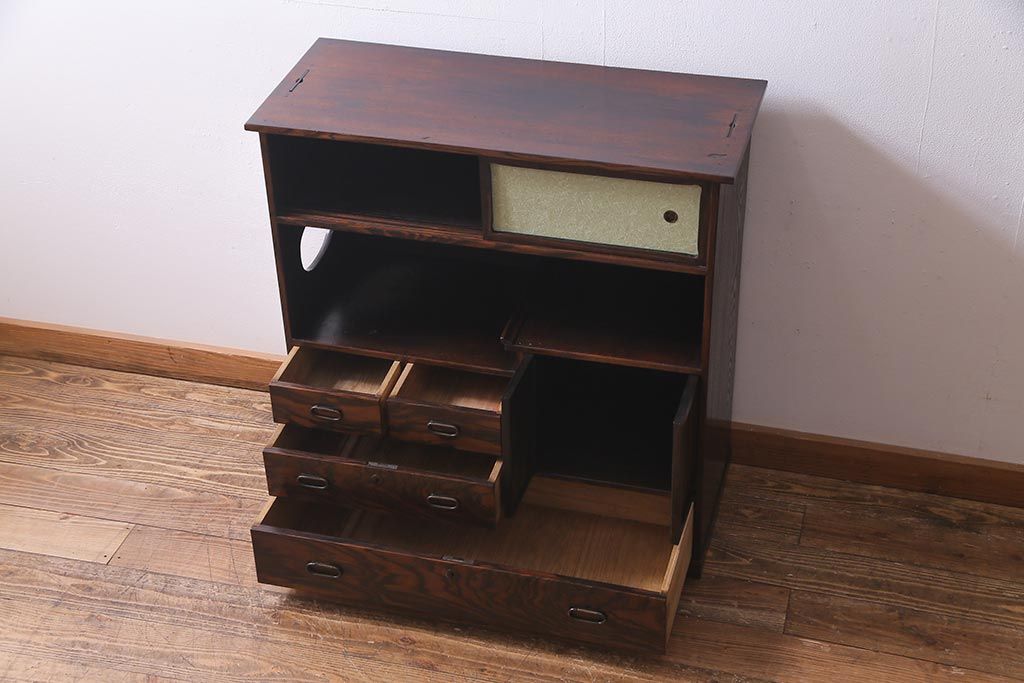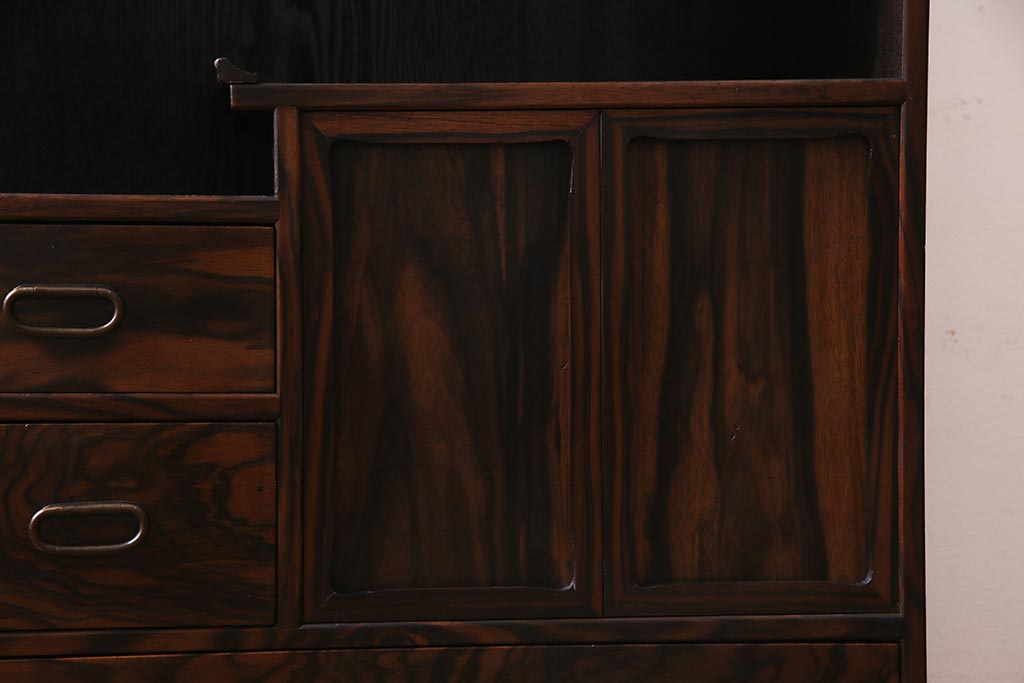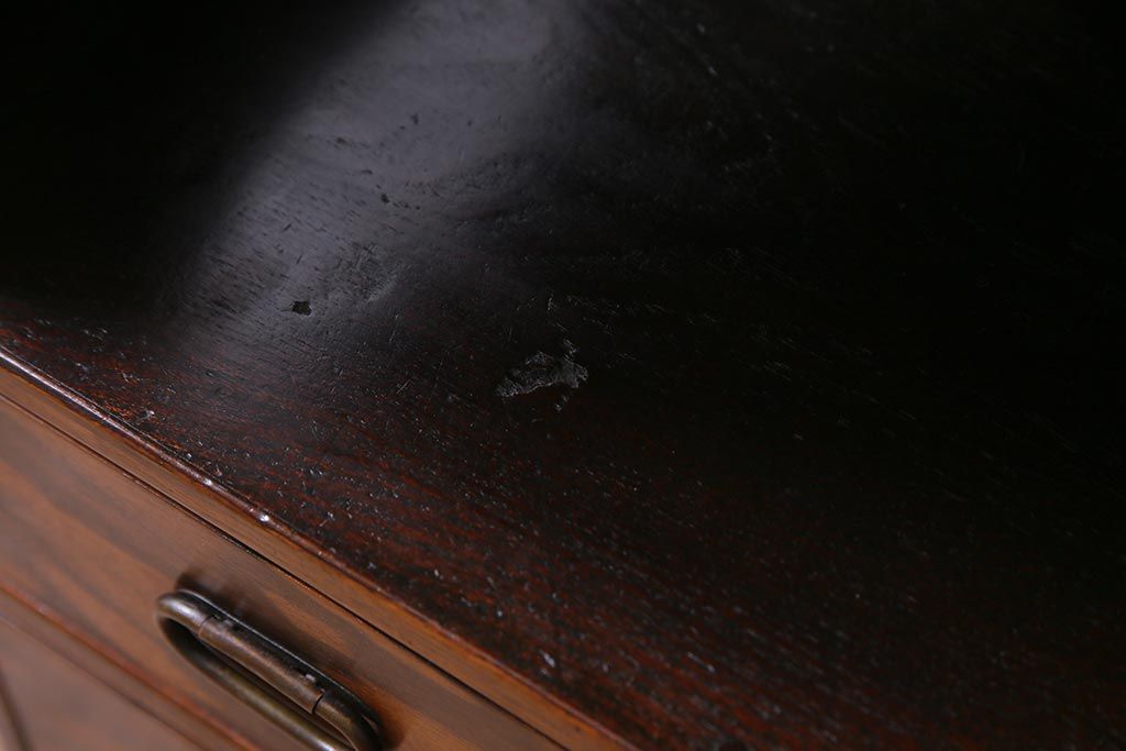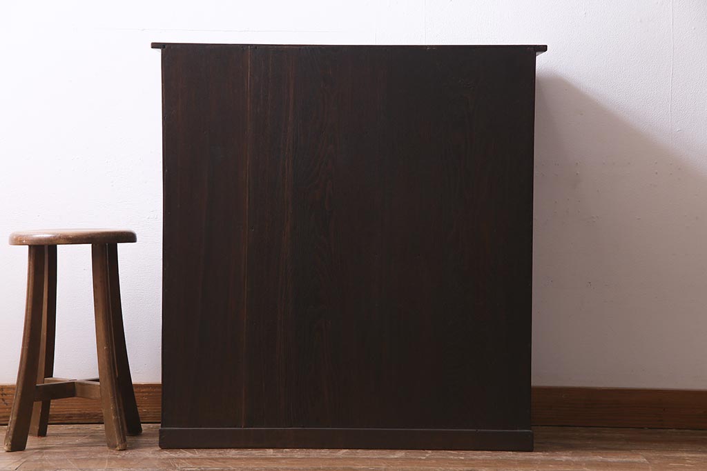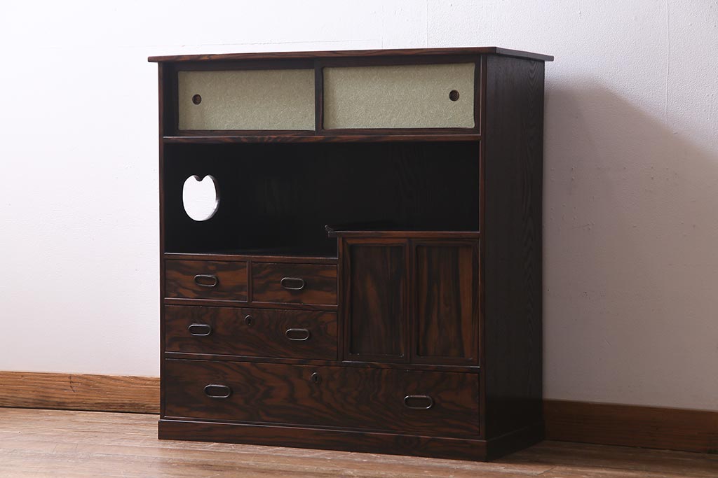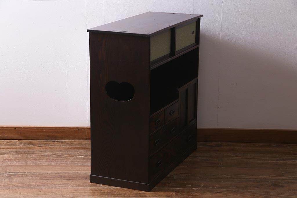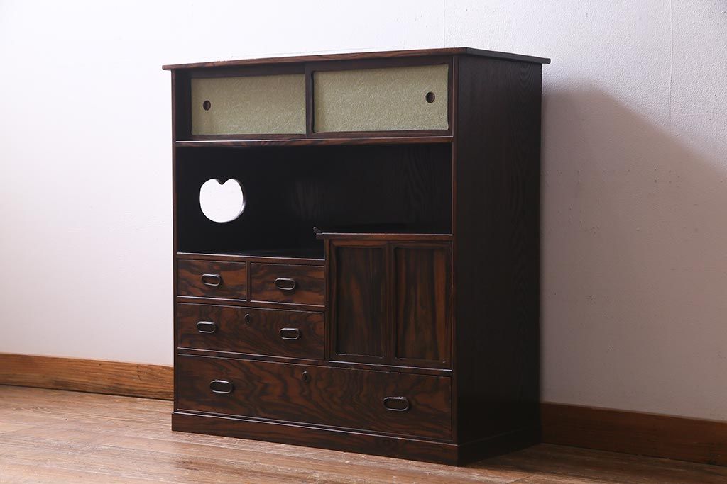 和箪笥 > アンティーク家具 大正昭和初期 縞黒檀・桐材・栓材 銅金具 上手物!上質な作りの茶箪笥(茶棚、収納棚、違い棚、桐箪笥、桐たんす)(R-037806)