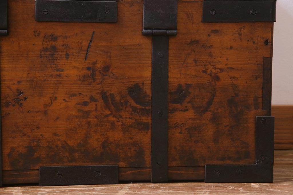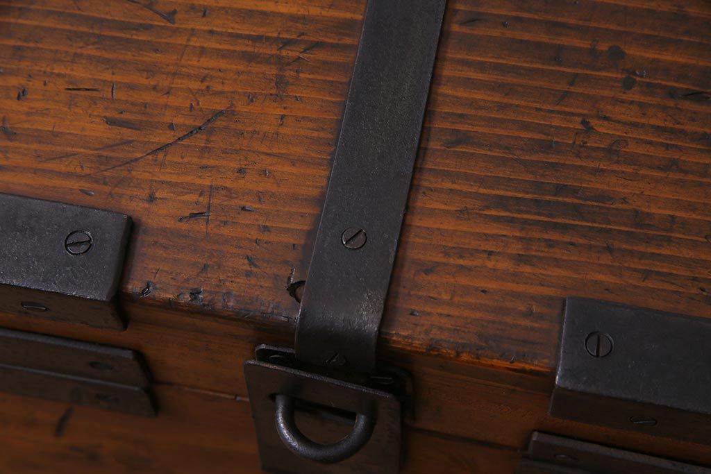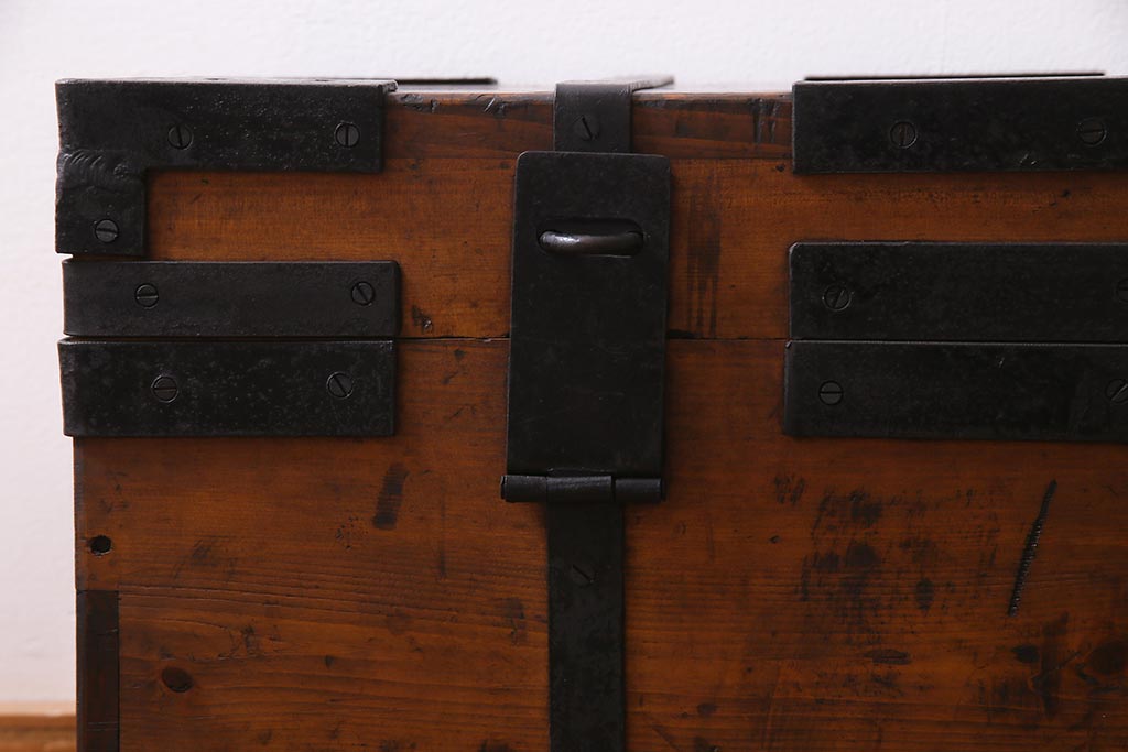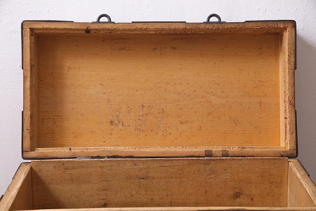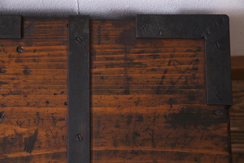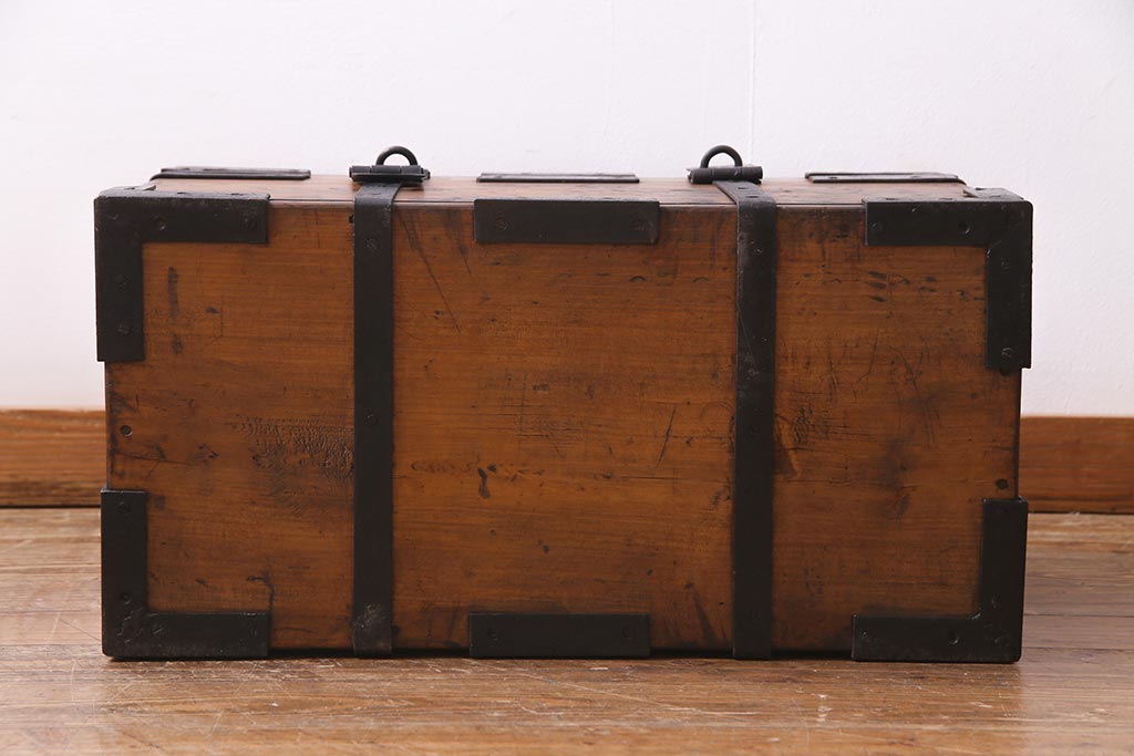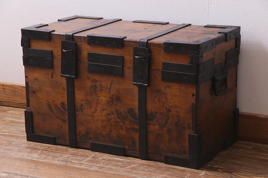 店舗什器 > 和製アンティーク センターテーブルにも!重厚さ漂う木製トランク(長持、木箱、収納箱)(R-037858)