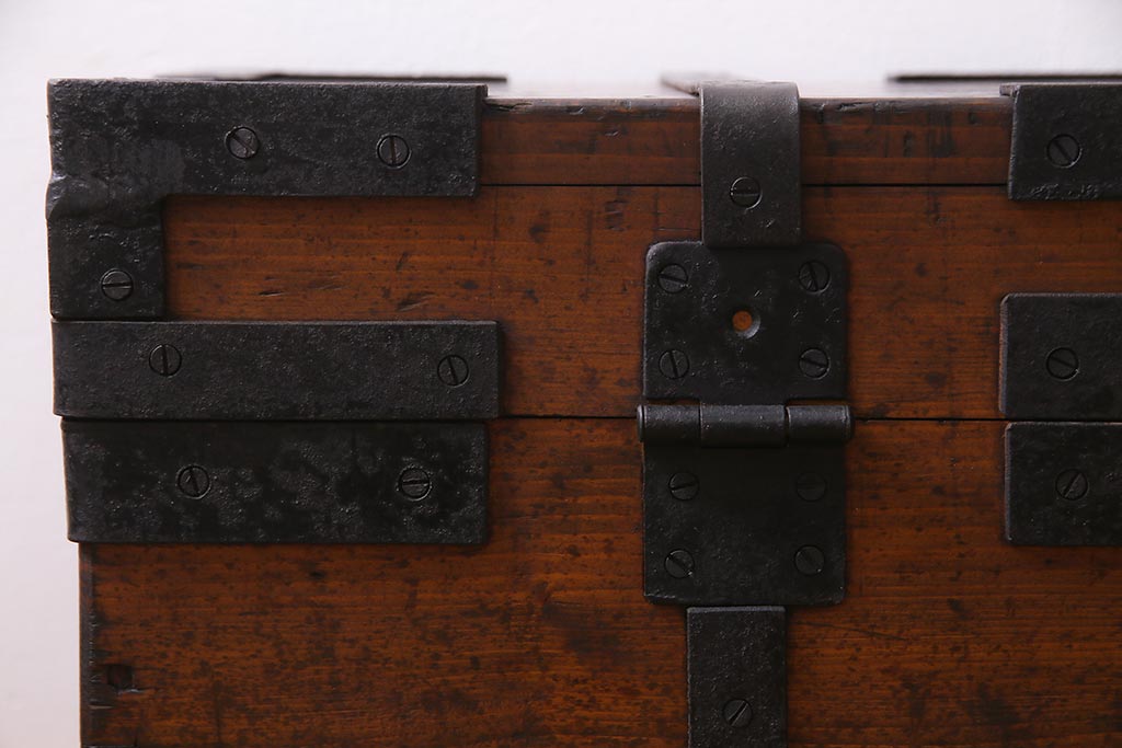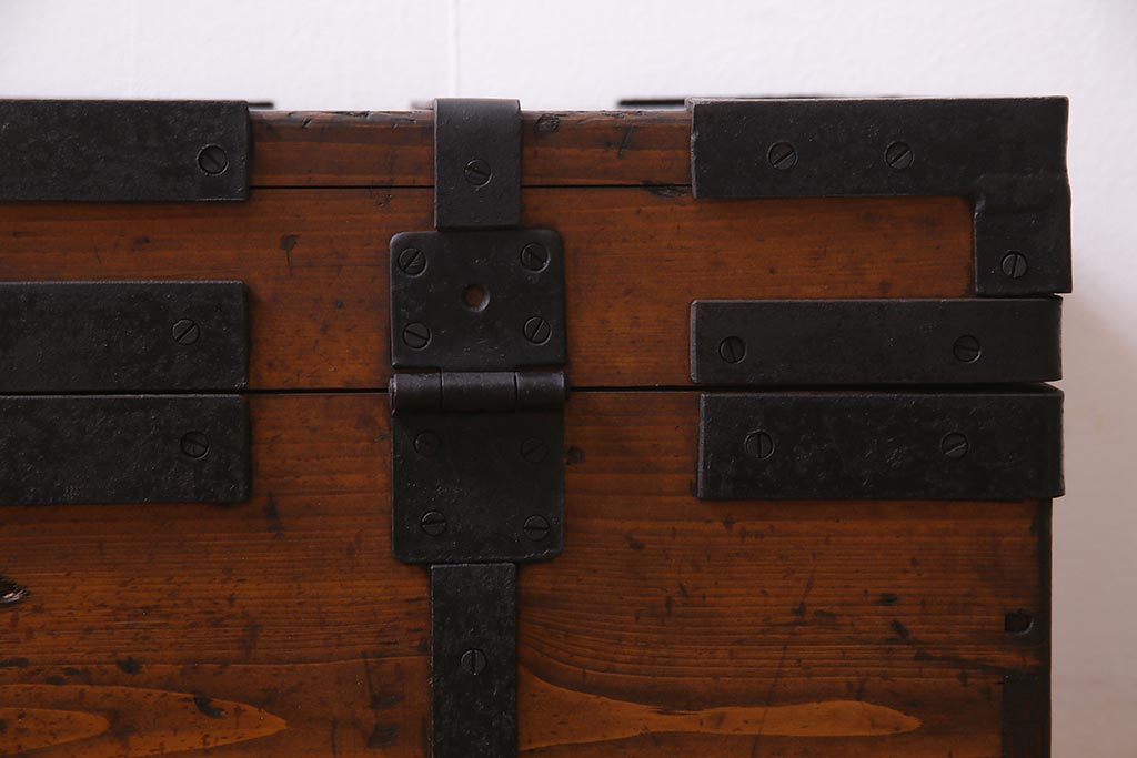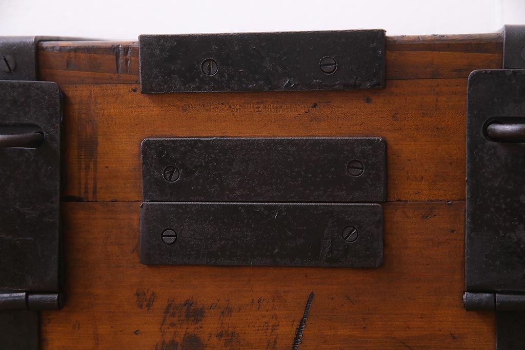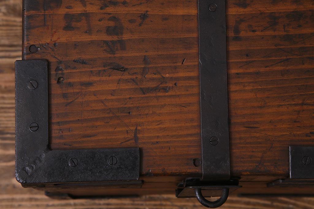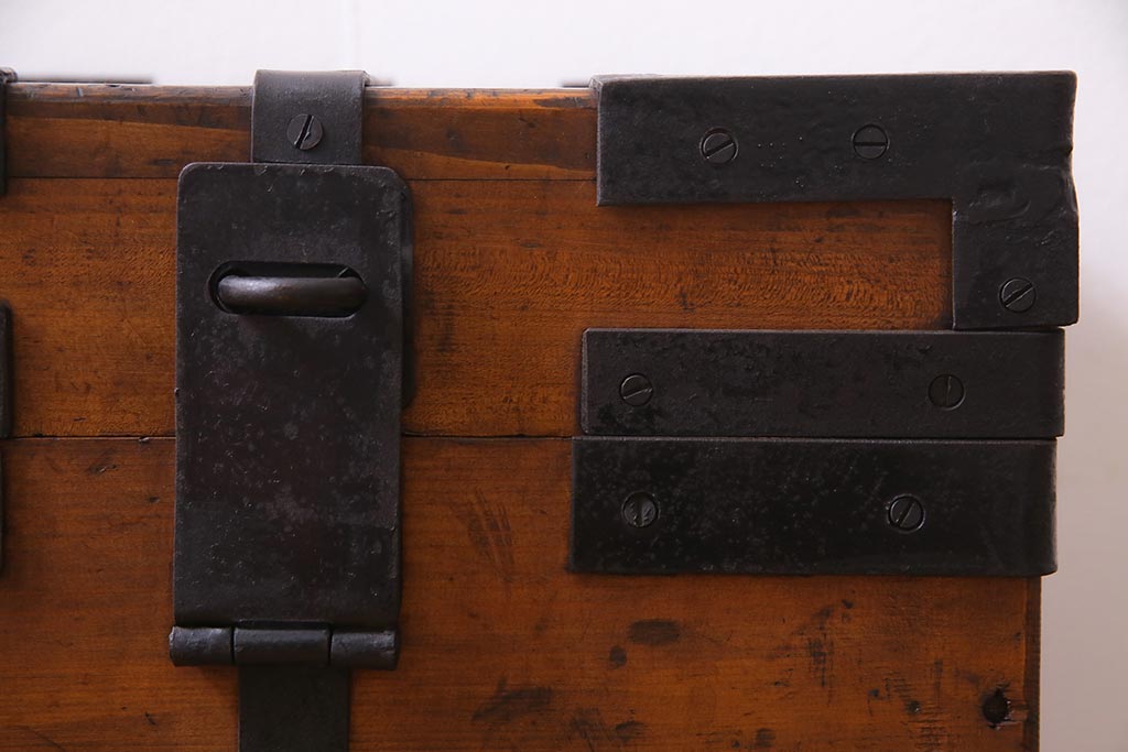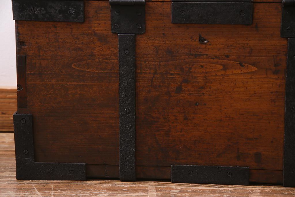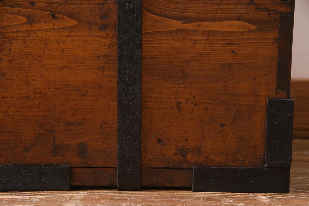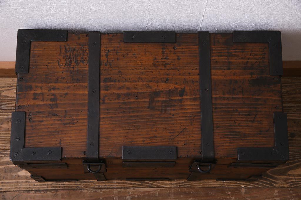 店舗什器 > 和製アンティーク センターテーブルにも!重厚さ漂う木製トランク(長持、木箱、収納箱)(R-037858)
