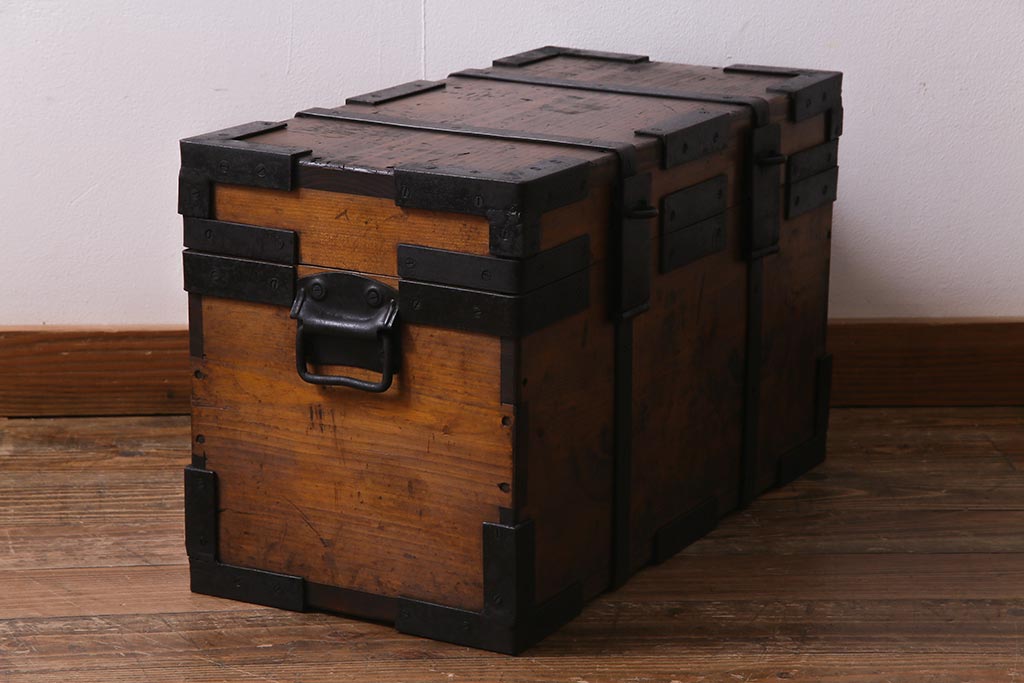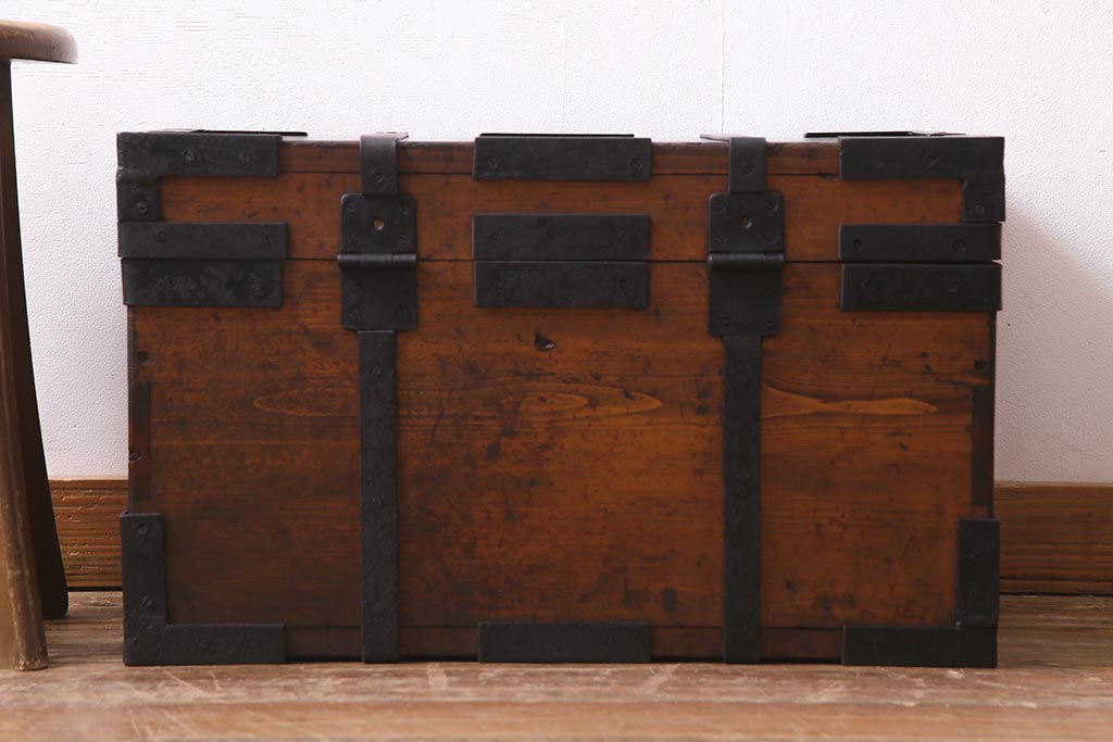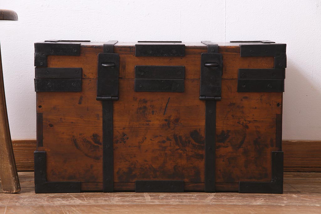 アンティーク雑貨 和製アンティーク センターテーブルにも!重厚さ漂う木製トランク(長持、木箱、収納箱)(R-037858)です。