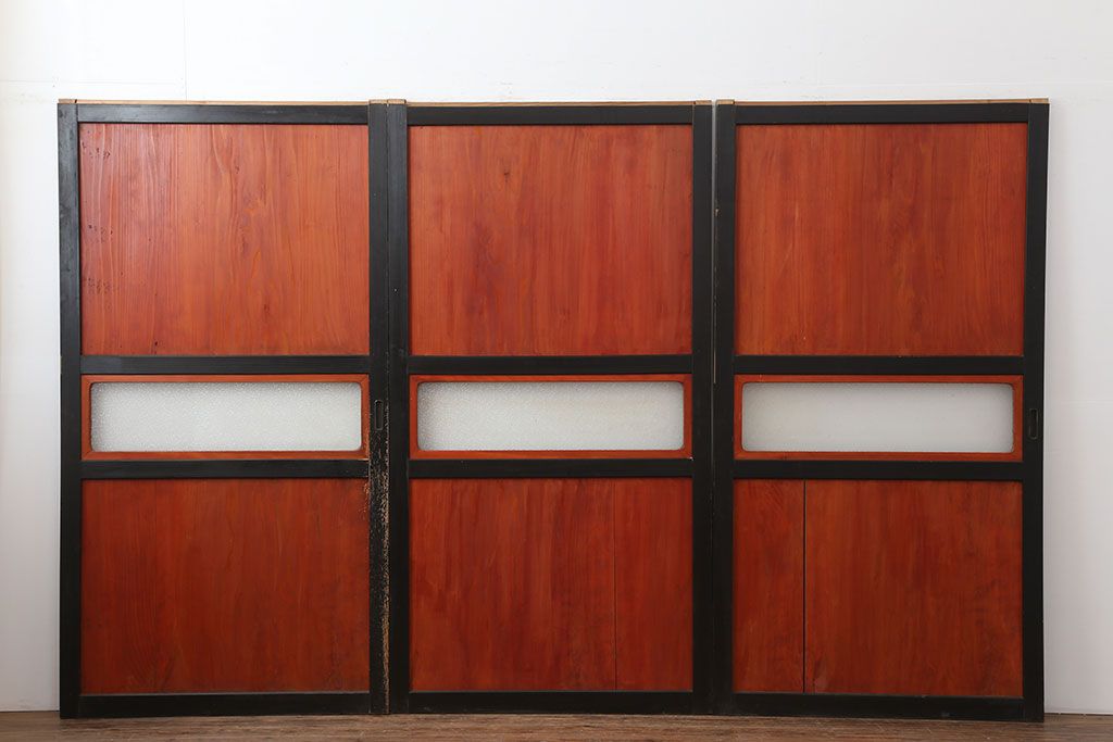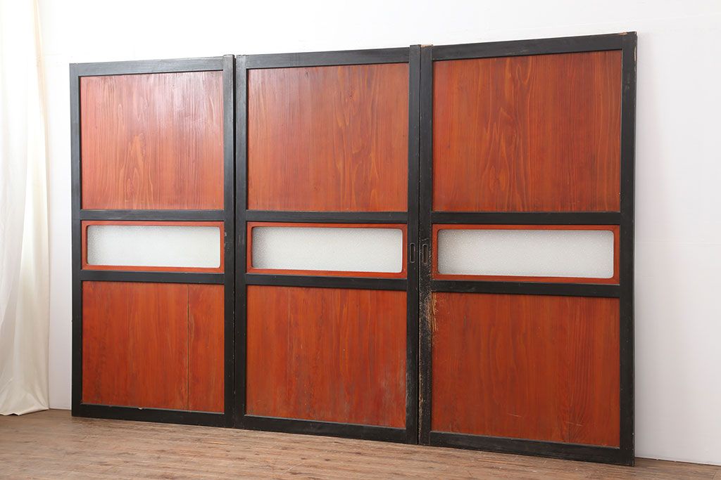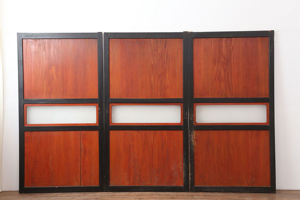 ラフジュ工房> ドア・建具> 2枚・3枚セット > アンティーク建具 大正昭和初期 レトロな佇まいが魅力的なガラス帯戸3枚セット(建具、板戸、引き戸)(R-036794)