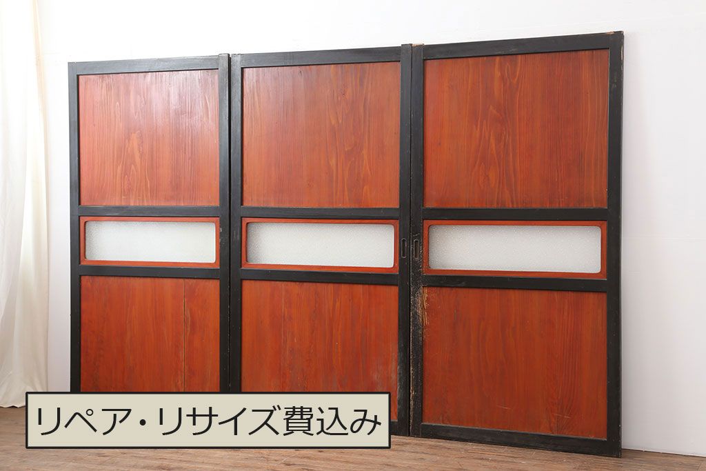アンティーク建具 大正昭和初期 レトロな佇まいが魅力的なガラス帯戸3枚セット(建具、板戸、引き戸)(R-036794)