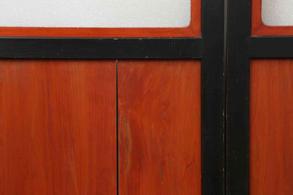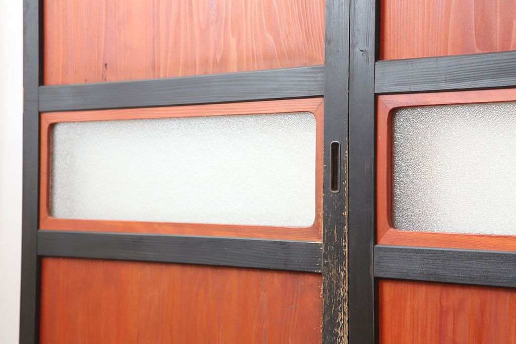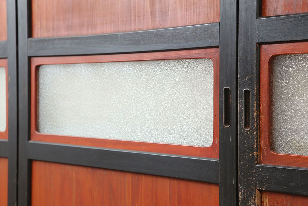 ラフジュ工房> ドア・建具> 引き戸 > アンティーク建具 大正昭和初期 レトロな佇まいが魅力的なガラス帯戸3枚セット(建具、板戸、引き戸)(R-036794)