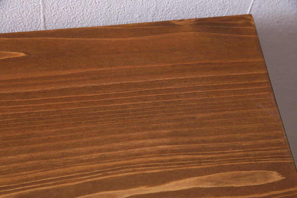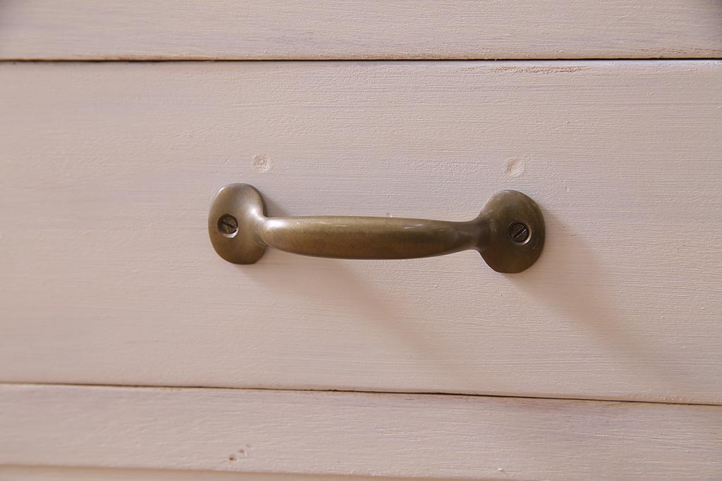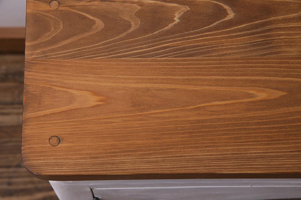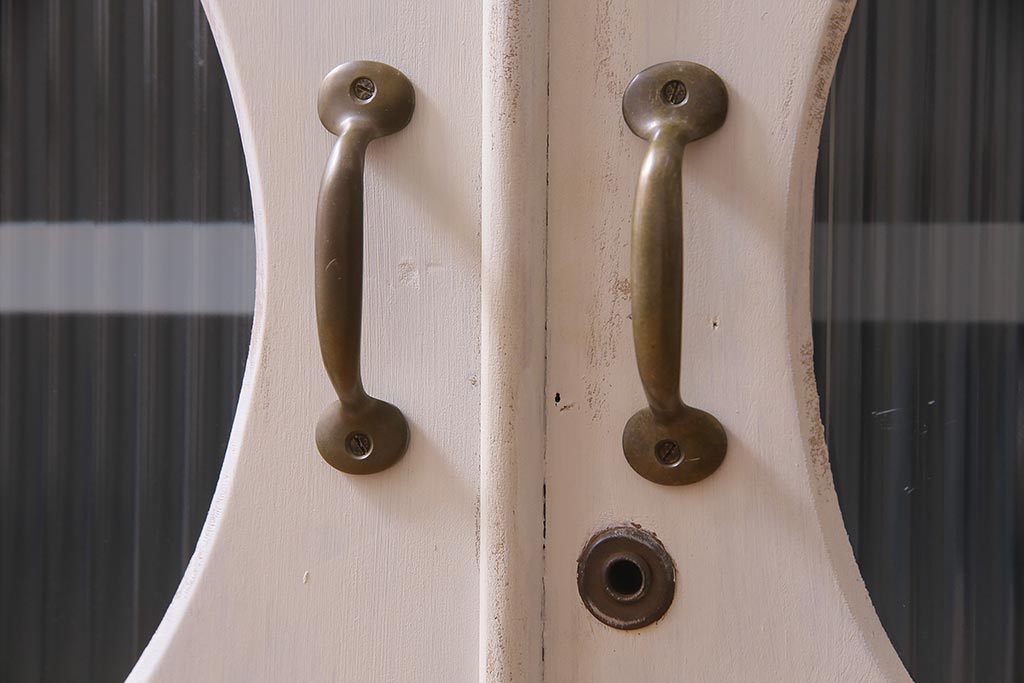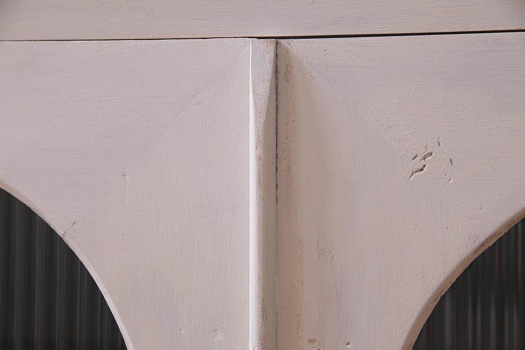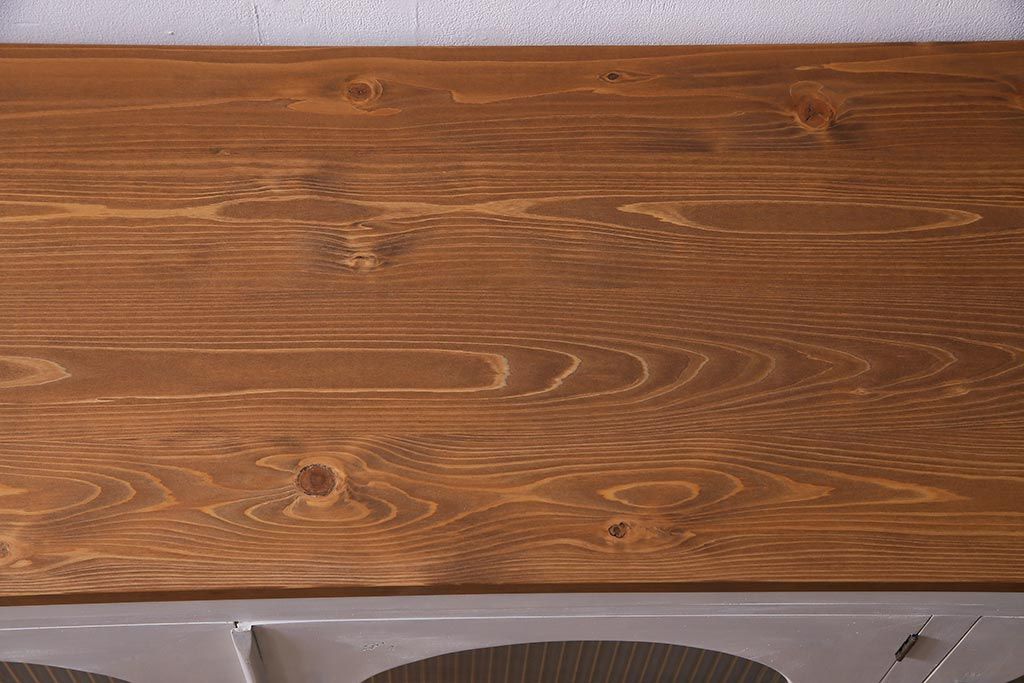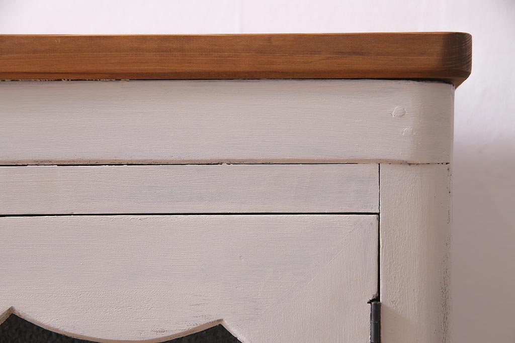 アンティーク家具 リメイク ダイヤガラス・モールガラス 丸窓 アンティークペイントがおしゃれな鉄脚付きテレビ台(収納棚、キャビネット、リビングボード)(R-037869)