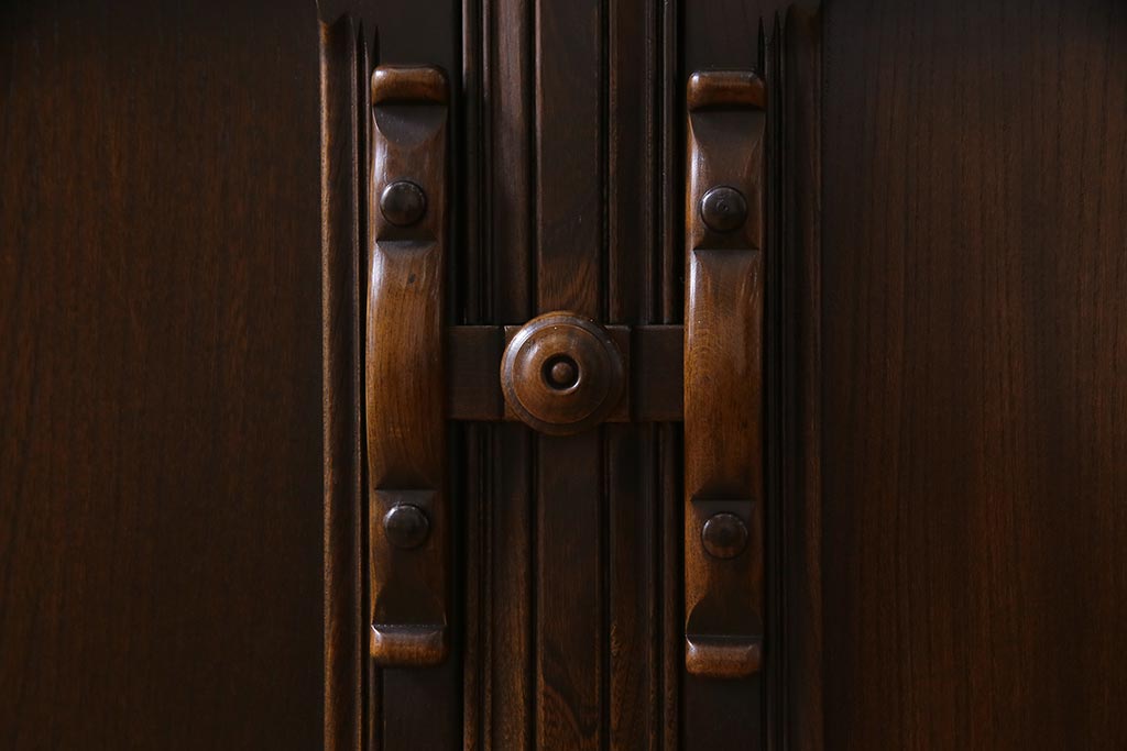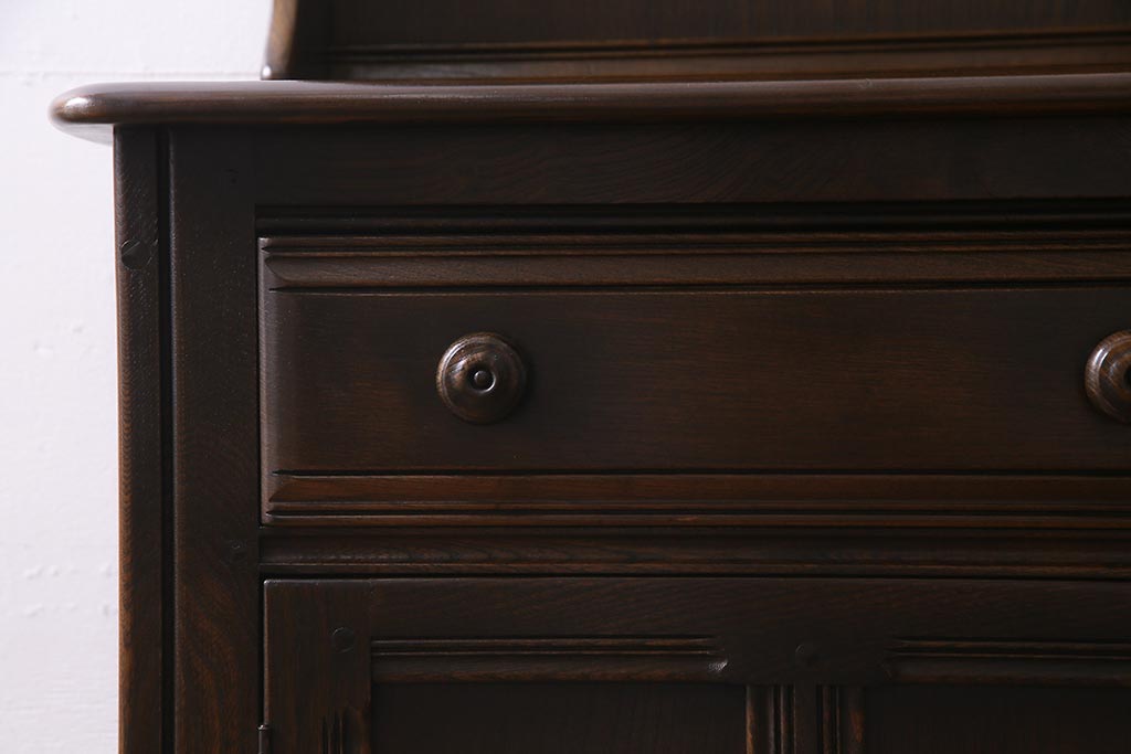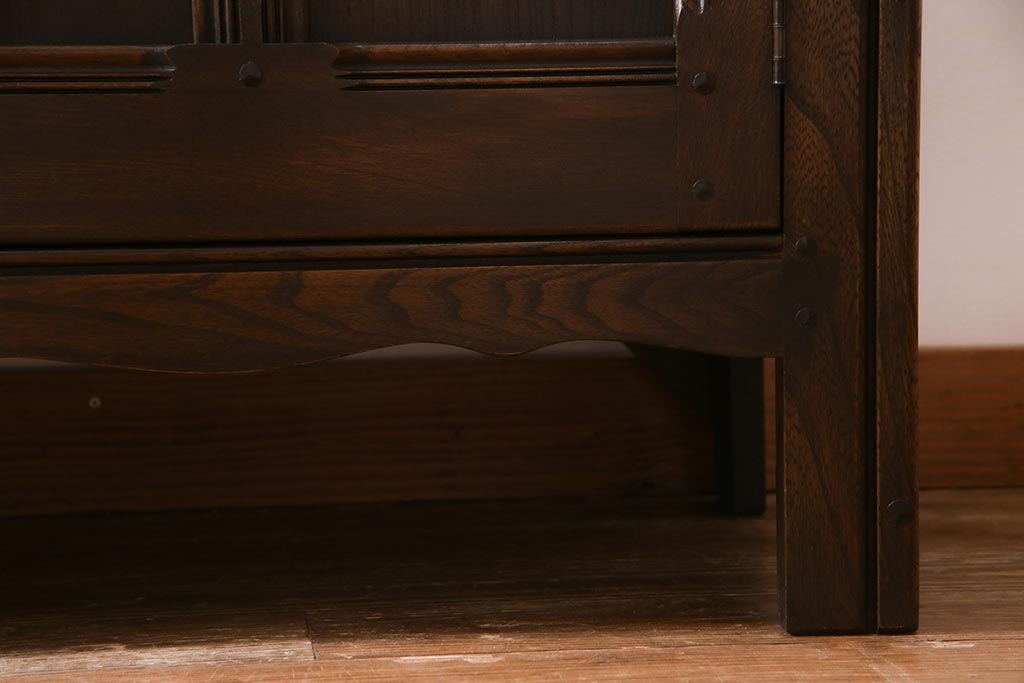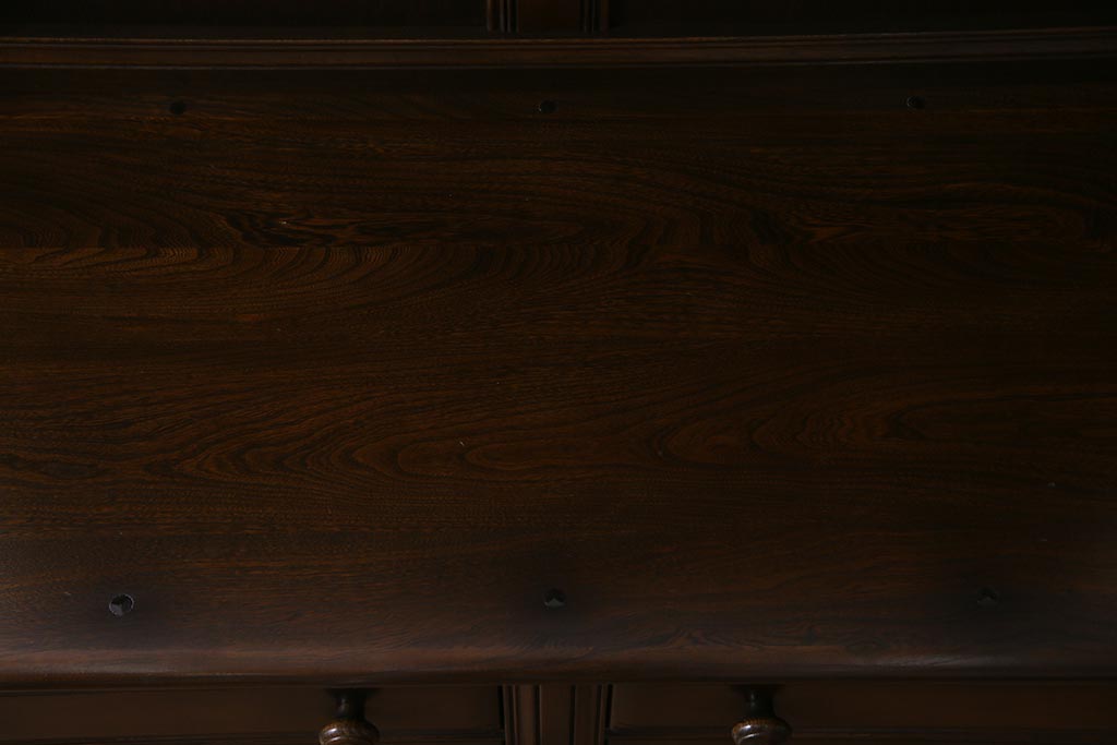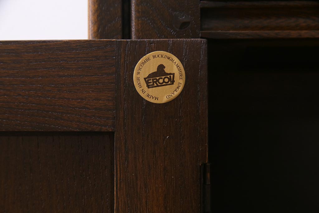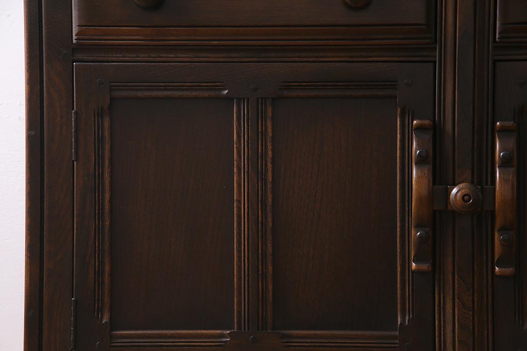 ラフジュ工房> キャビネット・戸棚> 食器棚・カップボード > ヴィンテージ家具 イギリスビンテージ ERCOL(アーコール) Old Colonial(オールドコロニアル) ニレ材 気品と風格が漂うカップボード(食器棚、飾り棚、オープンラック、収納棚)(R-037854)