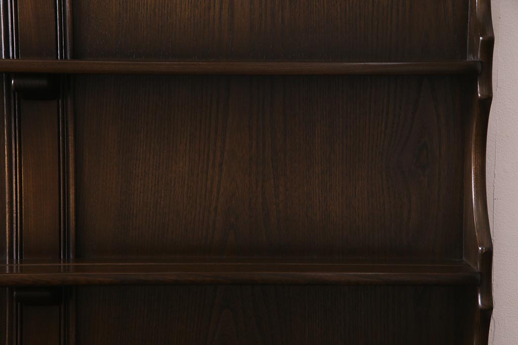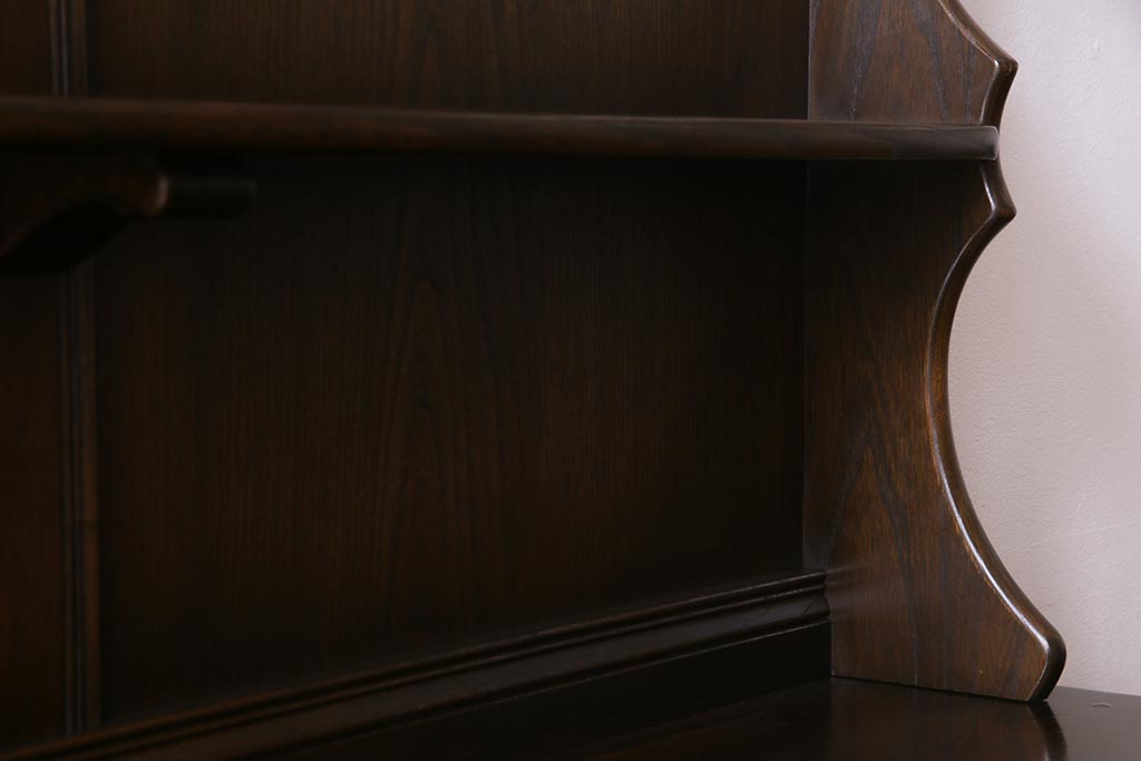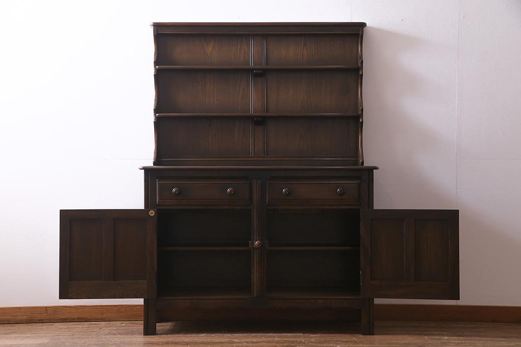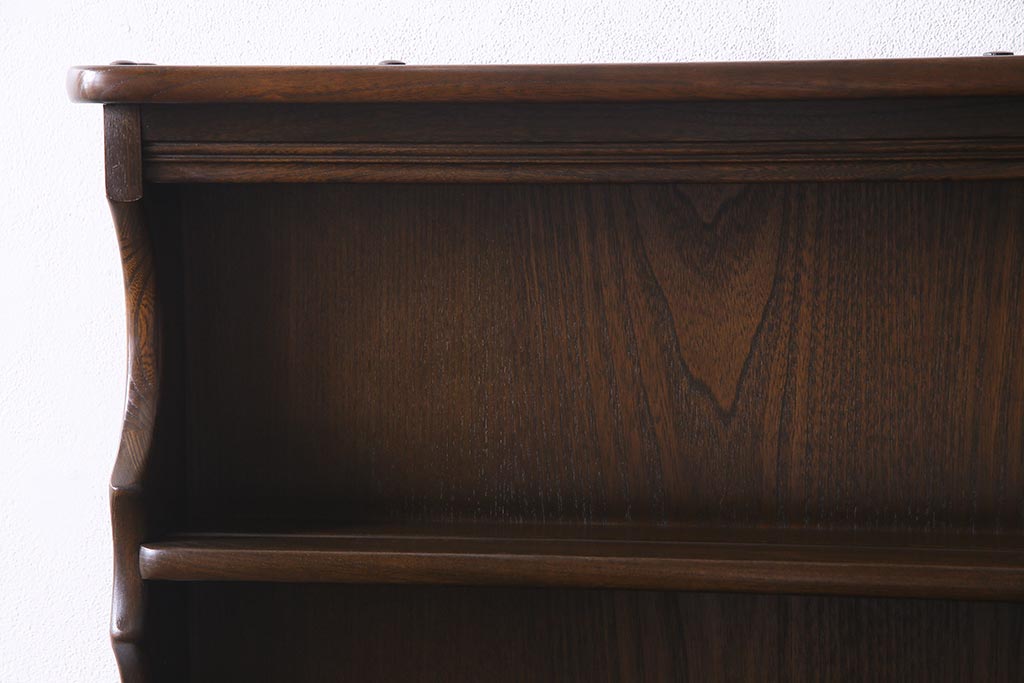ヴィンテージ家具 イギリスビンテージ ERCOL(アーコール) Old Colonial(オールドコロニアル) ニレ材 気品と風格が漂うカップボード(食器棚、飾り棚、オープンラック、収納棚)(R-037854)