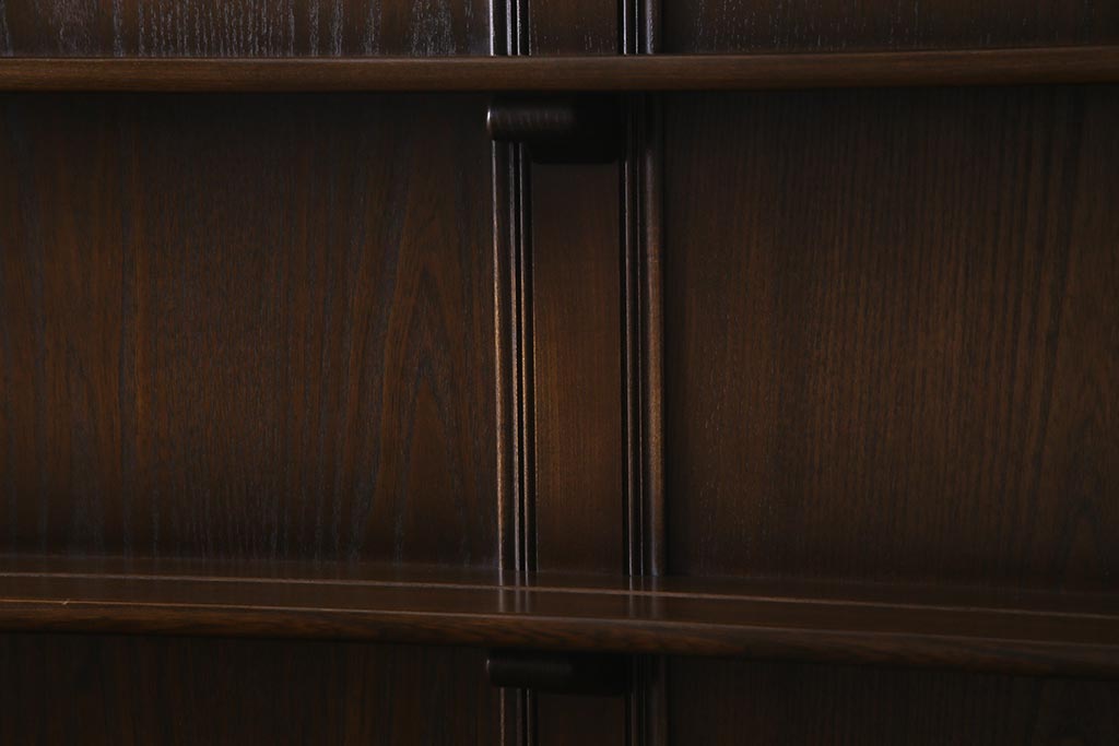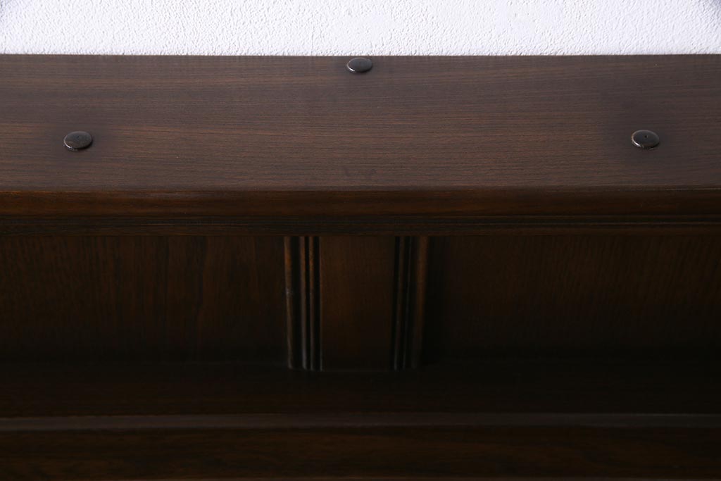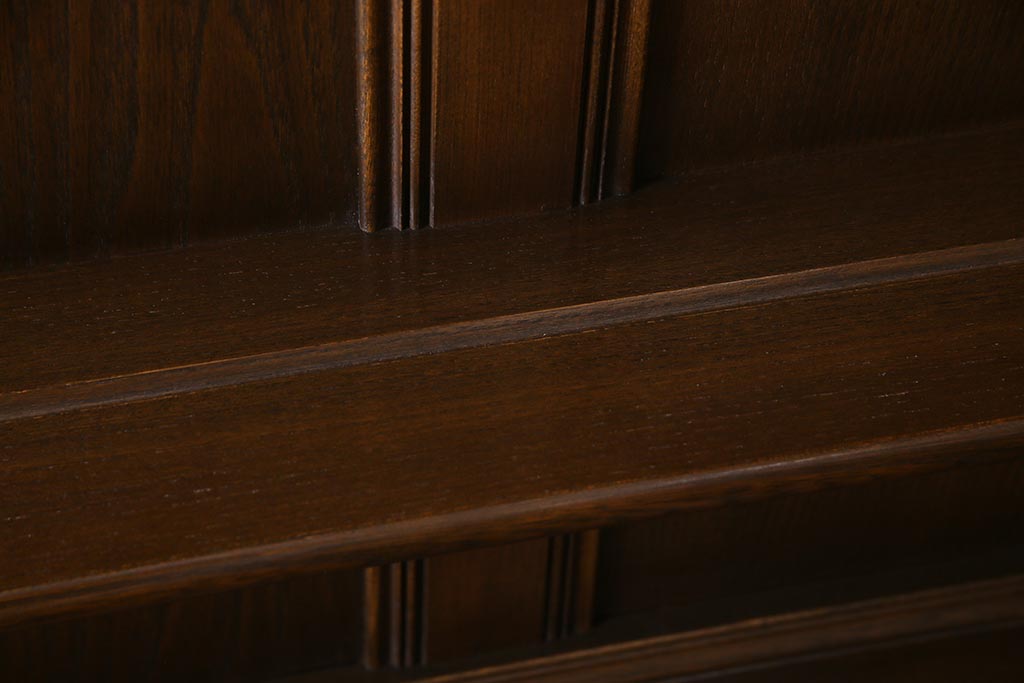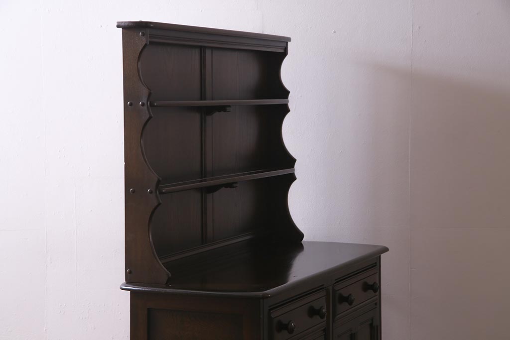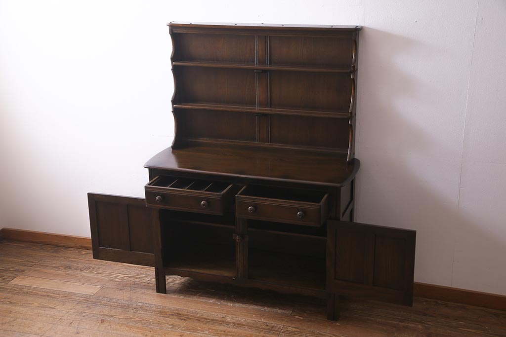 ヴィンテージ家具 イギリスビンテージ ERCOL(アーコール) Old Colonial(オールドコロニアル) ニレ材 気品と風格が漂うカップボード(食器棚、飾り棚、オープンラック、収納棚)(R-037854)