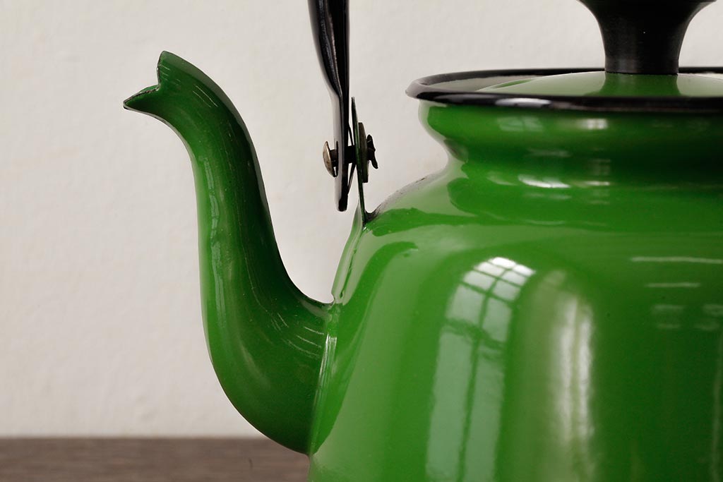 ヴィンテージ雑貨 ポーランド製 レトロなグリーンがおしゃれなホーローケトル(キッチン雑貨、やかん、ビンテージ)(R-037821)