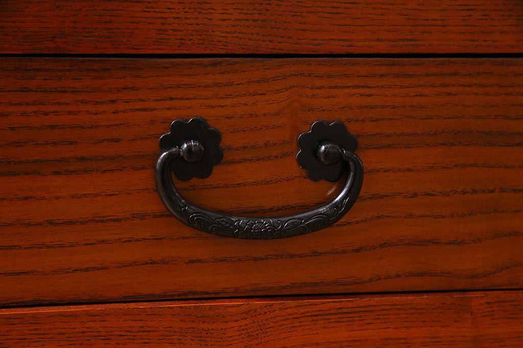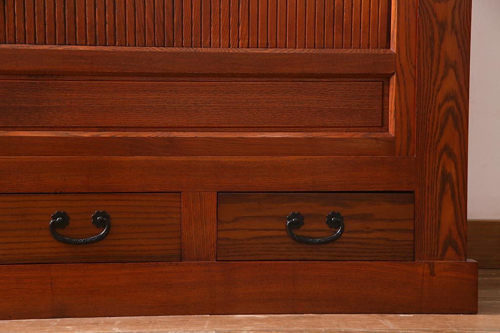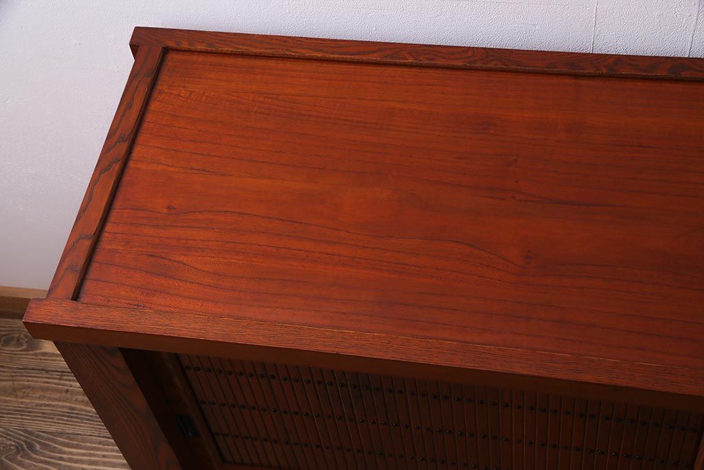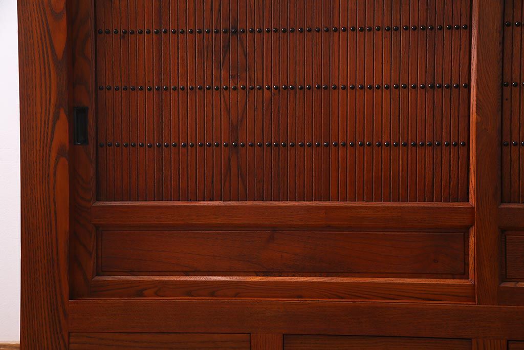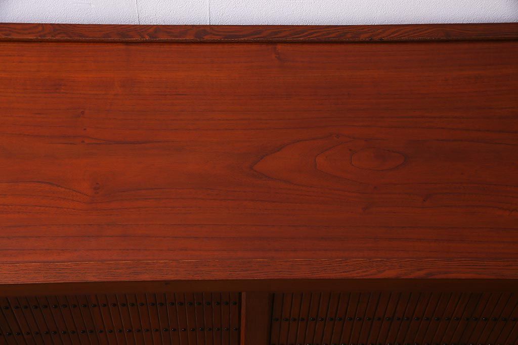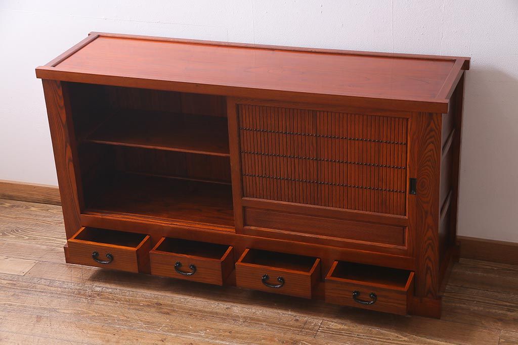 和箪笥 > 新古品 民芸家具 ニレ無垢材 5尺 重厚感と上品さを醸し出す水屋箪笥(収納棚、キャビネット)(R-037855)