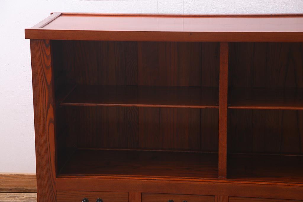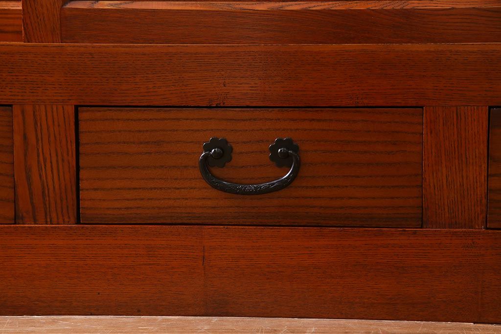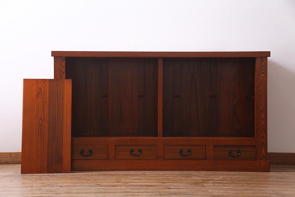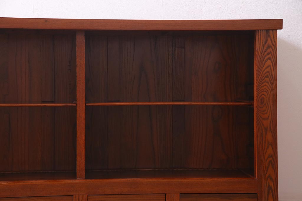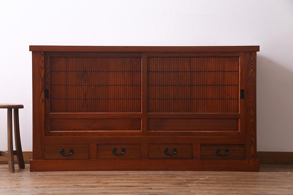 民芸家具 > 新古品 民芸家具 ニレ無垢材 5尺 重厚感と上品さを醸し出す水屋箪笥(収納棚、キャビネット)(R-037855)