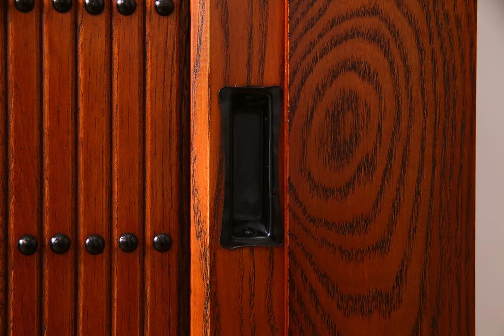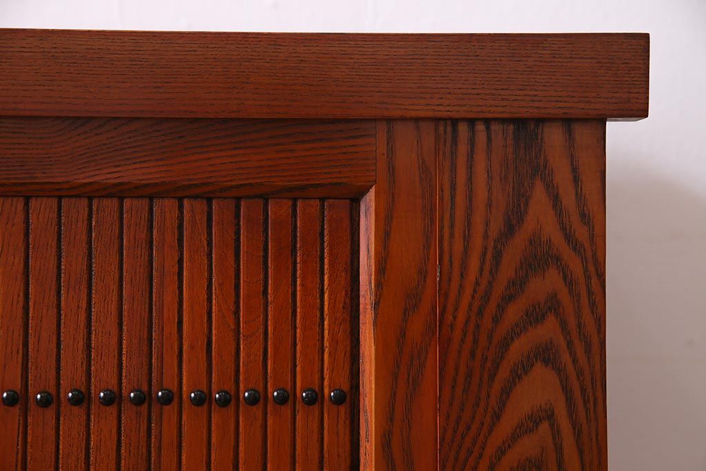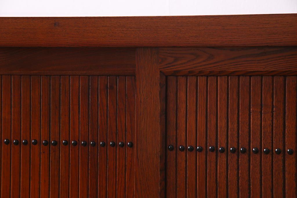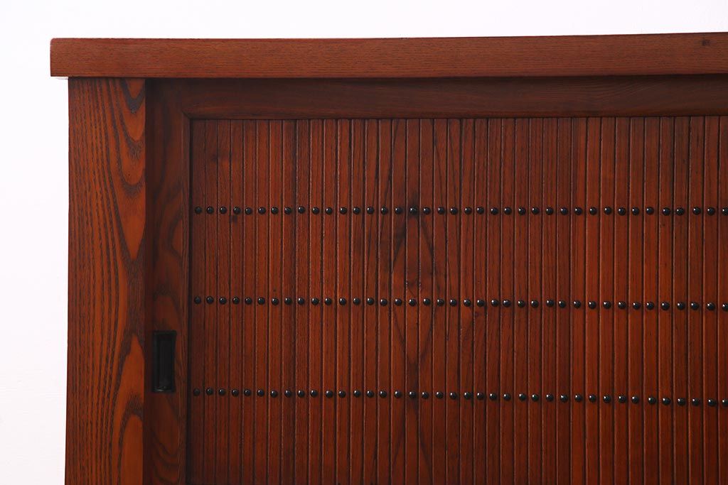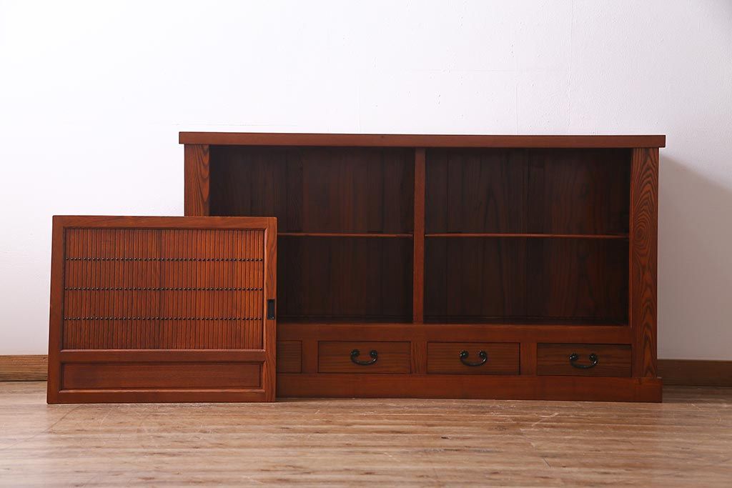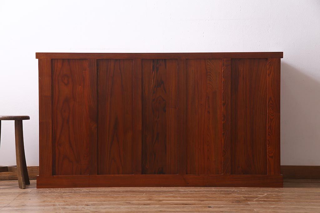 民芸家具 > 新古品 民芸家具 ニレ無垢材 5尺 重厚感と上品さを醸し出す水屋箪笥(収納棚、キャビネット)(R-037855)