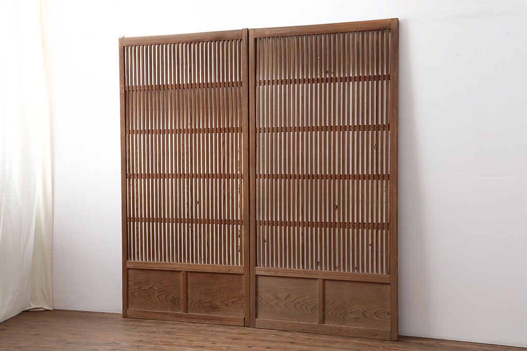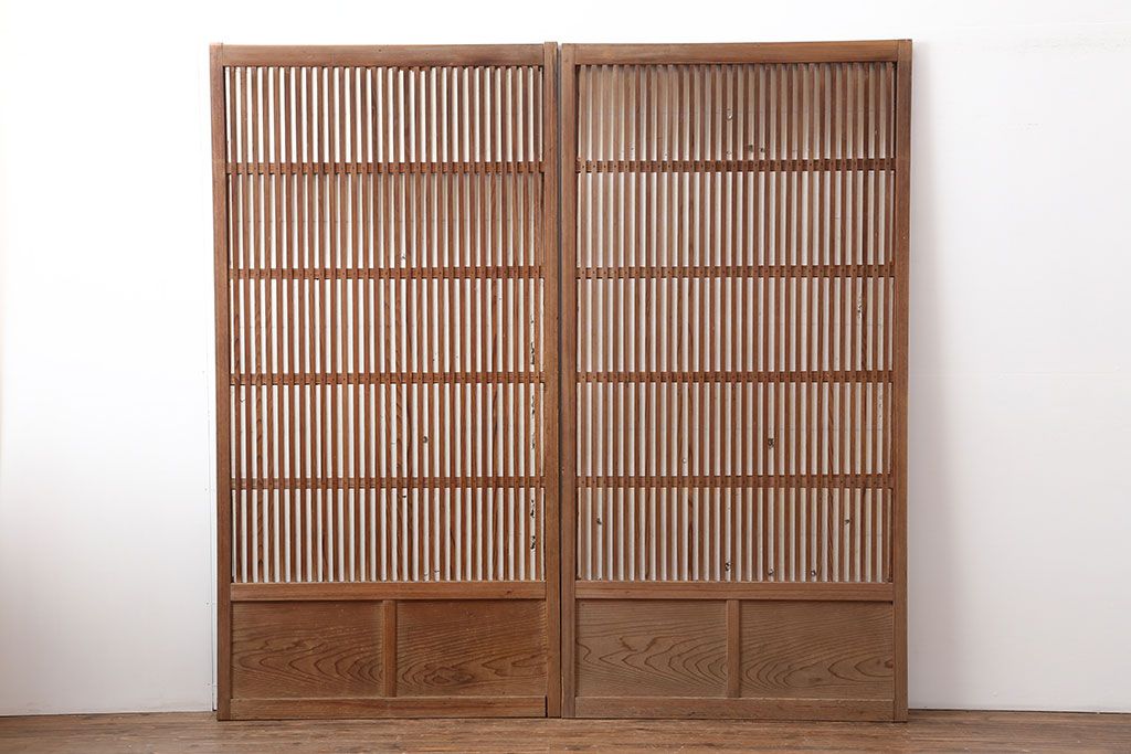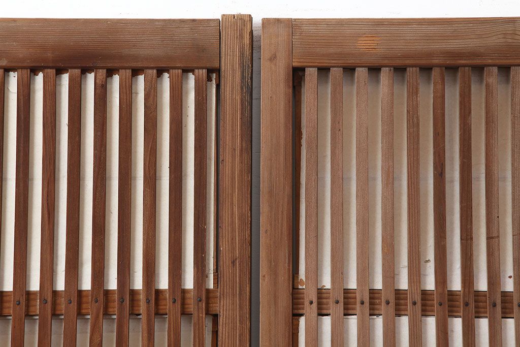 アンティーク建具 裏障子付き 木味と桟が魅力の格子戸2枚セット(引き戸、建具)(R-036754)です。