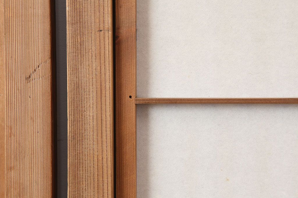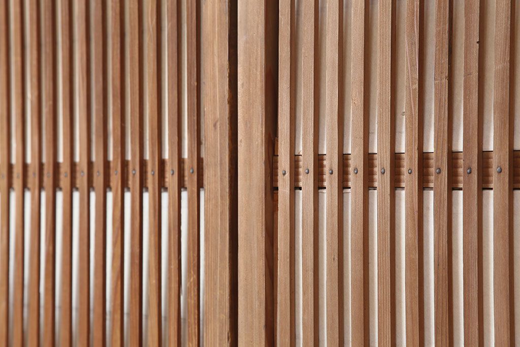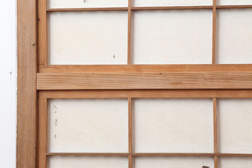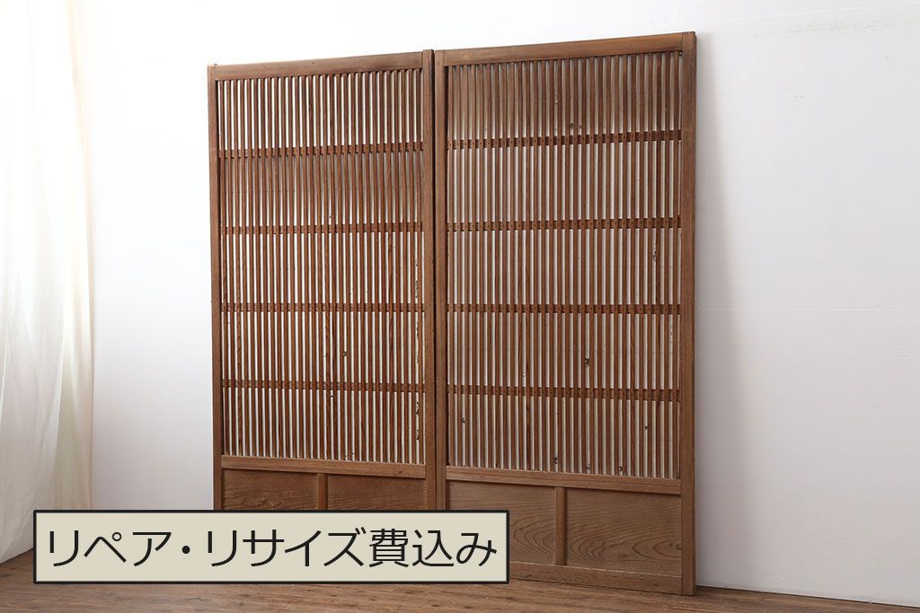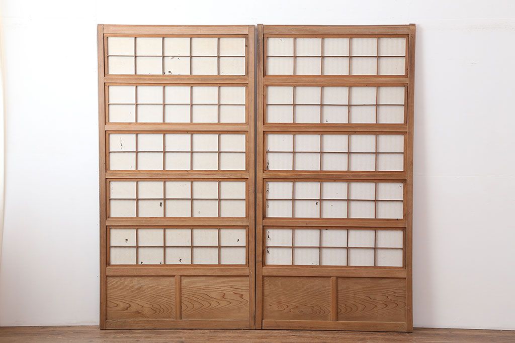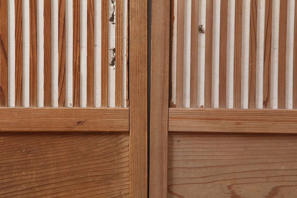 アンティーク建具 裏障子付き 木味と桟が魅力の格子戸2枚セット(引き戸、建具)(R-036754)